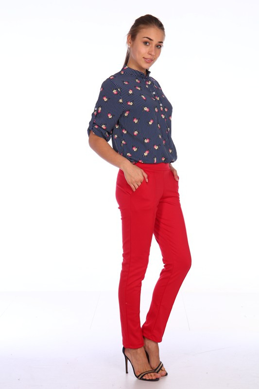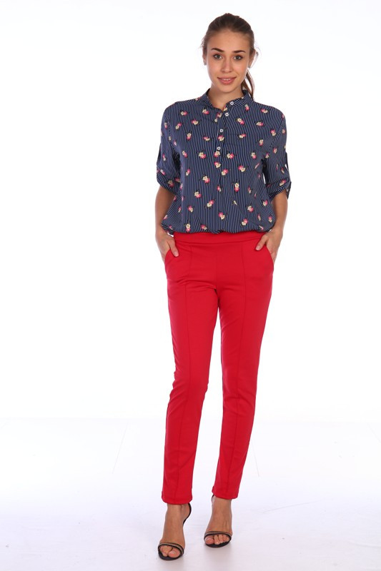 Зауженные брюки Скарлет из эластичной, но плотной ткани милано с отстроченной стрелкой и карманами. Длина брюк 7/8.
