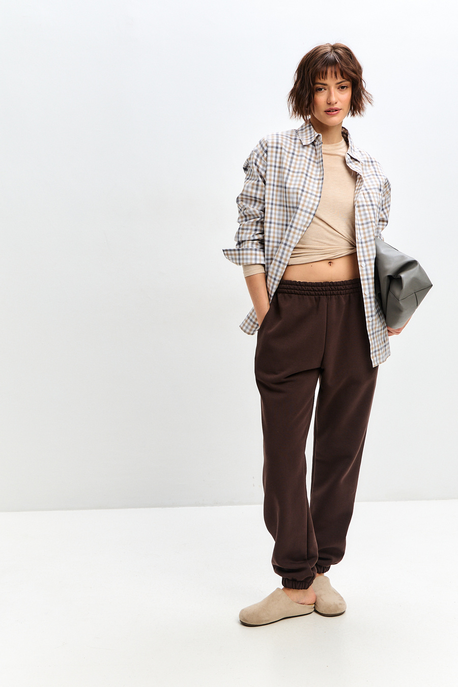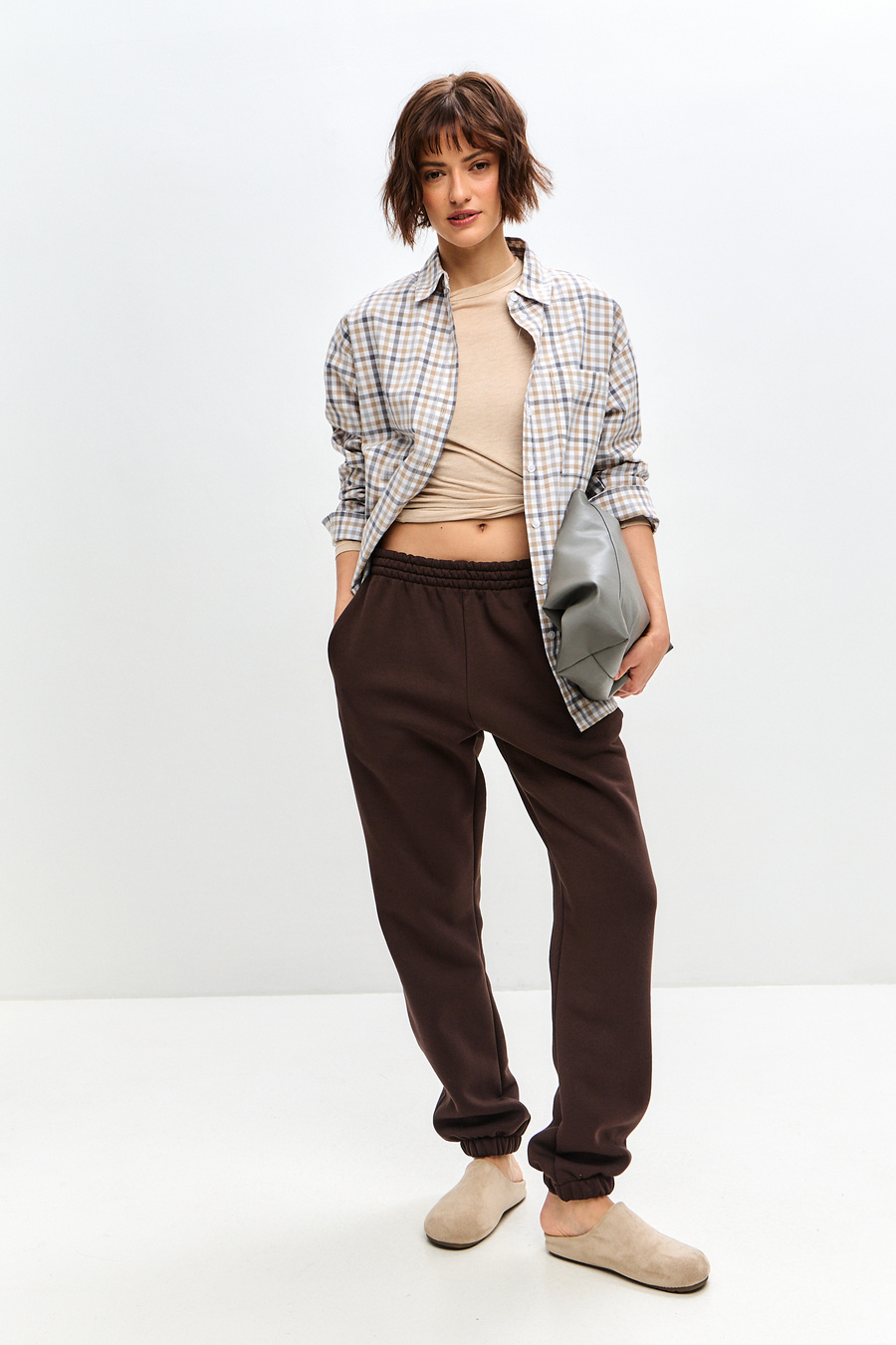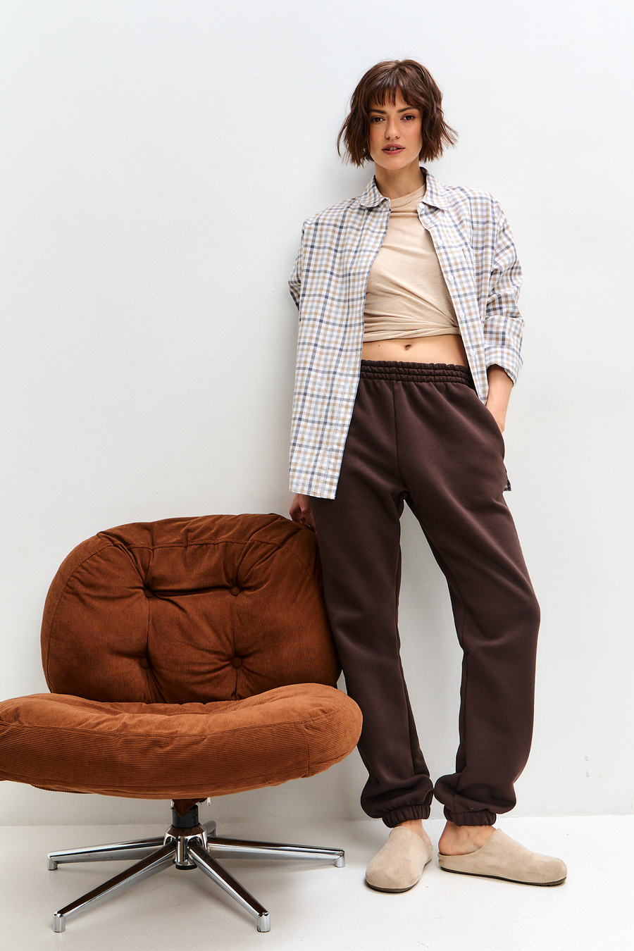 Женские брюки отшиваются из футера с начесом, натуральной хлопковой ткани. Женские брюки на резинке - отличный вариант для занятий спортом, прогулок или в качестве домашней одежды.