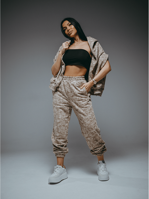 Брюки женские Стиль на резинке с отрезным поясом с карманами.