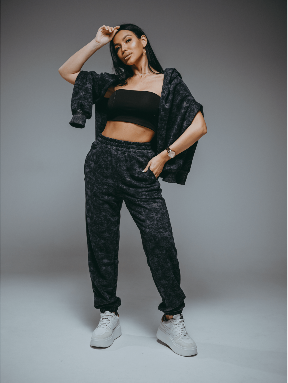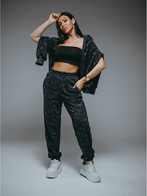 Брюки женские Стиль на резинке с отрезным поясом с карманами.