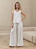 Брюки женские из гладкокрашеного фактурного полотна длинные, широкие по всей длине, на притачном поясе с эластичной тесьмой внутри, с карманами в боковых швах. Модным элементом является широкая подгибка нижних срезов.