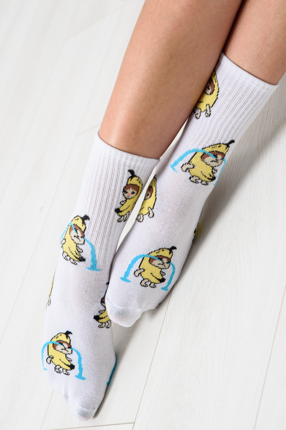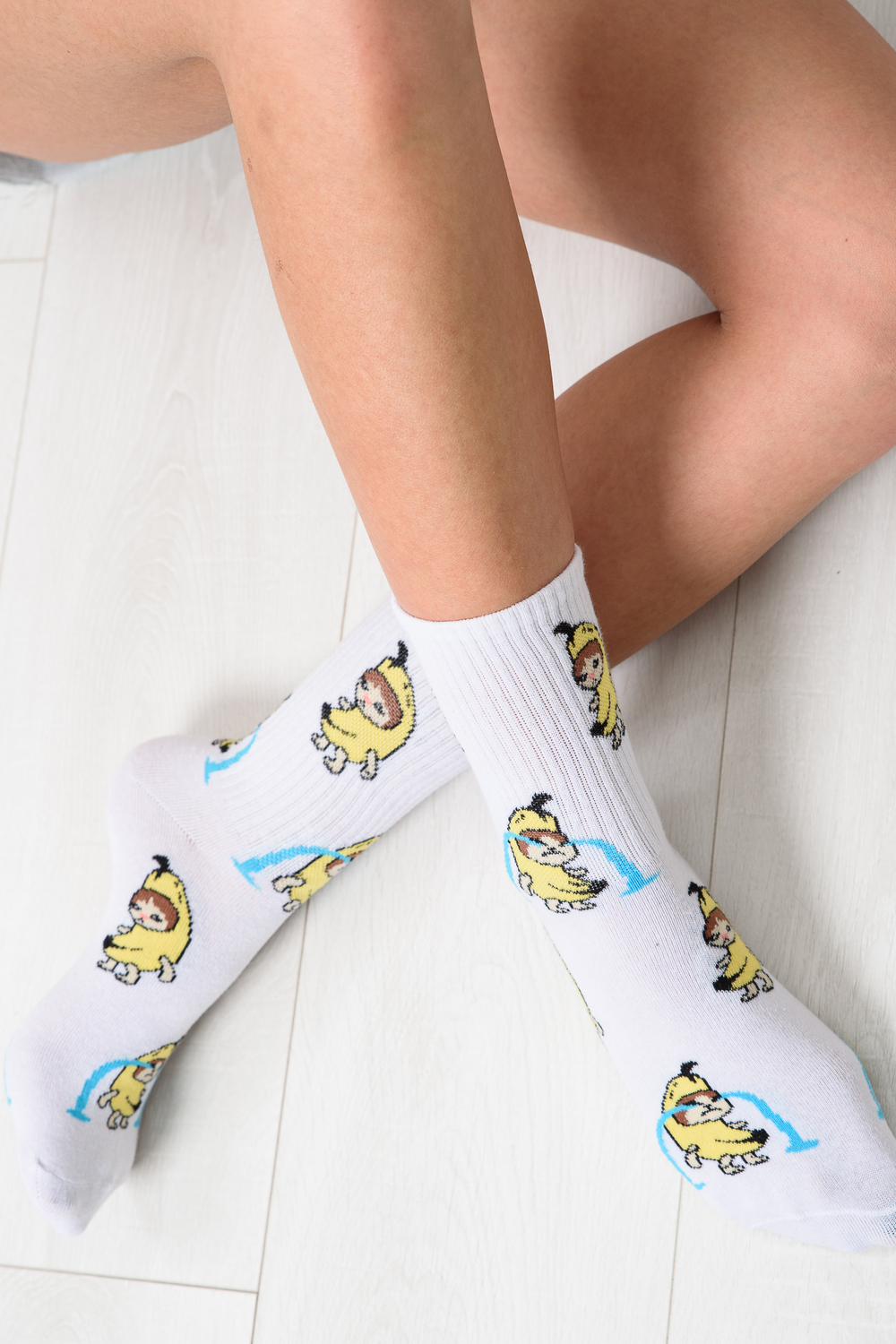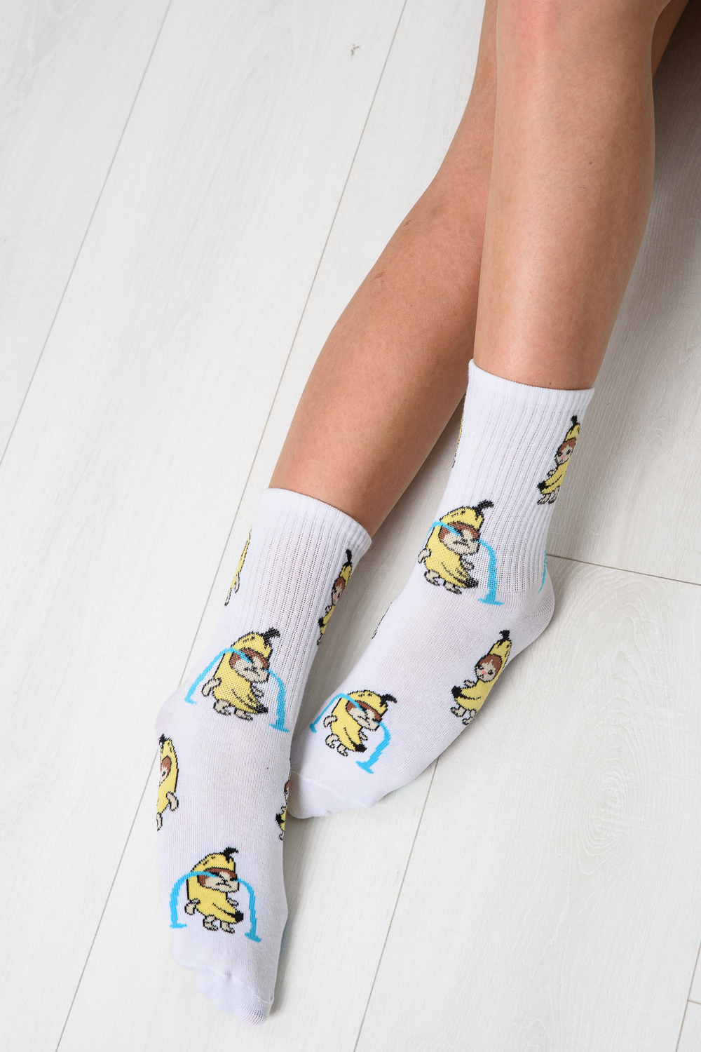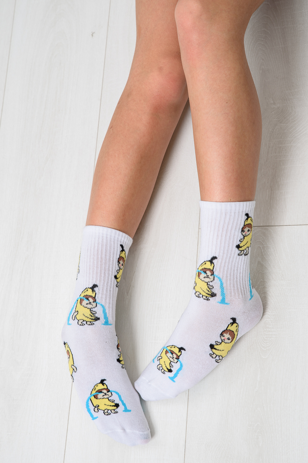 Носки женские 1 пара. по всему носочку рисунки котиков в костюме бананов. Очень веселые и оригинальные носочки.