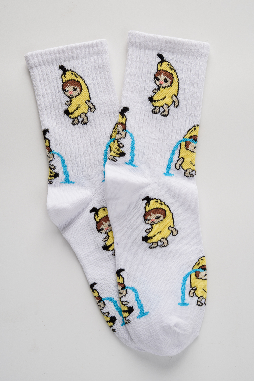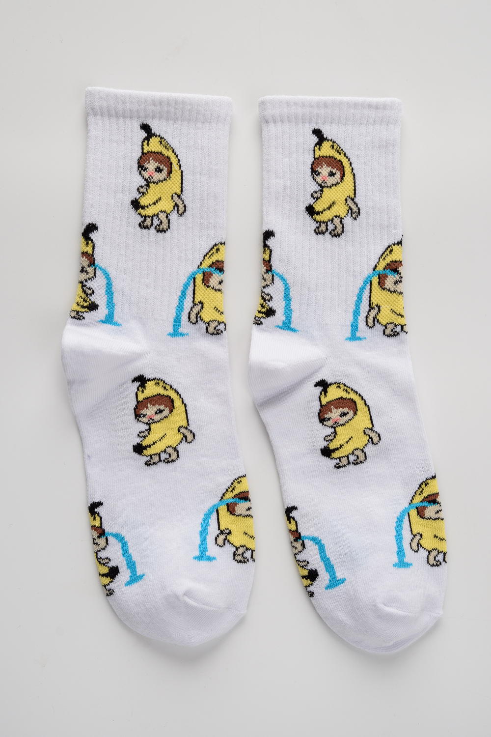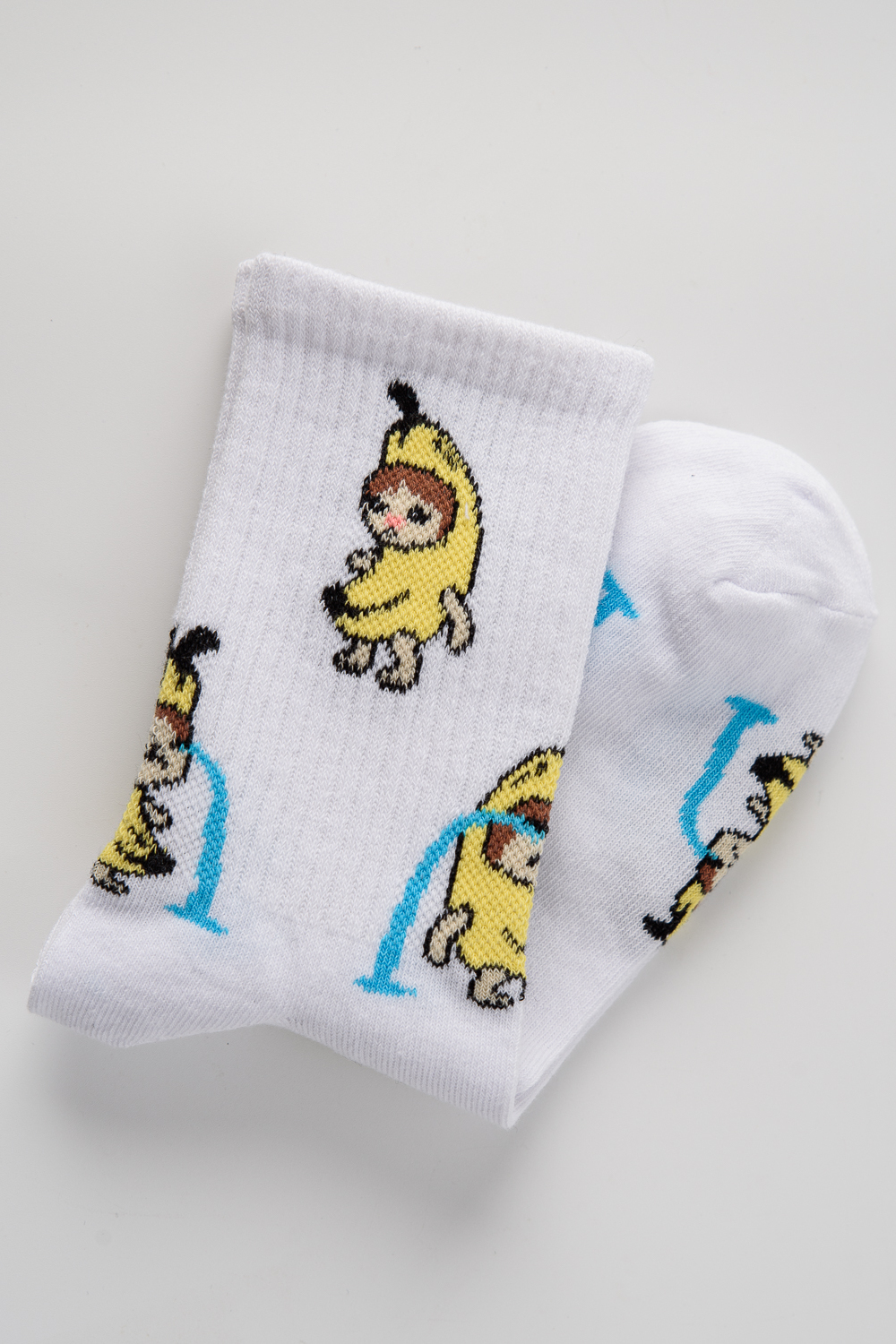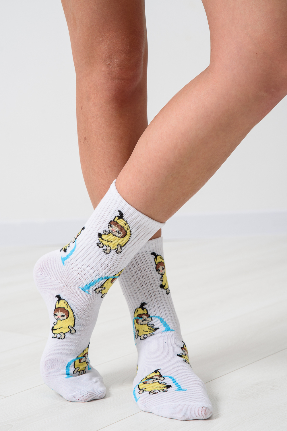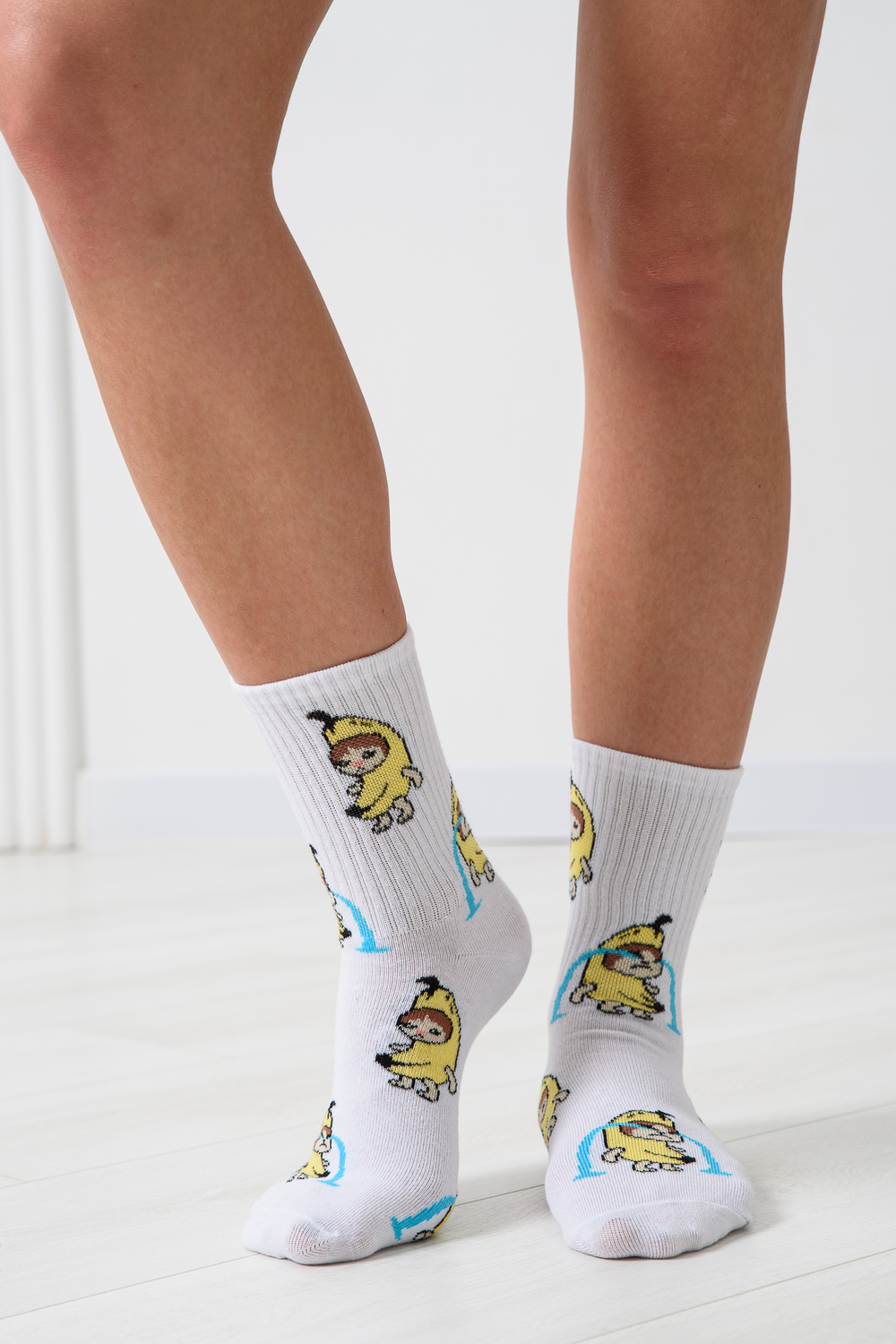 Носки женские 1 пара. по всему носочку рисунки котиков в костюме бананов. Очень веселые и оригинальные носочки.
