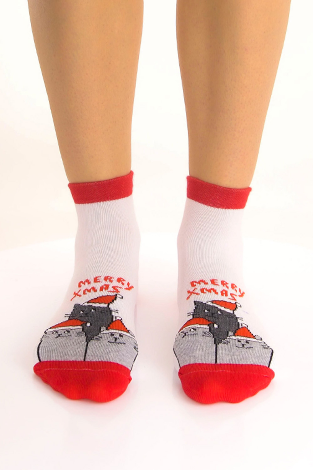 Женские носки стандарт Рождество (набор 3 пары) / белый, красный, серый