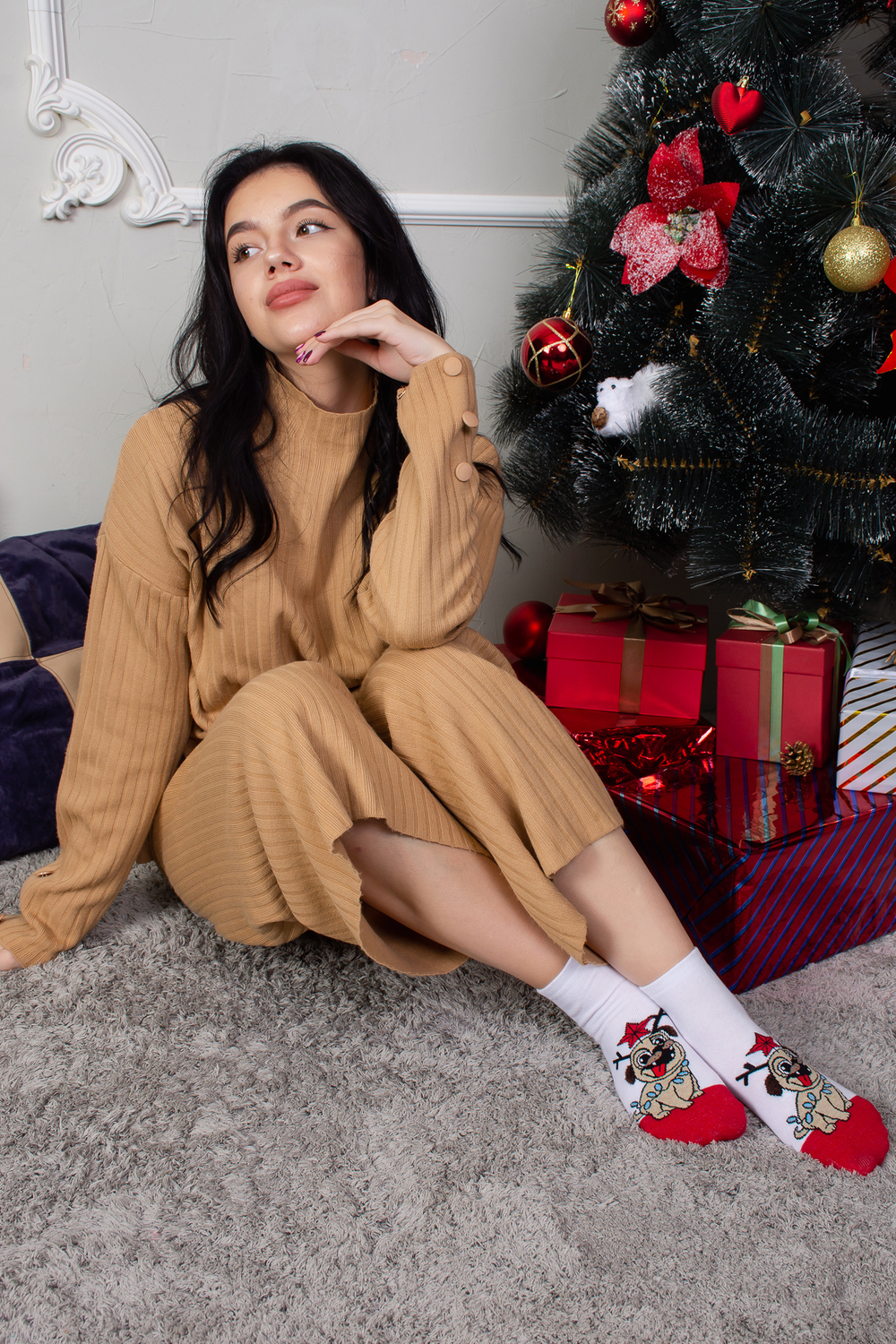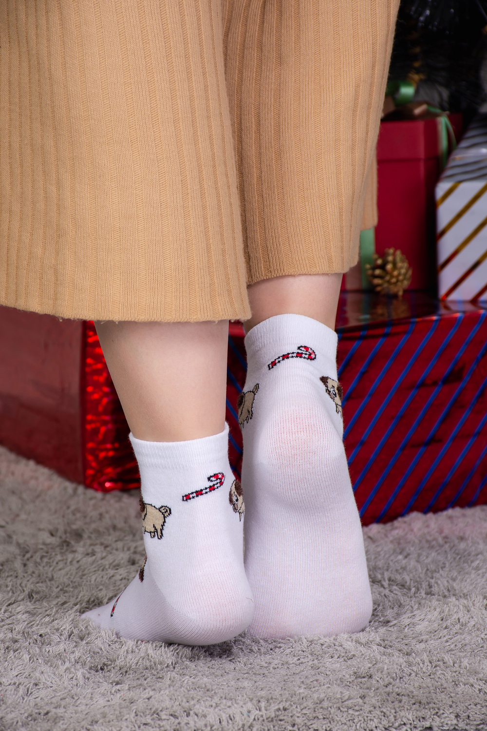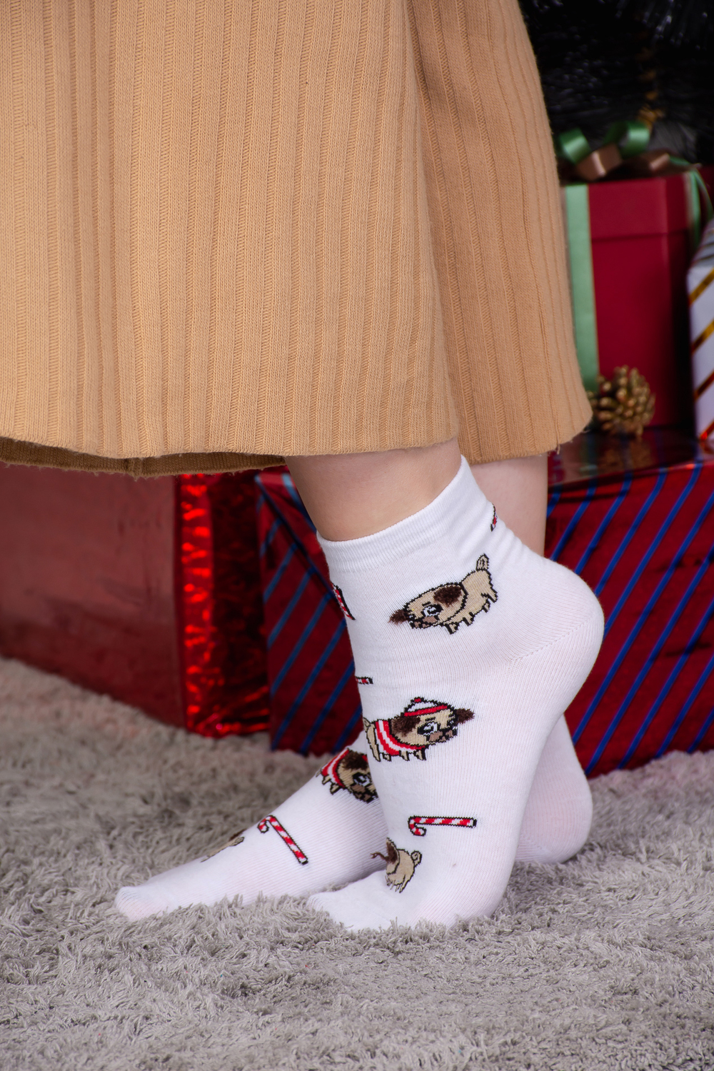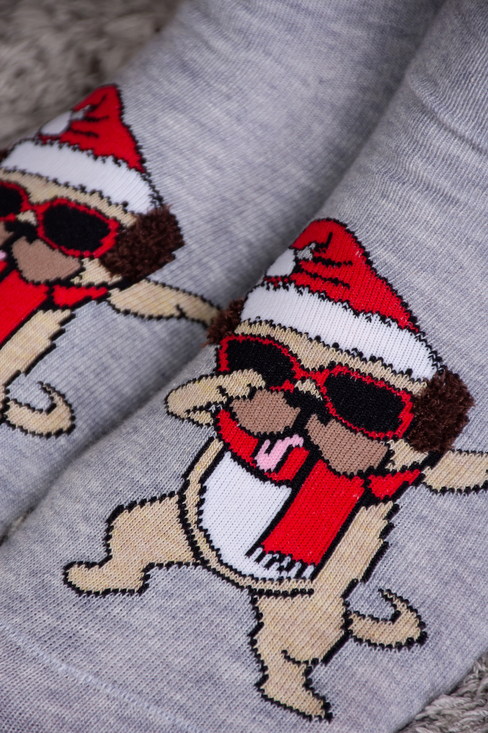 Новогодний подарочный набор женских носков. Веселые мопсы с пушистыми ушками порадуют вас и зарядят новогодним настроением. В комплекте 3 пары в красивой картонной упаковке.