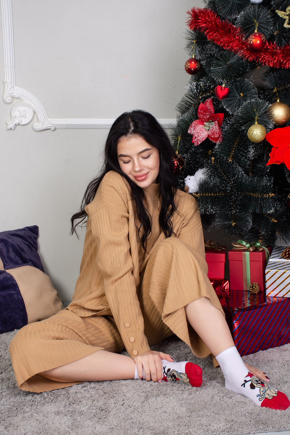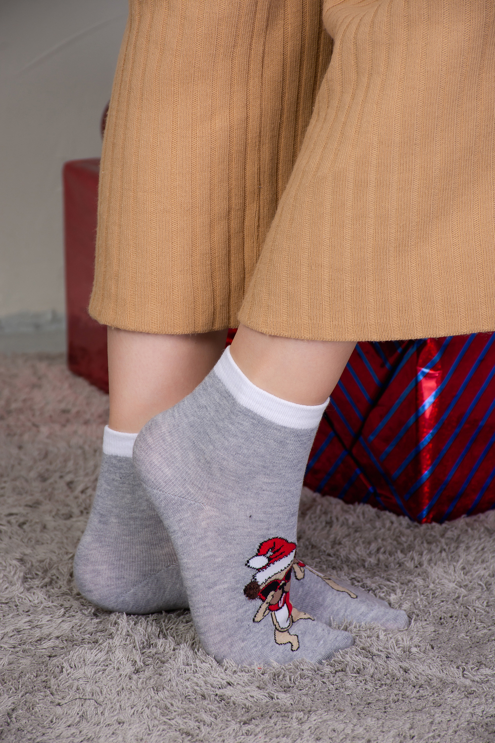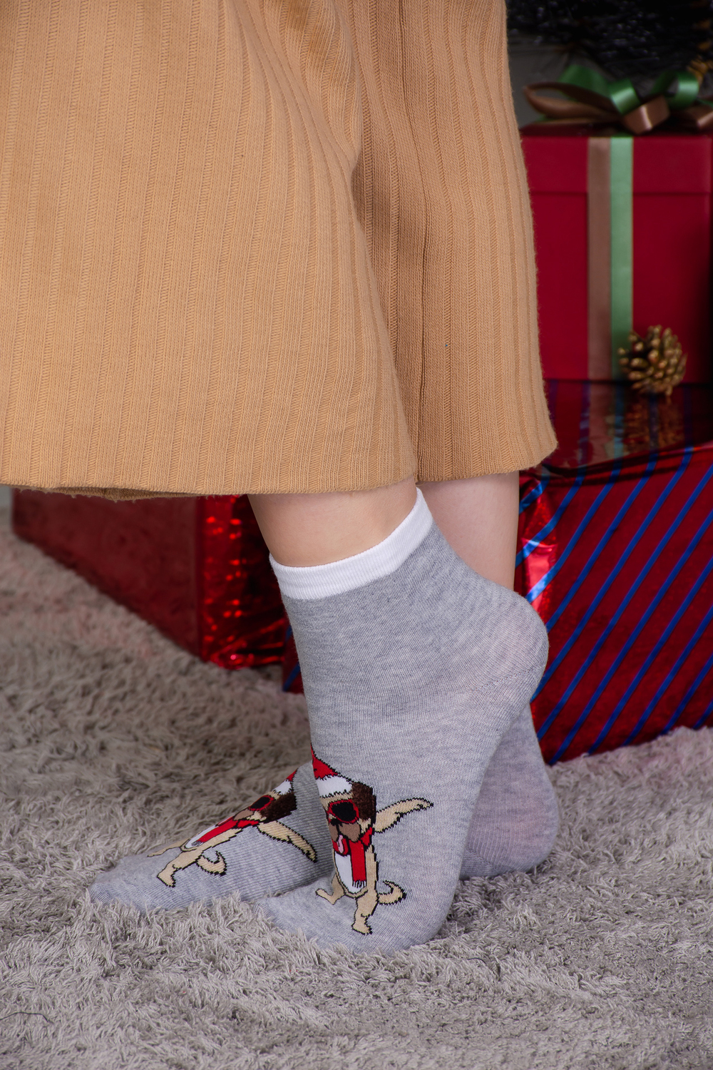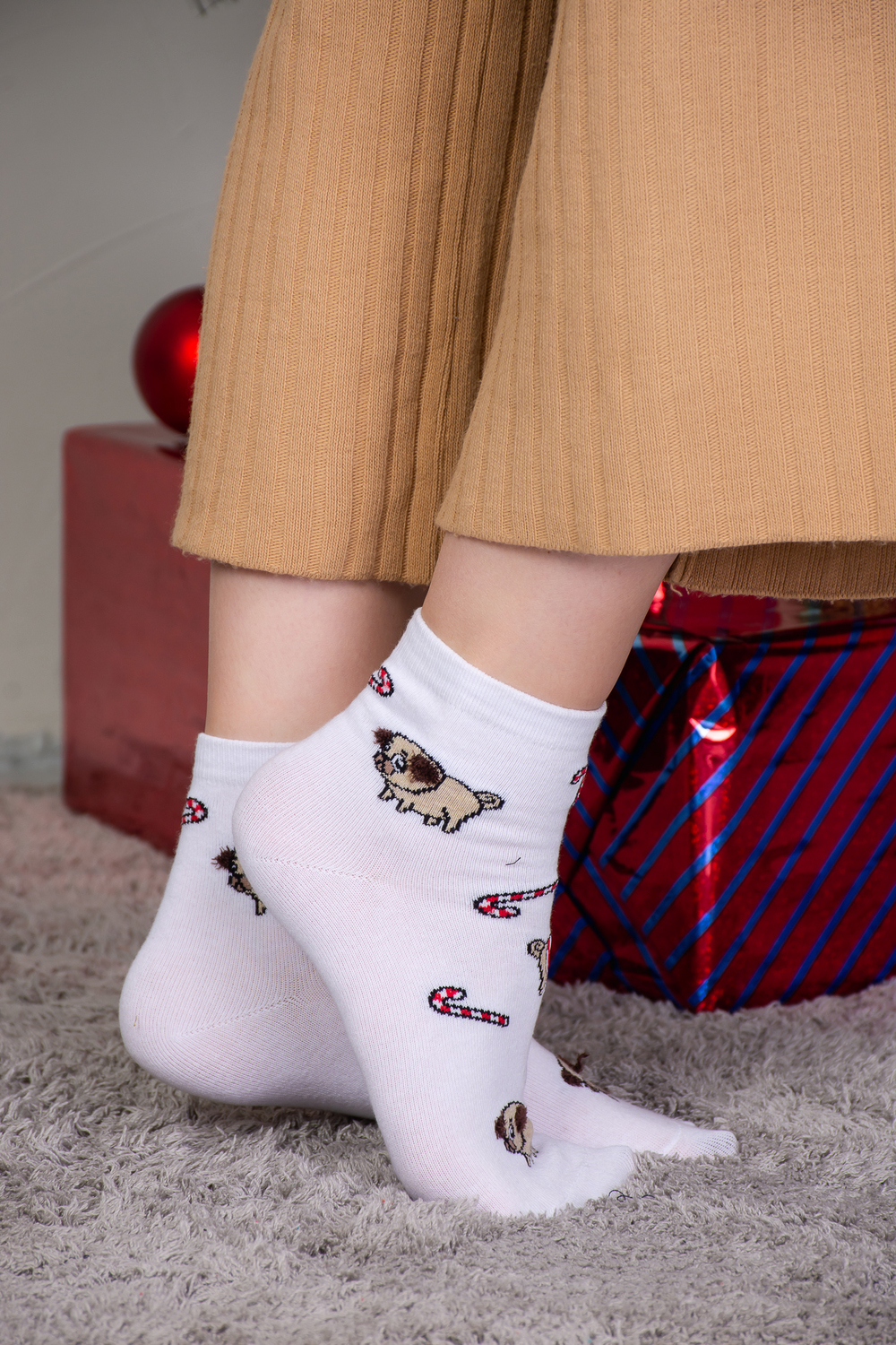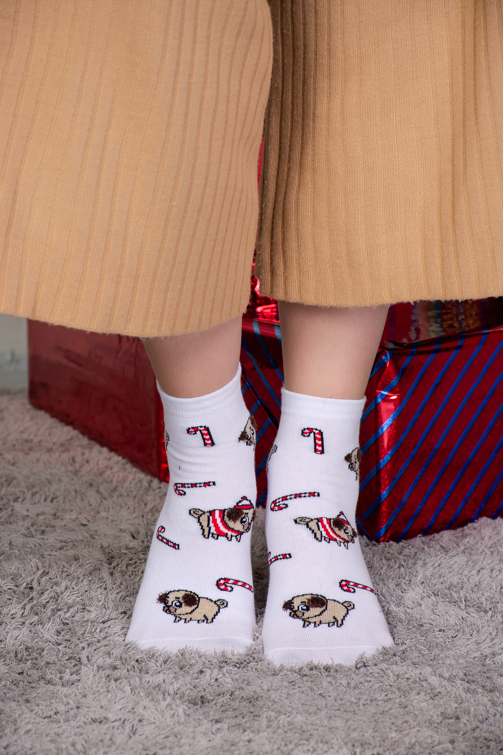 Новогодний подарочный набор женских носков. Веселые мопсы с пушистыми ушками порадуют вас и зарядят новогодним настроением. В комплекте 3 пары в красивой картонной упаковке.
