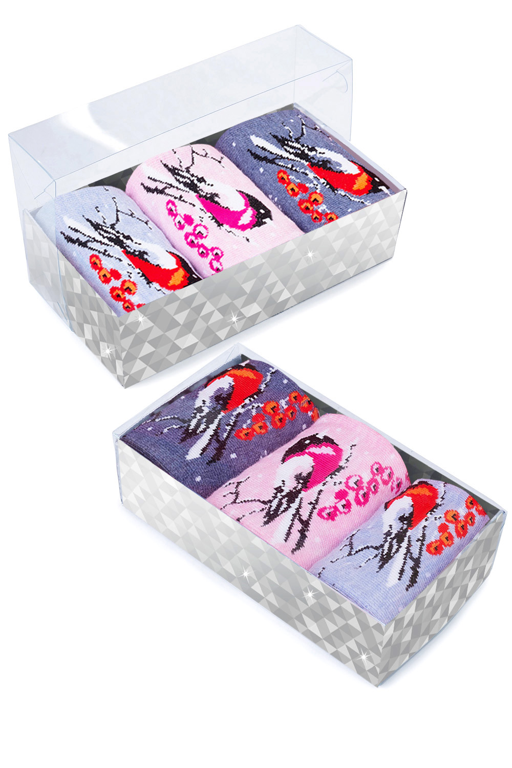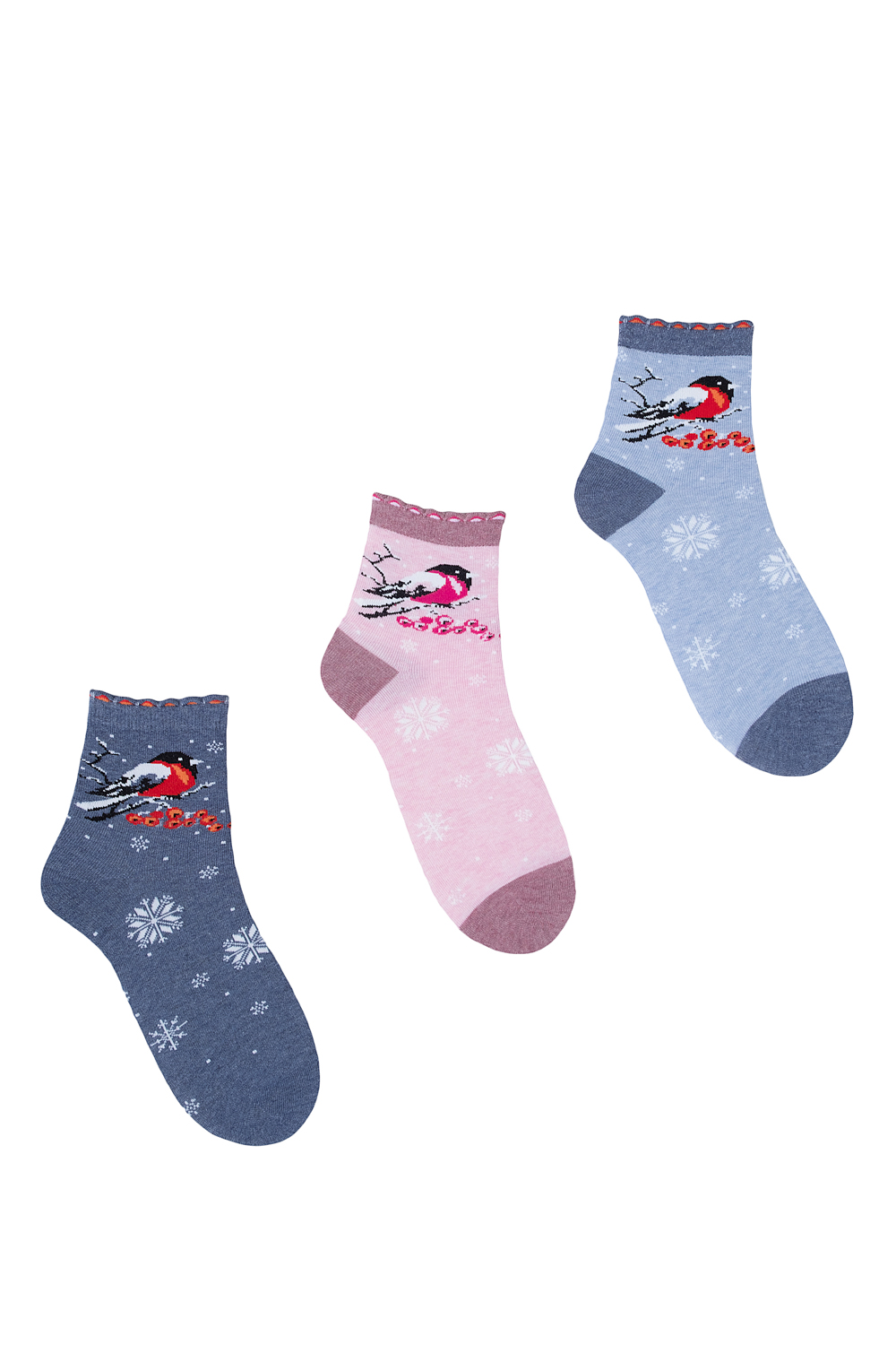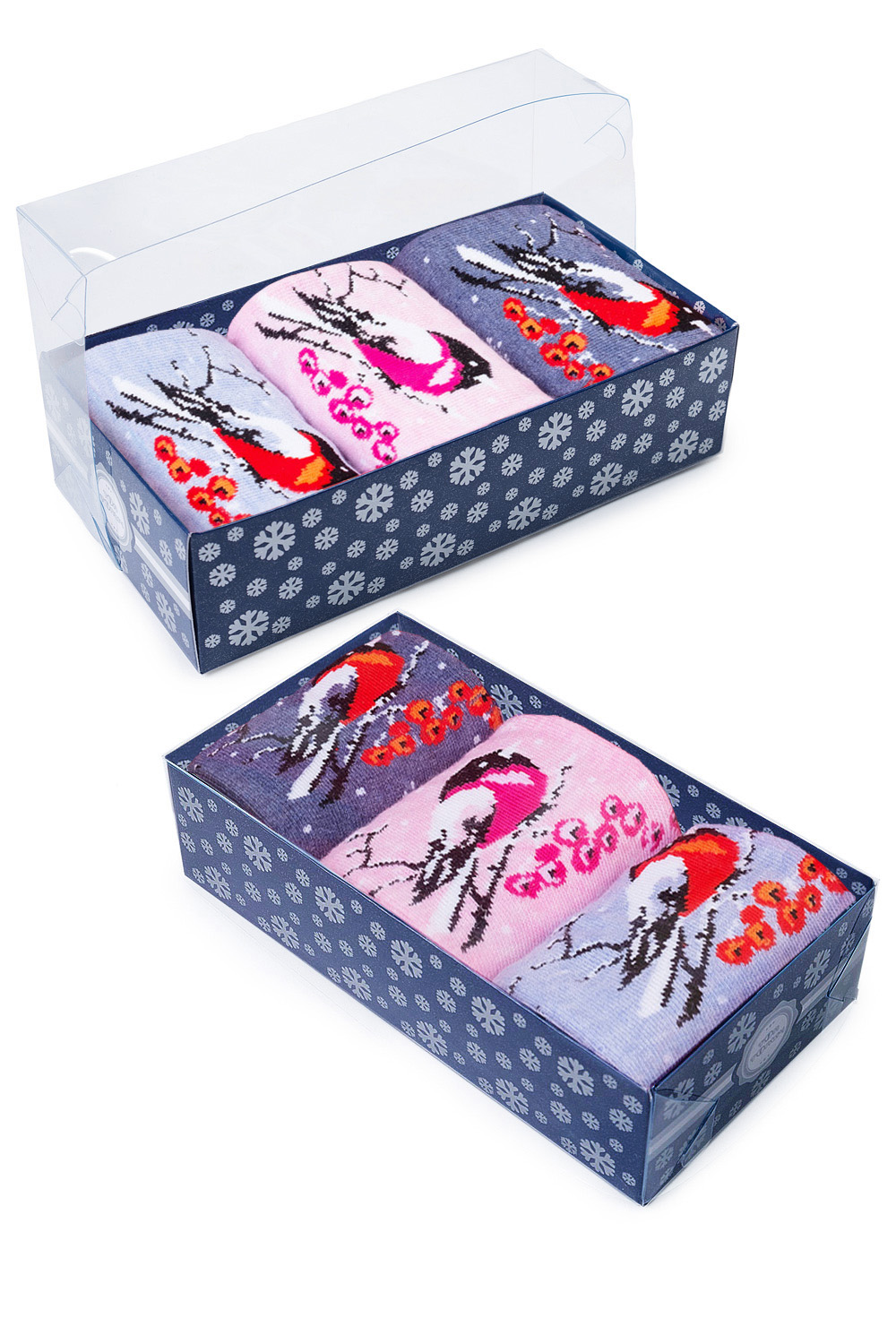Женские носки стандарт Снегири (набор 3 пары) / голубой, бордо, джинс