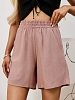 Шорты молодежные из гладкокрашеного тканого полотна «лен-вискоза», свободные, средней длины, на притачном поясе с эластичной тесьмой внутри, карманами в боковых швах.