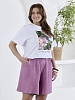 Шорты женские из гладкокрашеного тканого полотна, свободные, длиной до колена, с карманами в боковых швах, на притачном поясе с эластичной тесьмой внутри.