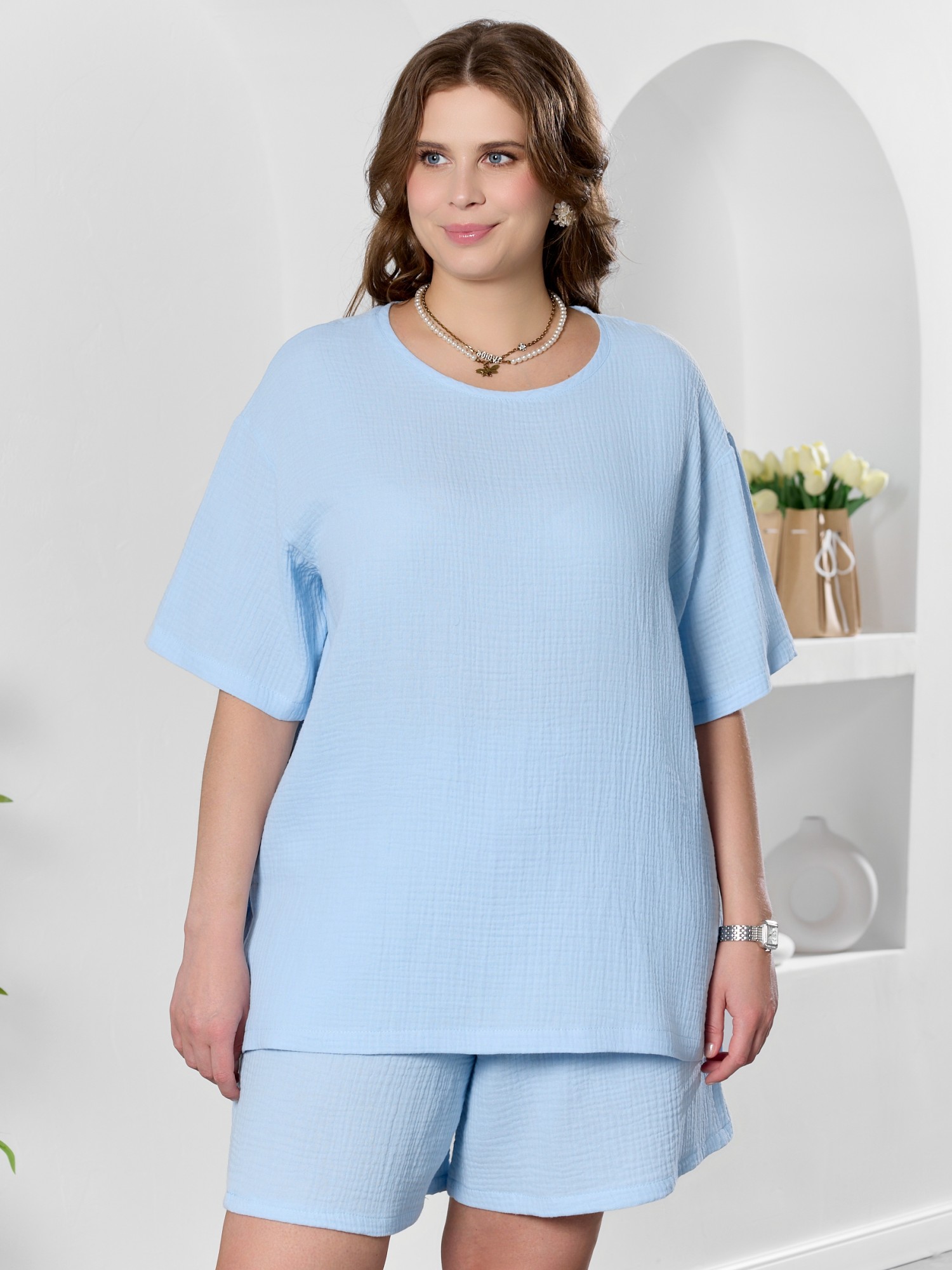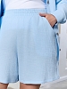 Шорты женские из тканого гладкокрашеного полотна «муслин», свободные, средней длины, с карманами в боковых швах, на притачном поясе с эластичной тесьмой внутри.