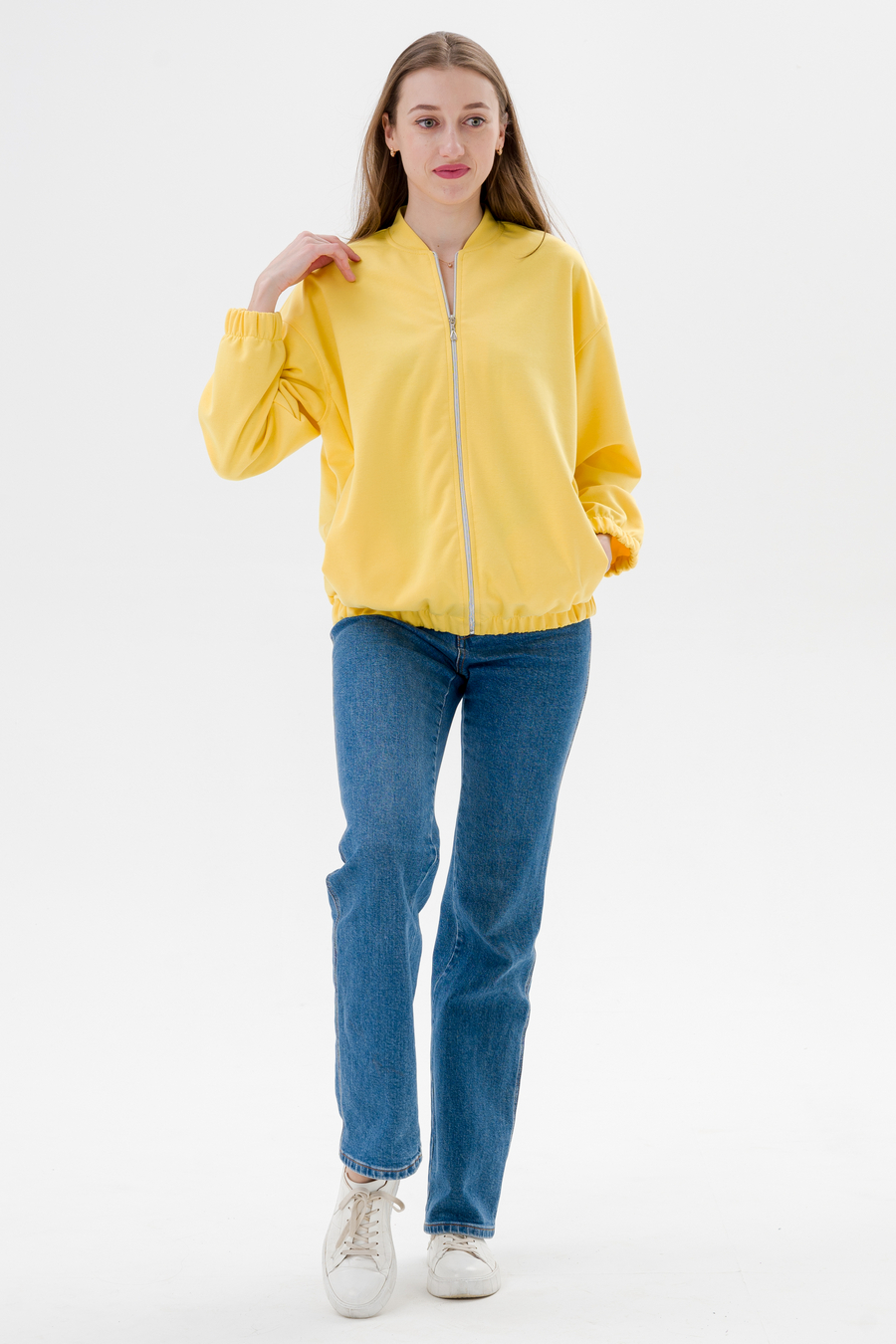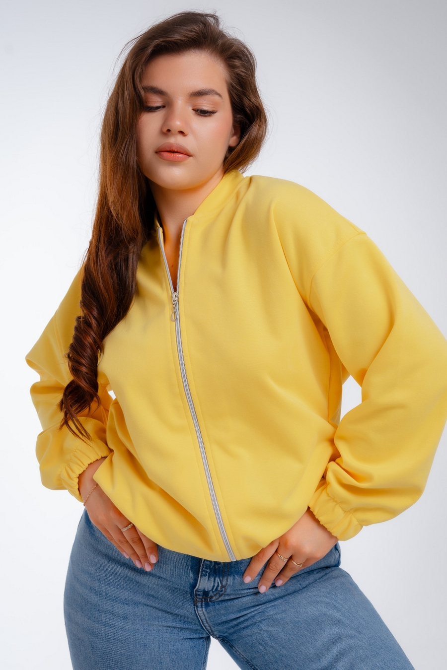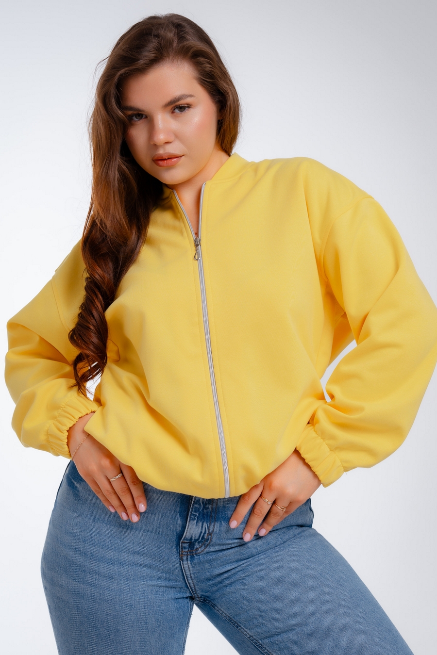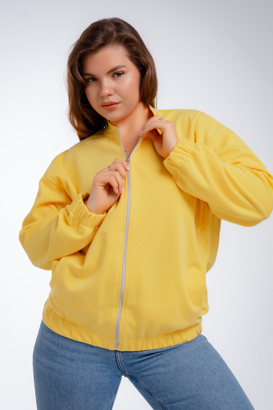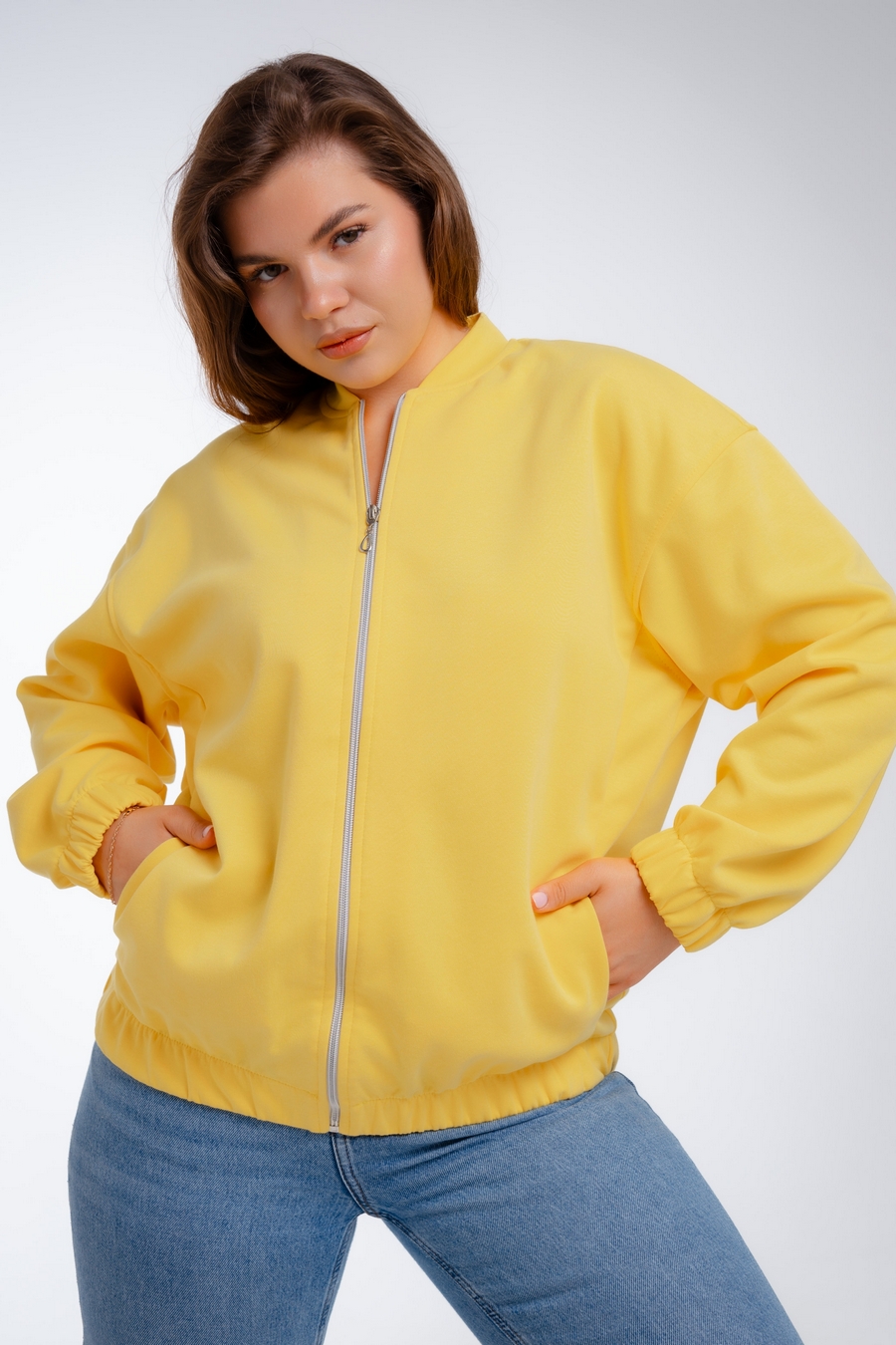 Женский бомбер из коттон фита / Жёлтый