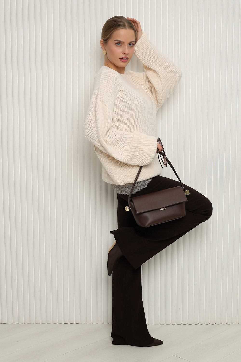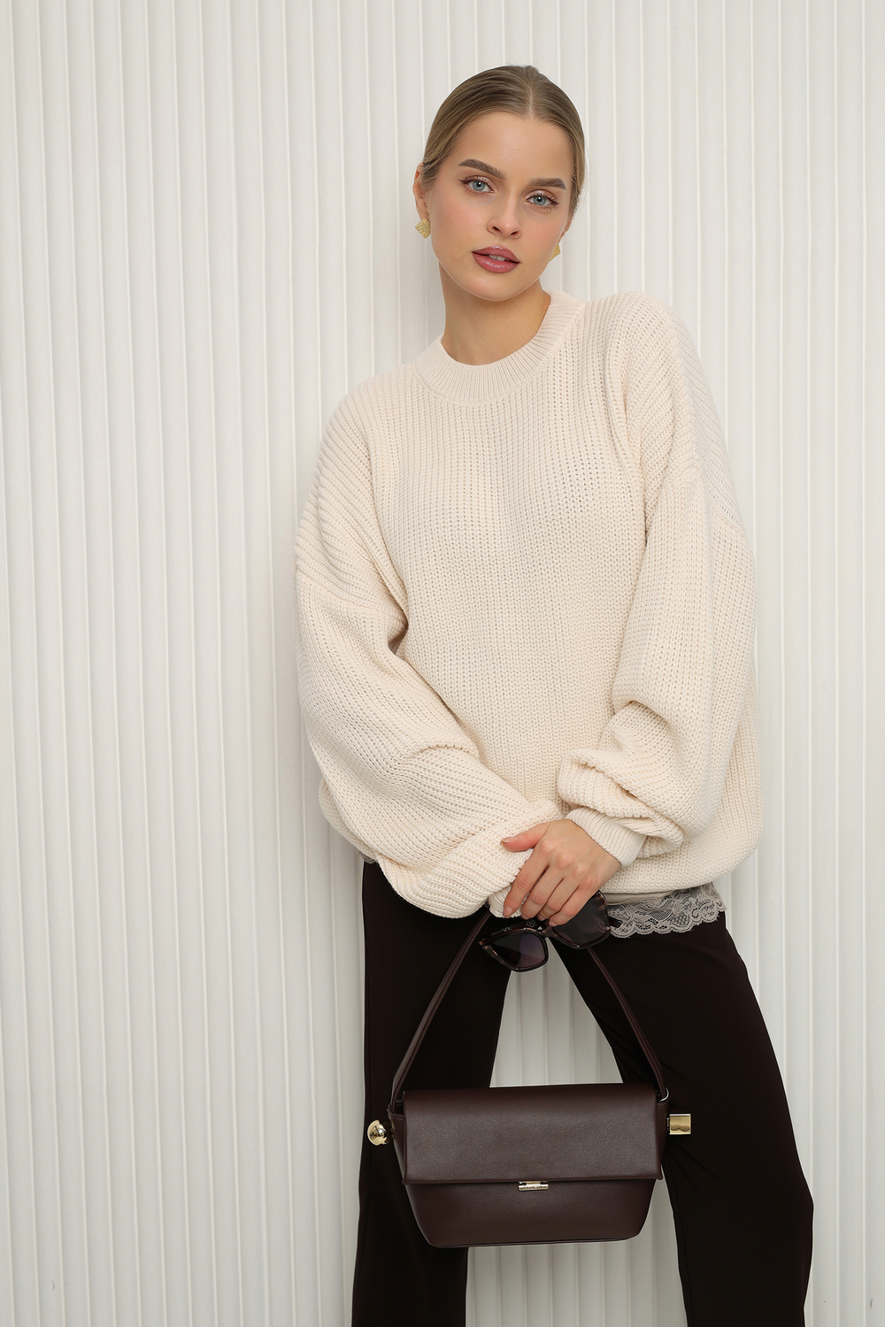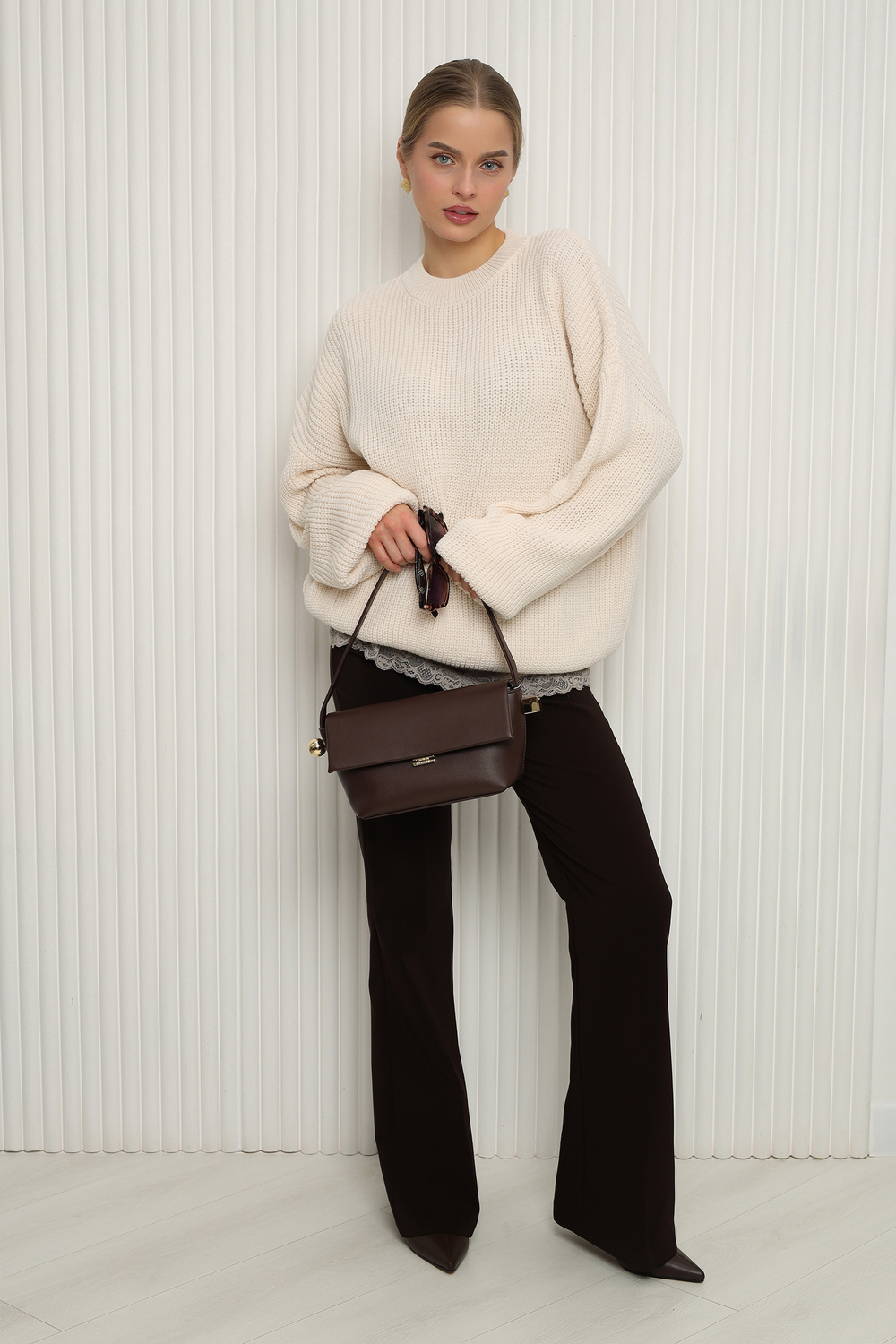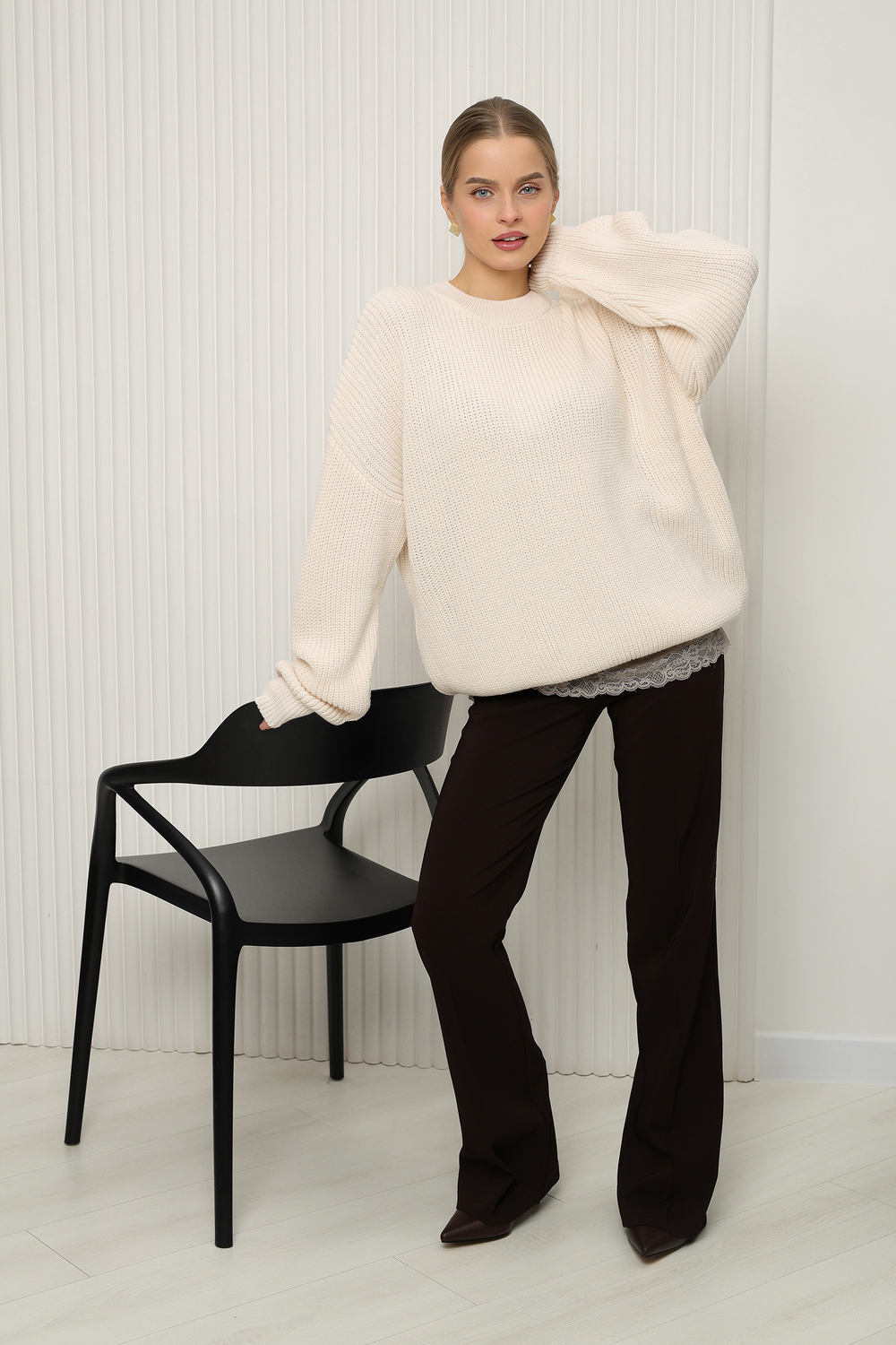 - Детали: Элегантный вырез и длинные рукава создают стильный силуэт, а рифленая текстура добавляет изюминку.