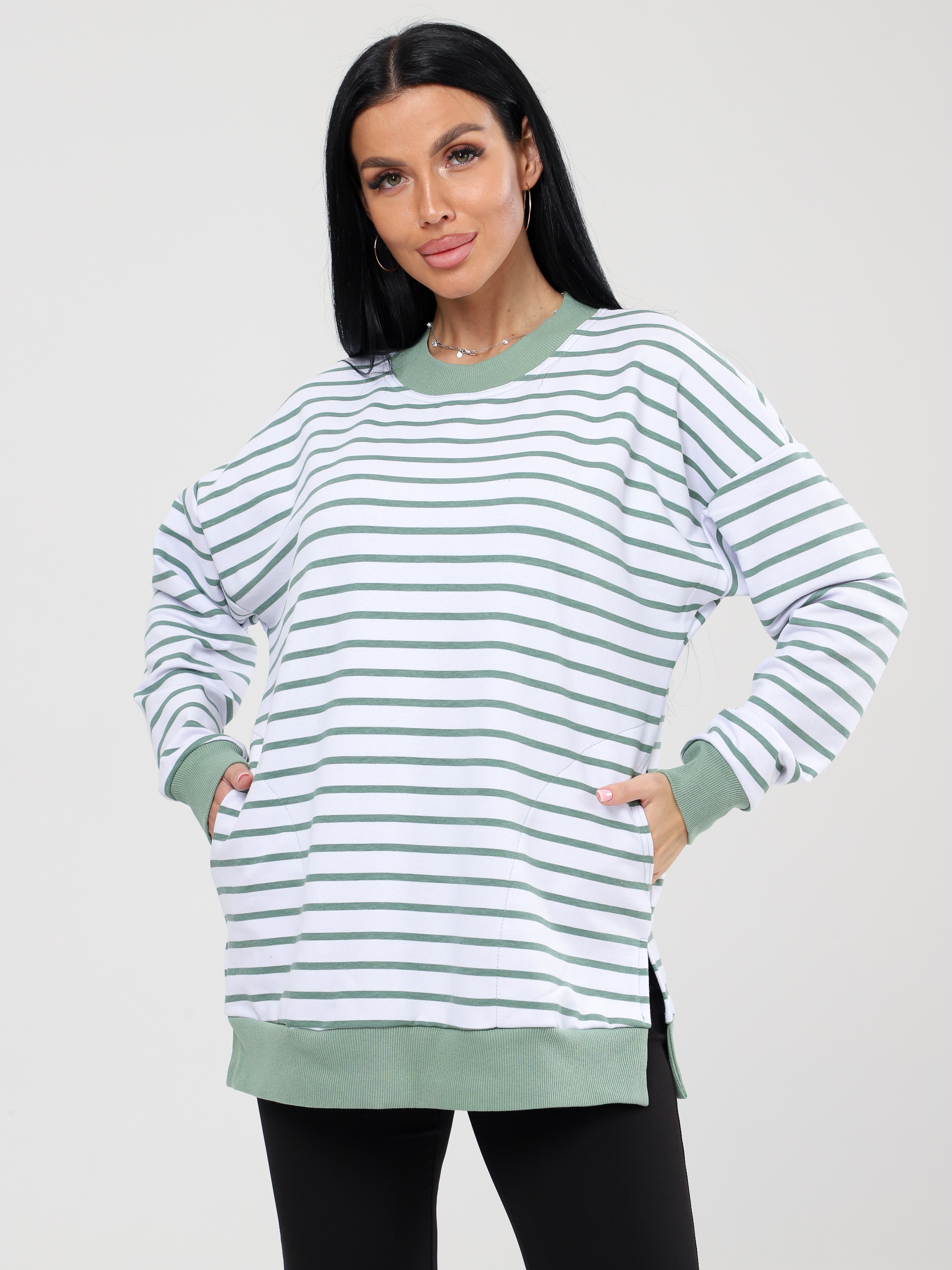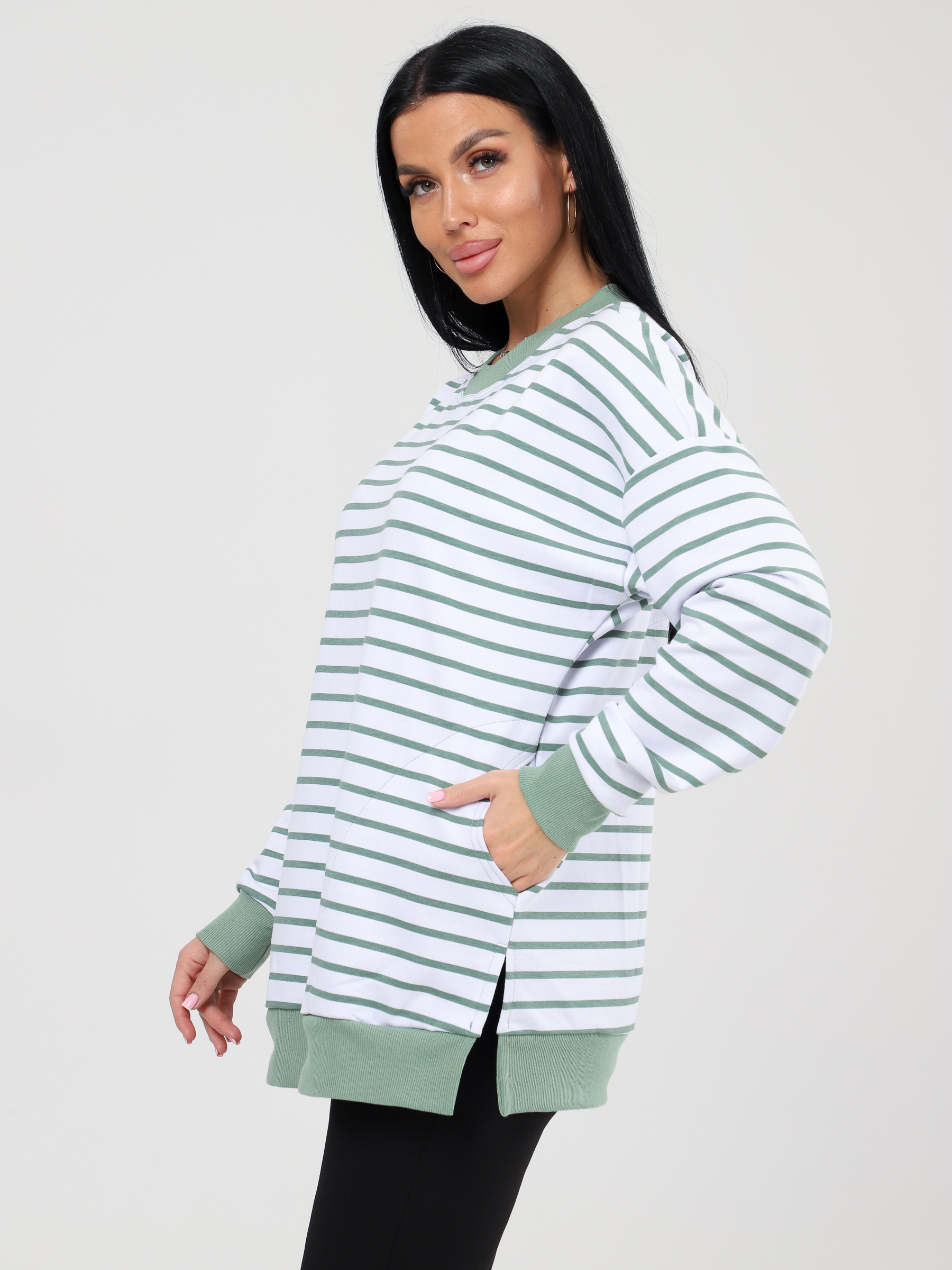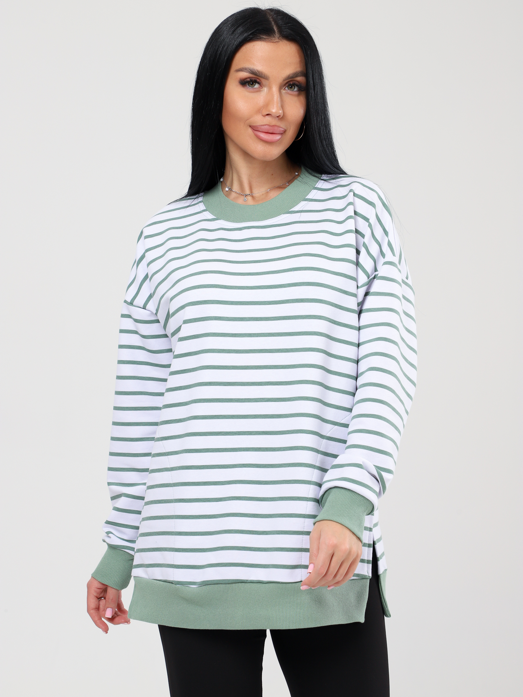 Джемпер в полоску больших размеров с разрезами по бокам – самая модная женская одежда на осень-зиму! Сшит из трикотажного полотна - футер с лайкрой.