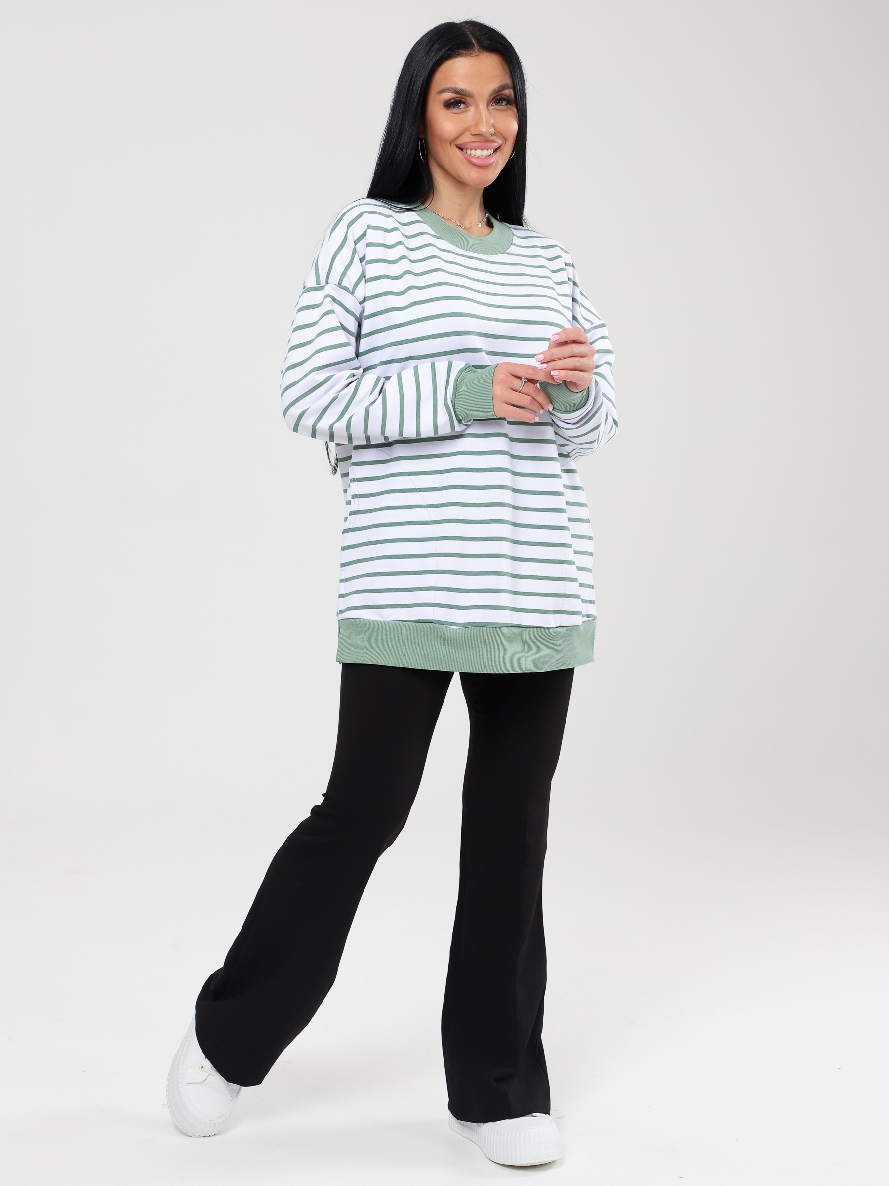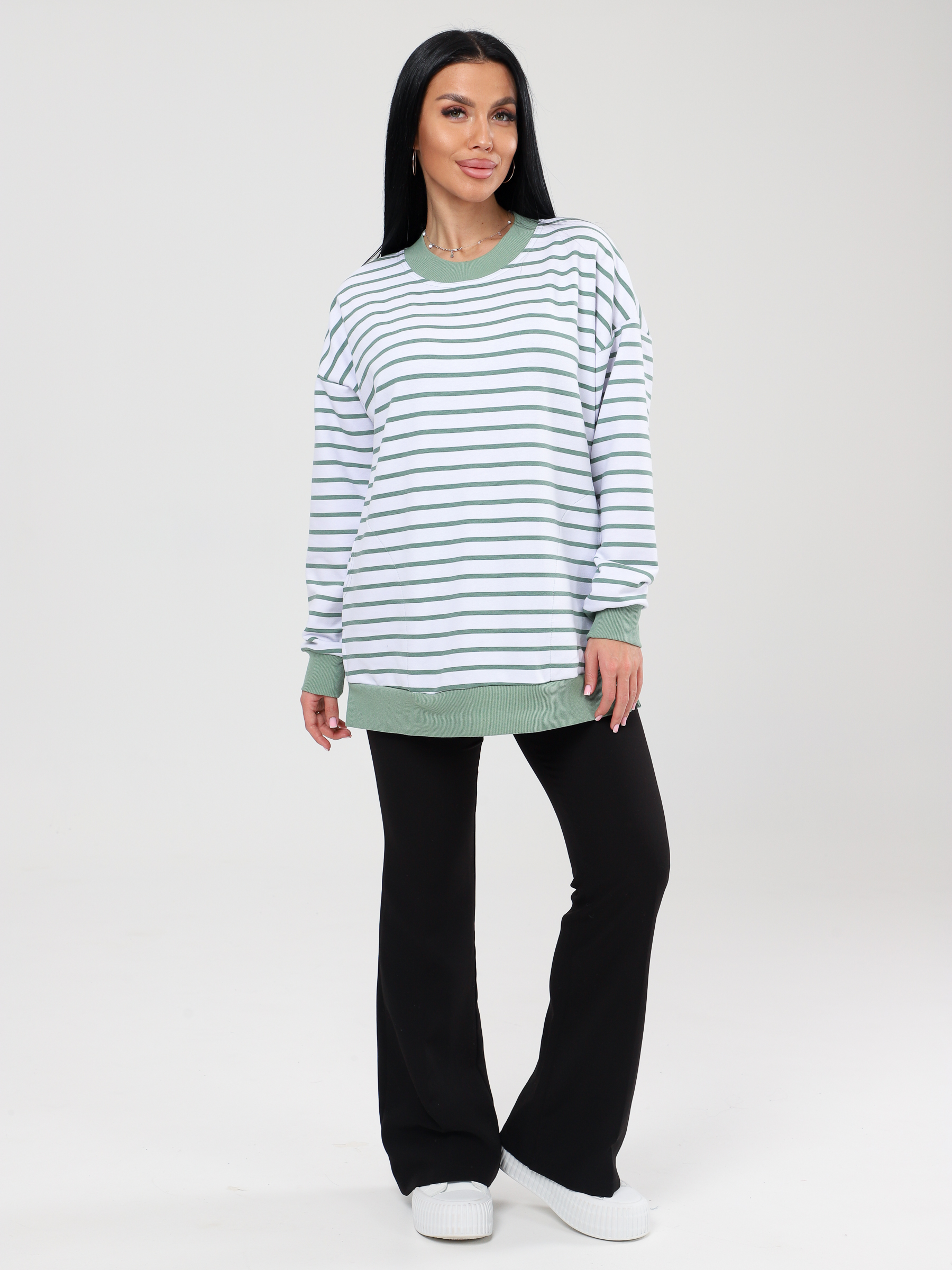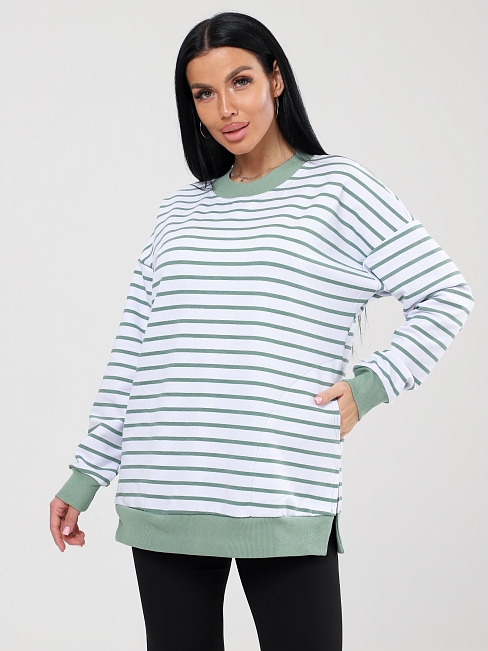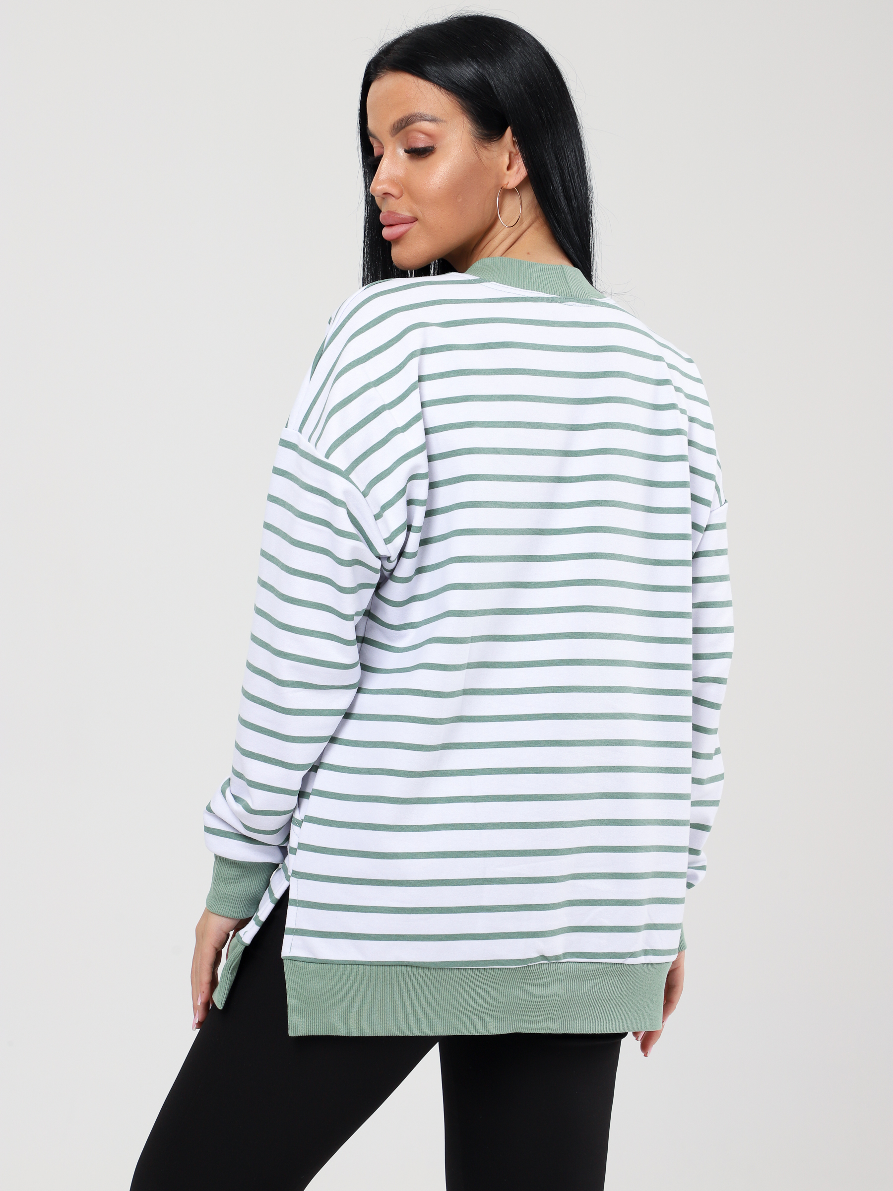 Джемпер в полоску больших размеров с разрезами по бокам – самая модная женская одежда на осень-зиму! Сшит из трикотажного полотна - футер с лайкрой.