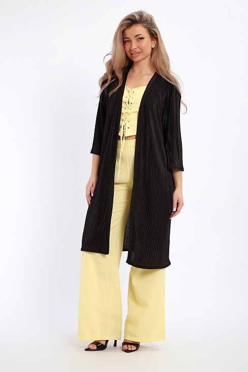 Создайте свой неповторимый образ с помощью элегантного кардигана длиной макси, который станет идеальным дополнением любого гардероба. Изготовленный из легкого струящегося материала атлас гофре, этот предмет одежды обеспечивает комфорт и легкость на протяжении всего дня. Стильная накидка без застежки позволяет легко комбинировать ее с различными нарядами, создавая при этом модный изысканный образ. Базовые расцветки кардигана без труда впишутся в ваш гардероб. Рукав длиной 3/4 подойдет дамам любого роста. Внутренний карман в боковом шве добавляет удобство и функциональность изделию. Длинный силуэт визуально вытягивает фигуру и добавляет женственности вашему образу.
