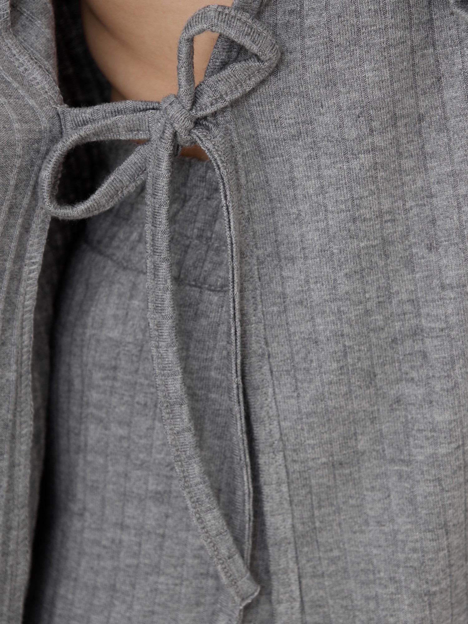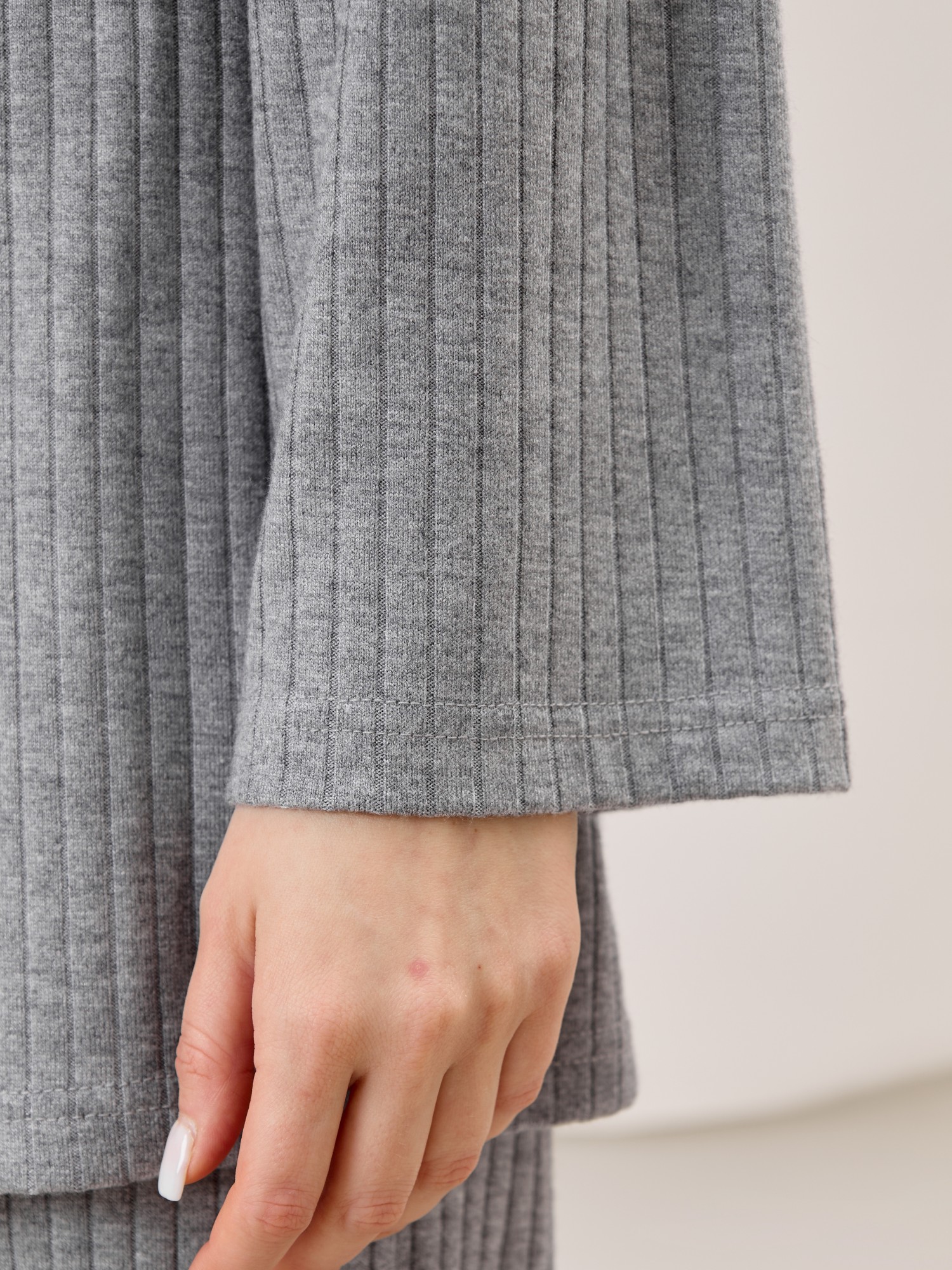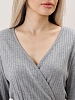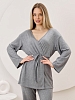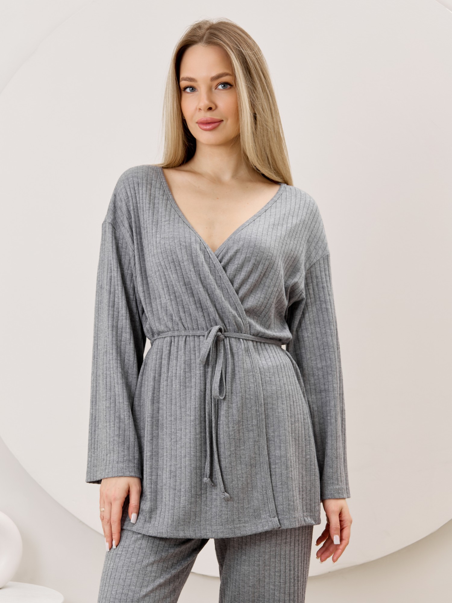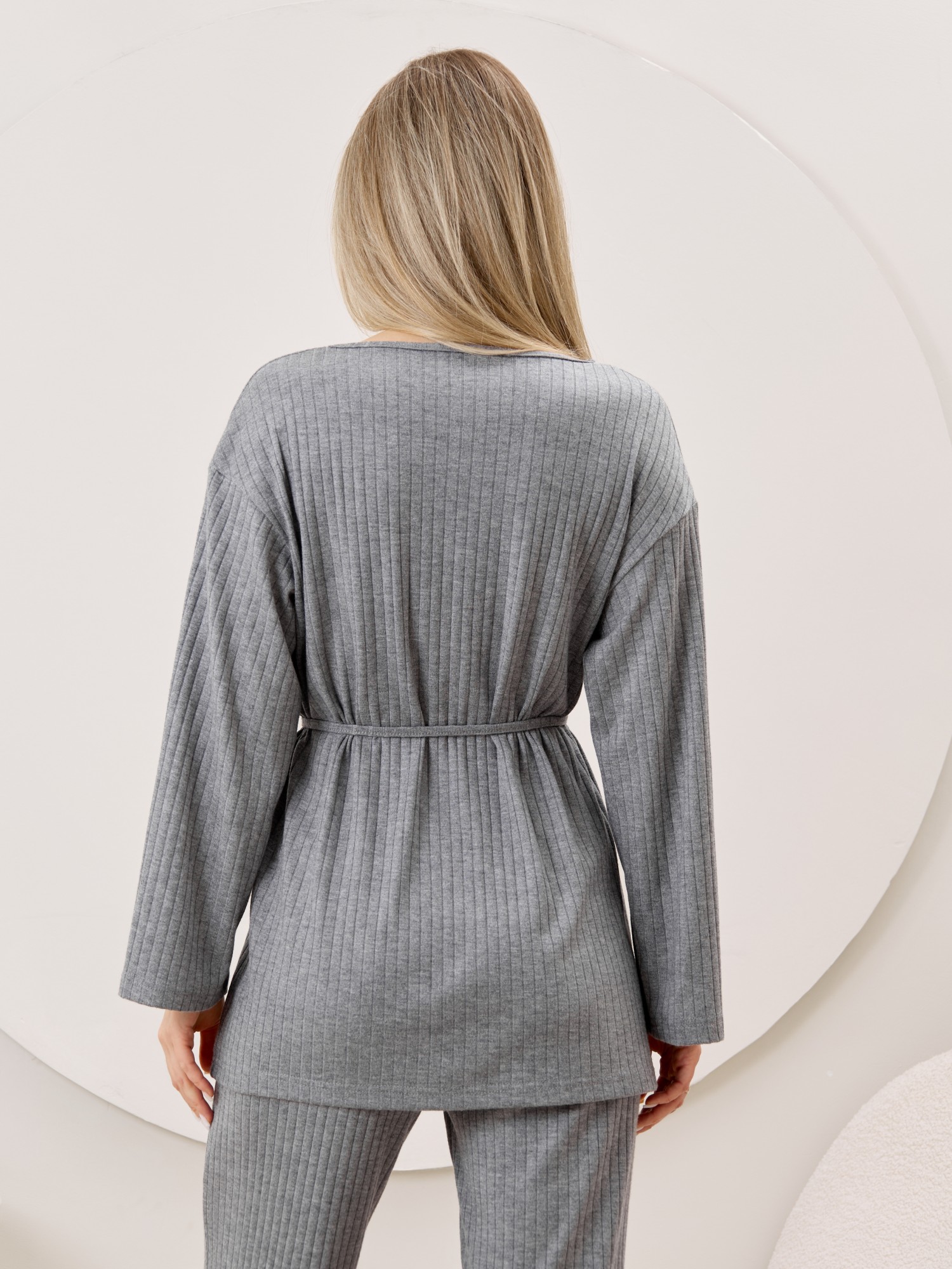 Кардиган-кимоно женский из гладкокрашенного трикотажного фактурного полотна в «рубчик» с добавлением ангоры, на запахе, прямого силуэта, с длинными втачными рукавами. Нижние срезы рукавов, так же низ изделия-обработаны подгибкой, борта полочки и горловина окантованы основным материалом. Изделие укомплектовано съемным поясом, вытачанным из окантовки.