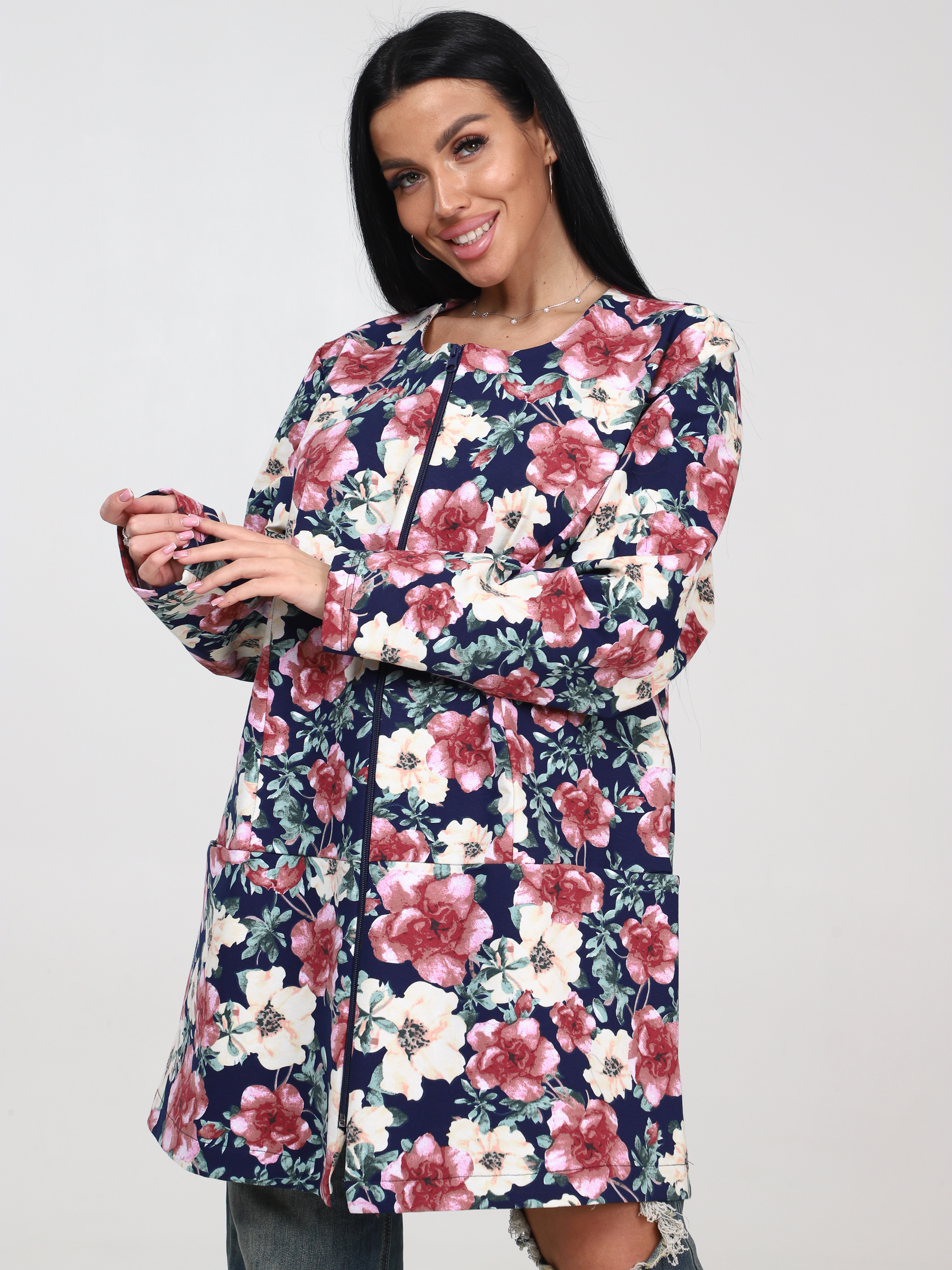 Классический женский кардиган из футера с лайкрой на молнии, слегка приталенного силуэта и длиной чуть ниже линии бедра, с двумя внутренними карманами. Такой покрой визуально вытянет фигуру, скроет недостатки. В нашем кардигане - жакете любая женщина больших размеров будет выглядеть стройнее и чувствовать себя максимально комфортно.