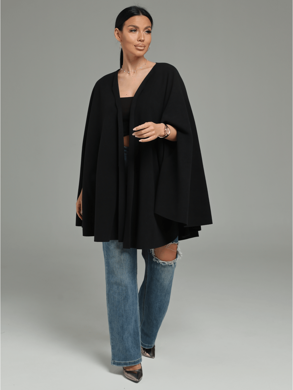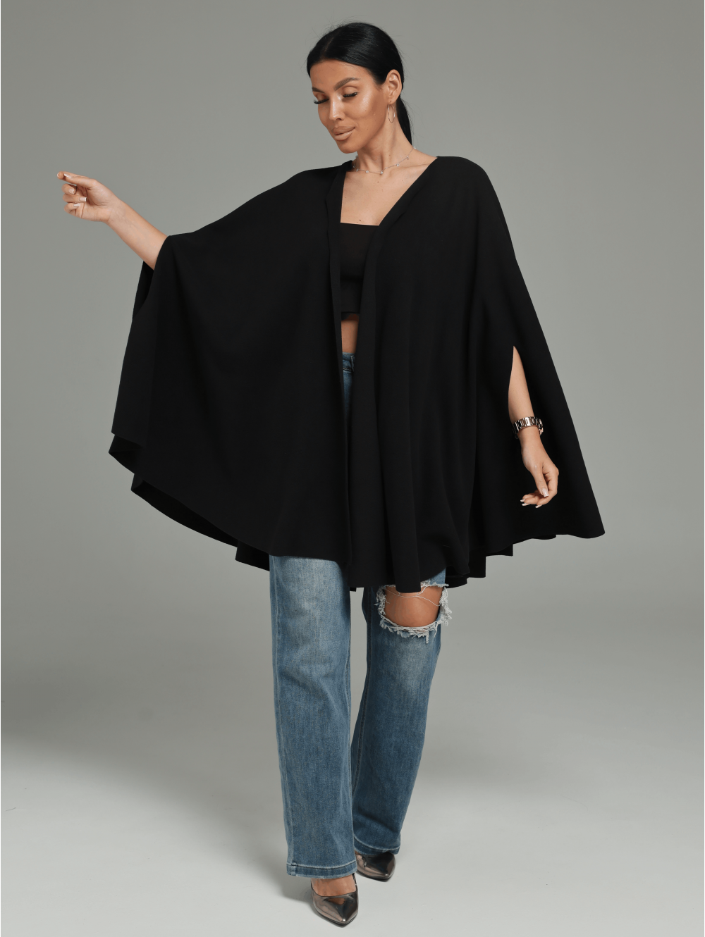 Женский кардиган-пончо Миледи / Черный