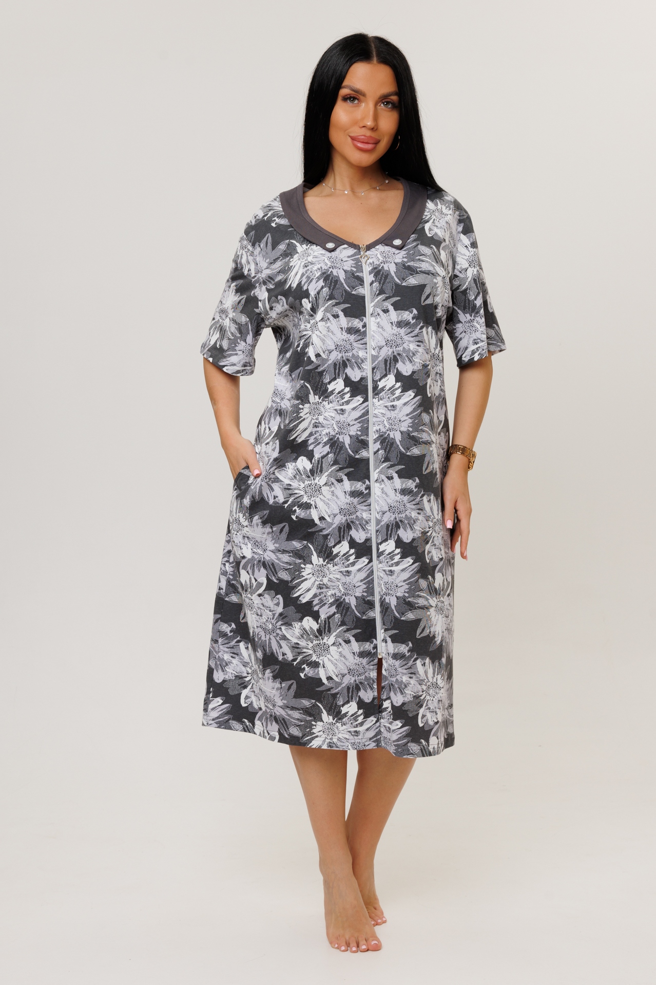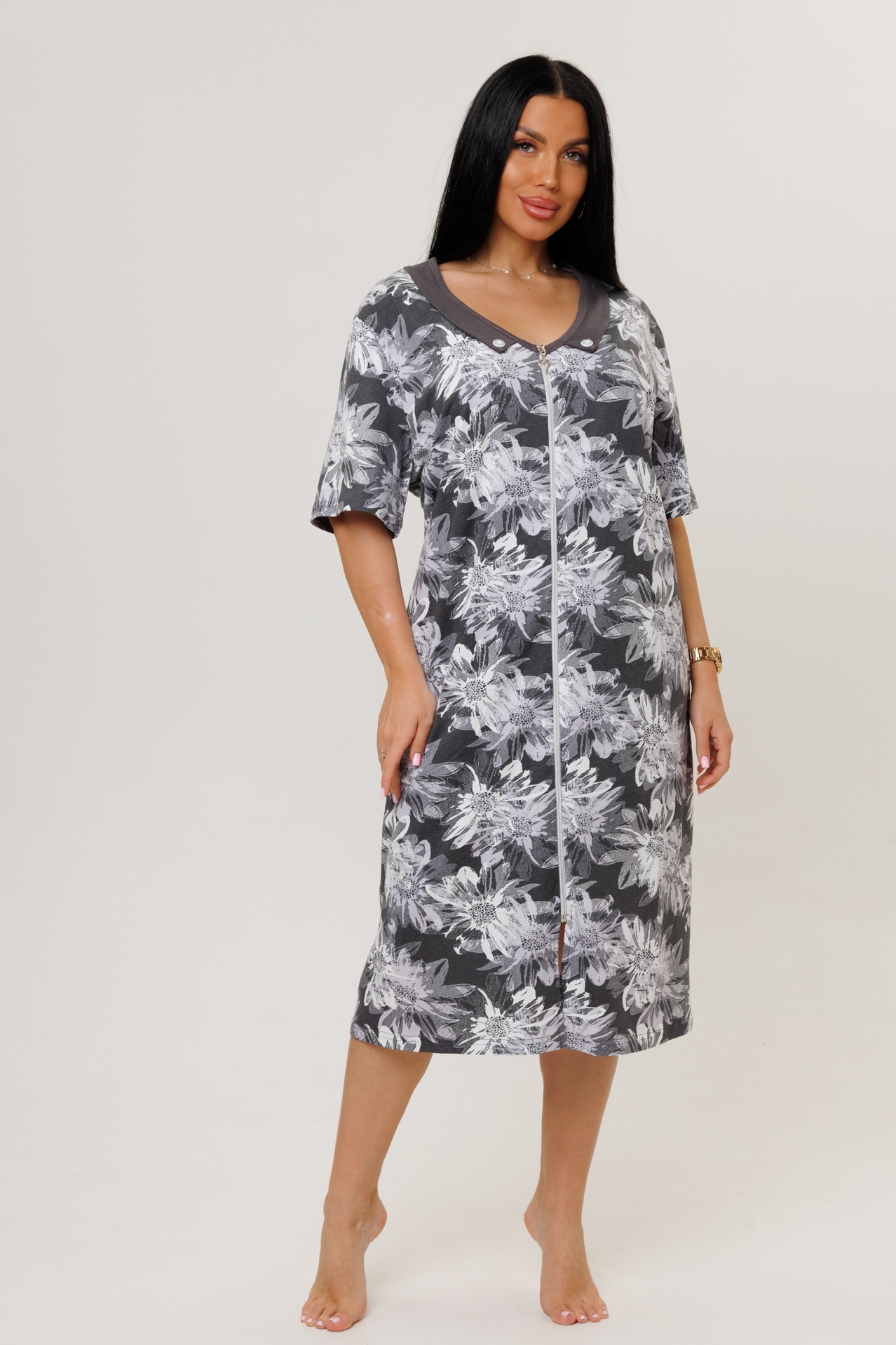 Женский халат на молнии сшит из качественного хлопкового трикотажа (кулирки). Ткань прекрасно выдерживает многократные стирки, не закатывается, а цвет остаётся ярким и насыщенным. Она подходит для людей с чувствительной кожей.