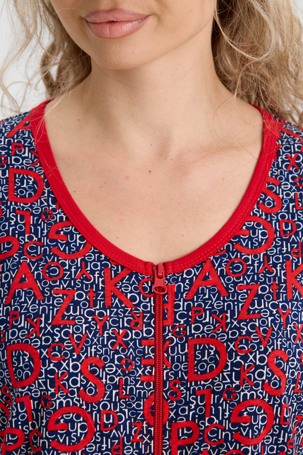 Модный и яркий женственный халатик выполнен из 100% хлопчатобумажной ткани, что обеспечивает максимальный комфорт при ношении. Отличается мягкостью и приятной на ощупь текстурой. Материал прекрасно дышит. Носить такой халатик Вы сможете как летом, так и в любой другой сезон. Надёжный замок на молнии сохраняет свои свойства в течении всего времени использования. Женственный вырез и 2 боковых кармана добавляют образу шарм и делают изделие удобным и практичным. Изысканный халатик подойдёт для любого типа фигуры. Отличная модель для дома, для роддома, после родов, для кухонных дел и хозяйственной уборки, для дачи. И конечно идеально после душа, сауны, бани и ванной.