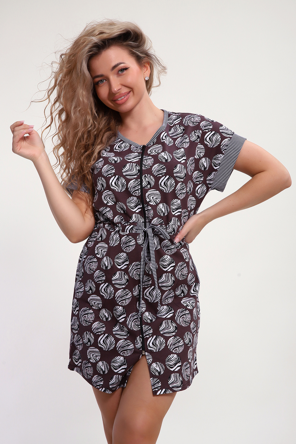 Женский трикотажный халат на молнии без сомнения станет самой желанной и любимой вещью в гардеробе любой дамы. Халатик укороченный, на кулисе со шнурком, с удобными карманами и молнией. Выглядит стильно и современно. Халатик такого плана подходит для фигур разного типа. Легкий и мягкий, качественный, дышащий, сшит из высококачественного трикотажа, подарит вам абсолютную непринужденность и легкость, простор в движении, идеально подойдет для беременных и кормящих и будет хорошим сопровождением в роддом и не вызовет раздражения, так как создан из натуральной ткани. Благодаря этому может стать прекрасным подарком для, мамы, подруги, бабушки, сестры или коллеги на любой праздник. Отлично сядет на женщин больших размеров. Данная модель будет кстати для отдыха на даче и даже поездки к морю. Домашняя одежда российского производства, имеет комфортную посадку, не линяет, не дает усадку после стирки и долго сохраняет первоначальный внешний вид. Халатик подчеркнет Ваш стиль и добавит молодежных нот в ваш образ, а затягивающийся пояс на талии придаст женственности и изящества вашему луку. Стирайте изделия из хлопка на бережном режиме с температурой не выше 30С, чтобы сохранить цвет, форму и фактуру материала. Приобретая наши изделия, радуйте себя и своих близких.