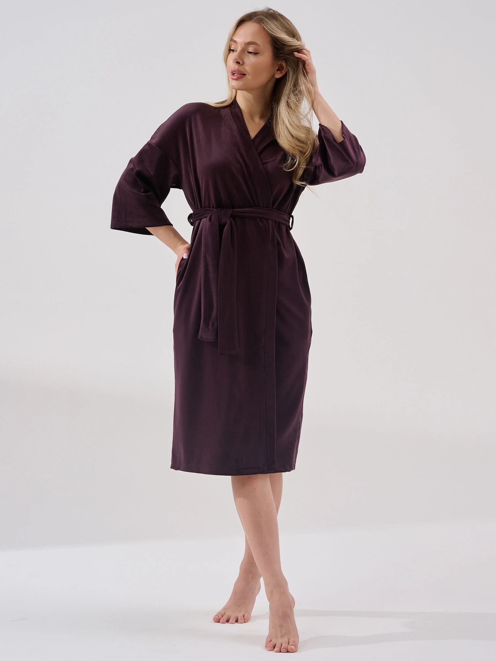 Халат женский велюровый "Бархат" 2405-В удивительно мягкий и нежный. Стильный и современный дизайн понравится даже тем, кто предпочитает другую одежду для дома. Его комфортно носить в любое время года. Зимой не будет холодно, а летом жарко. Домашняя одежда смотрится дорого и роскошно. Велюр ласково льнет к телу и дарит удовольствие от каждого прикосновения. Велюровый халат удобен для спокойного отдыха, выполнения домашних обязанностей и занятий хобби.