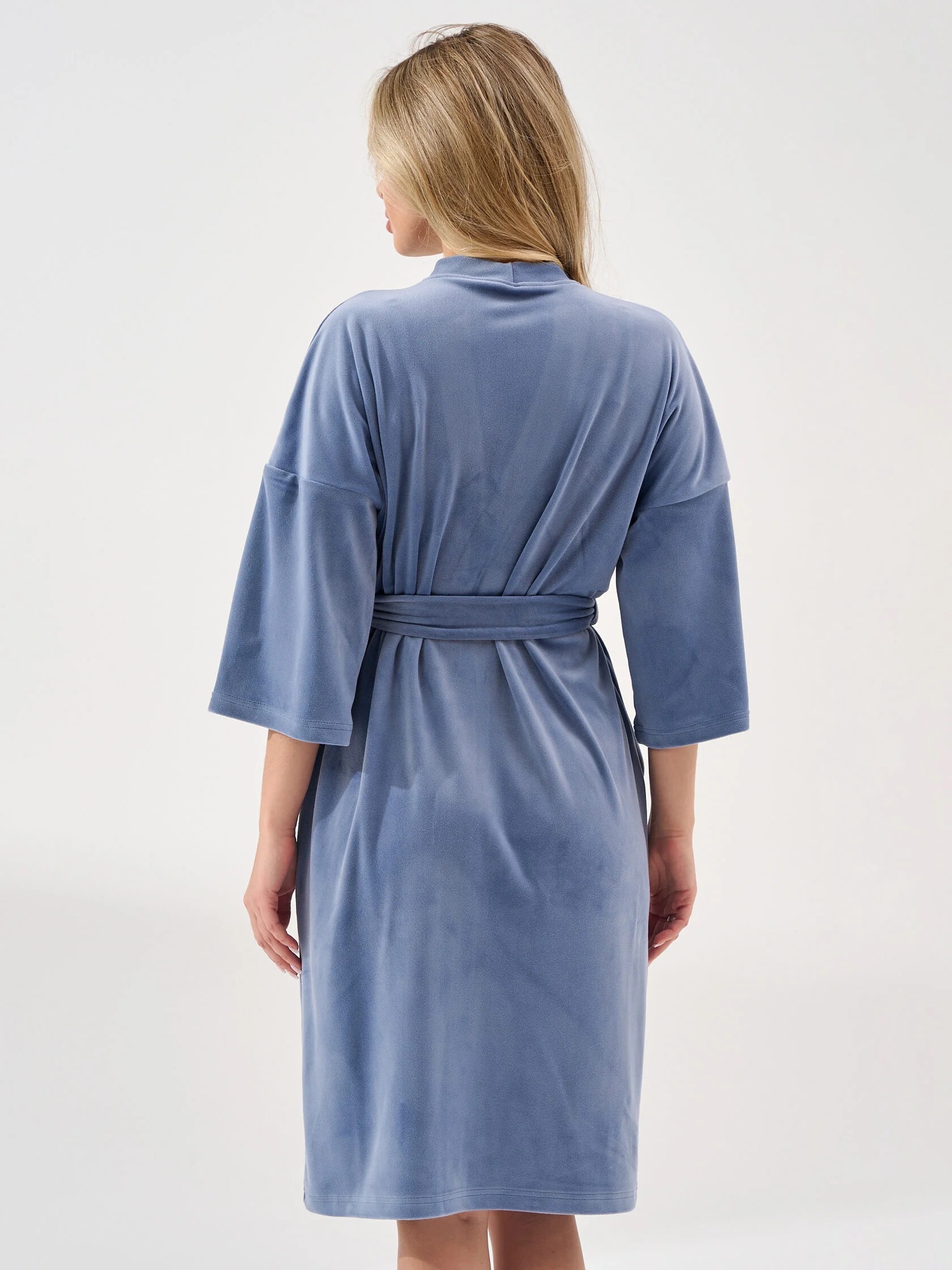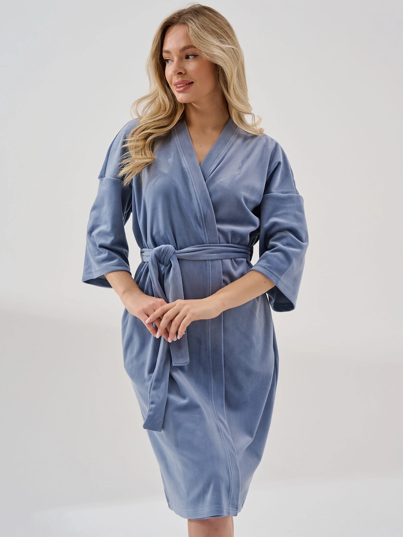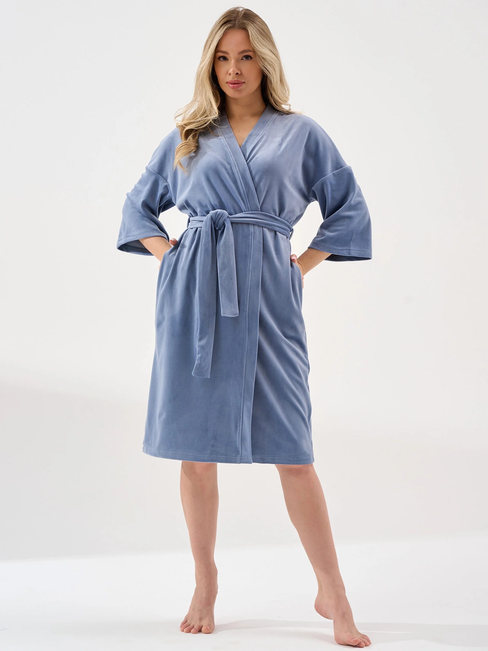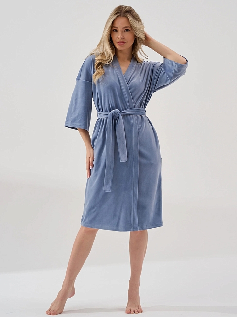 Халат женский велюровый "Бархат" 2405-В удивительно мягкий и нежный. Стильный и современный дизайн понравится даже тем, кто предпочитает другую одежду для дома. Его комфортно носить в любое время года. Зимой не будет холодно, а летом жарко. Домашняя одежда смотрится дорого и роскошно. Велюр ласково льнет к телу и дарит удовольствие от каждого прикосновения. Велюровый халат удобен для спокойного отдыха, выполнения домашних обязанностей и занятий хобби.