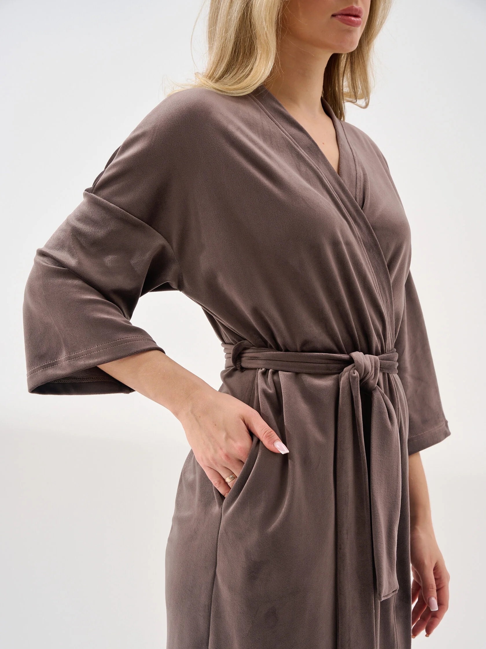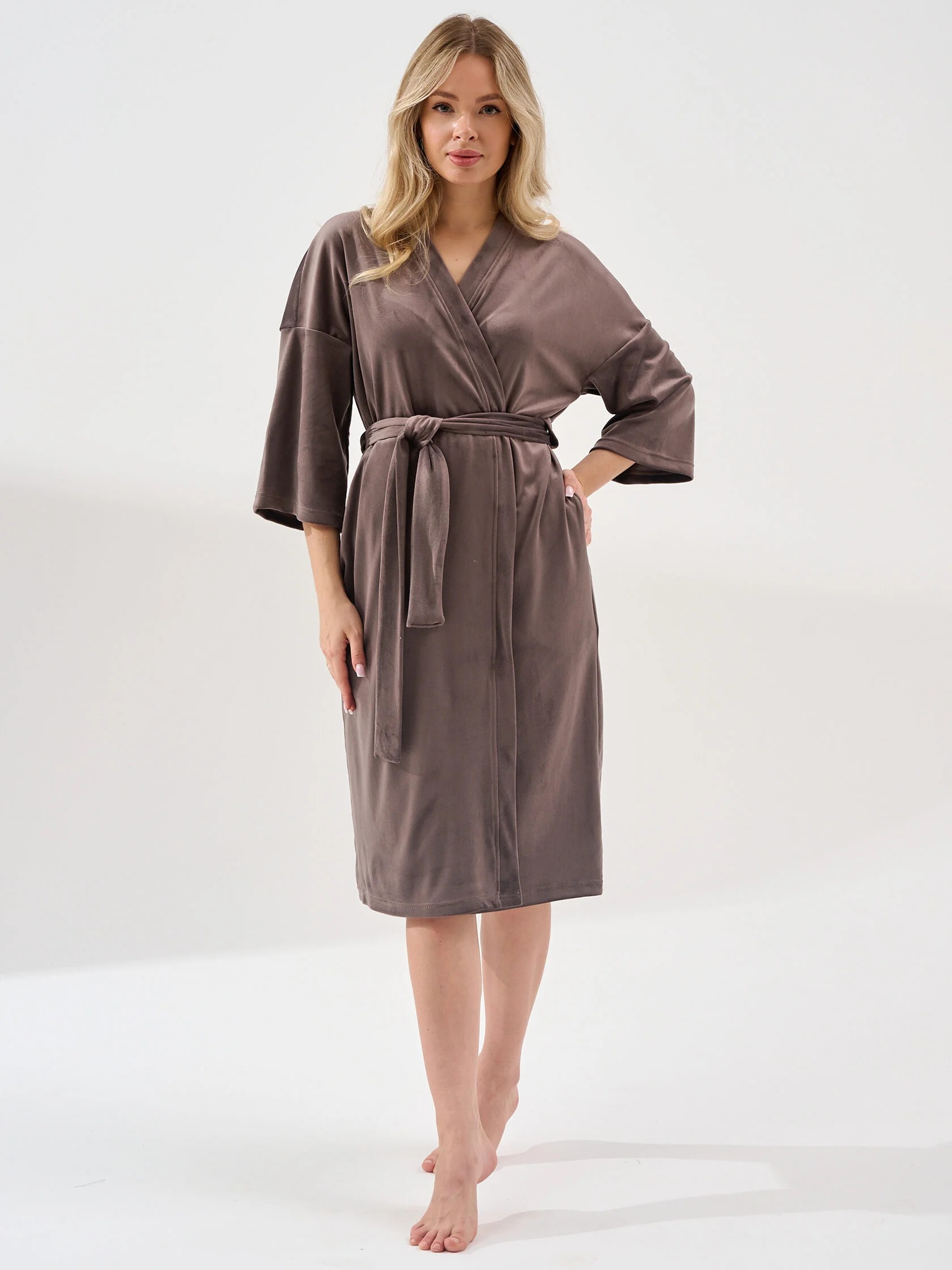 Халат женский велюровый "Бархат" 2405-В удивительно мягкий и нежный. Стильный и современный дизайн понравится даже тем, кто предпочитает другую одежду для дома. Его комфортно носить в любое время года. Зимой не будет холодно, а летом жарко. Домашняя одежда смотрится дорого и роскошно. Велюр ласково льнет к телу и дарит удовольствие от каждого прикосновения. Велюровый халат удобен для спокойного отдыха, выполнения домашних обязанностей и занятий хобби.