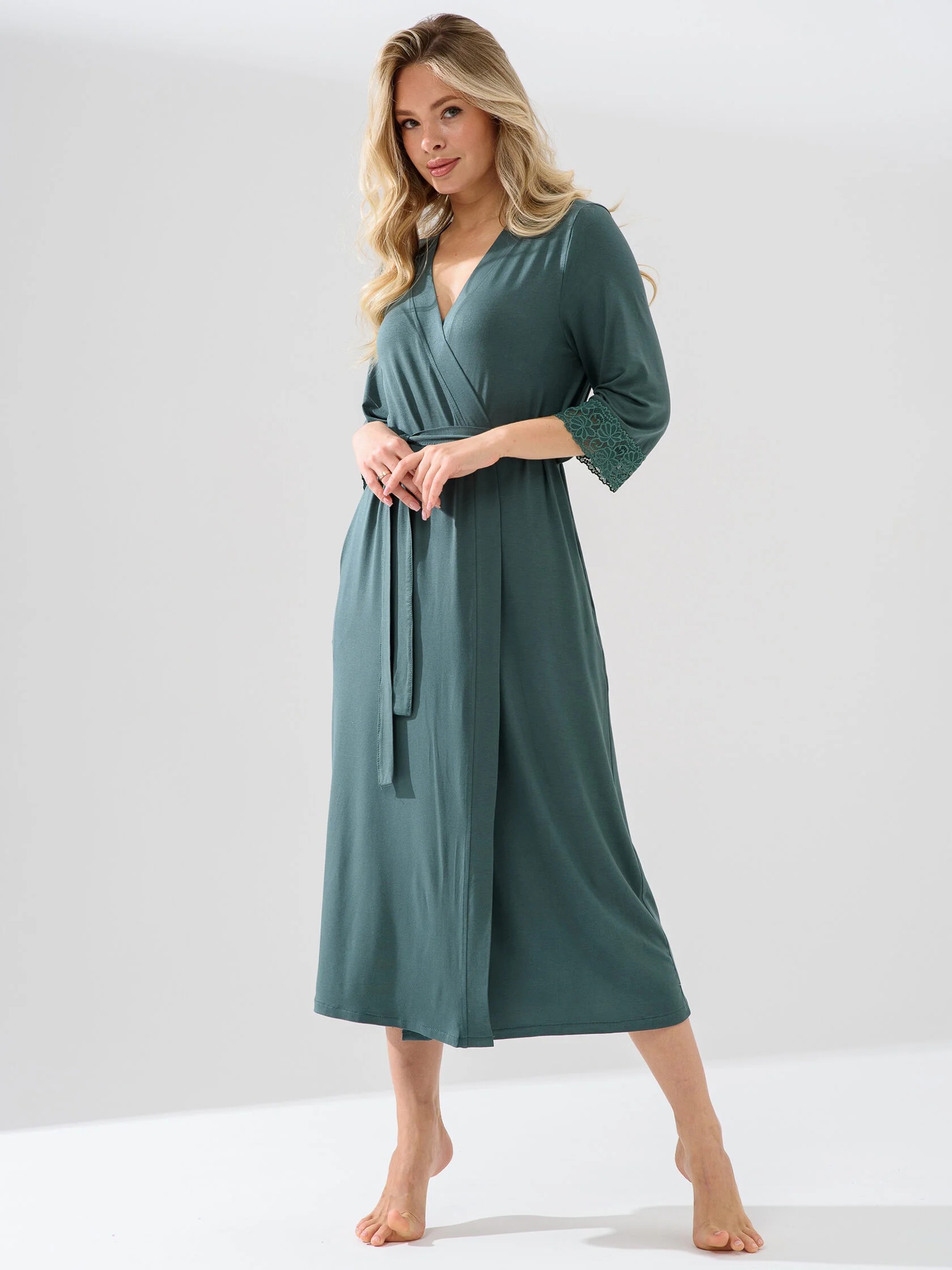 Женский халат "Флирт" 2278-Ви / Зеленый из вискозы с лайкрой.