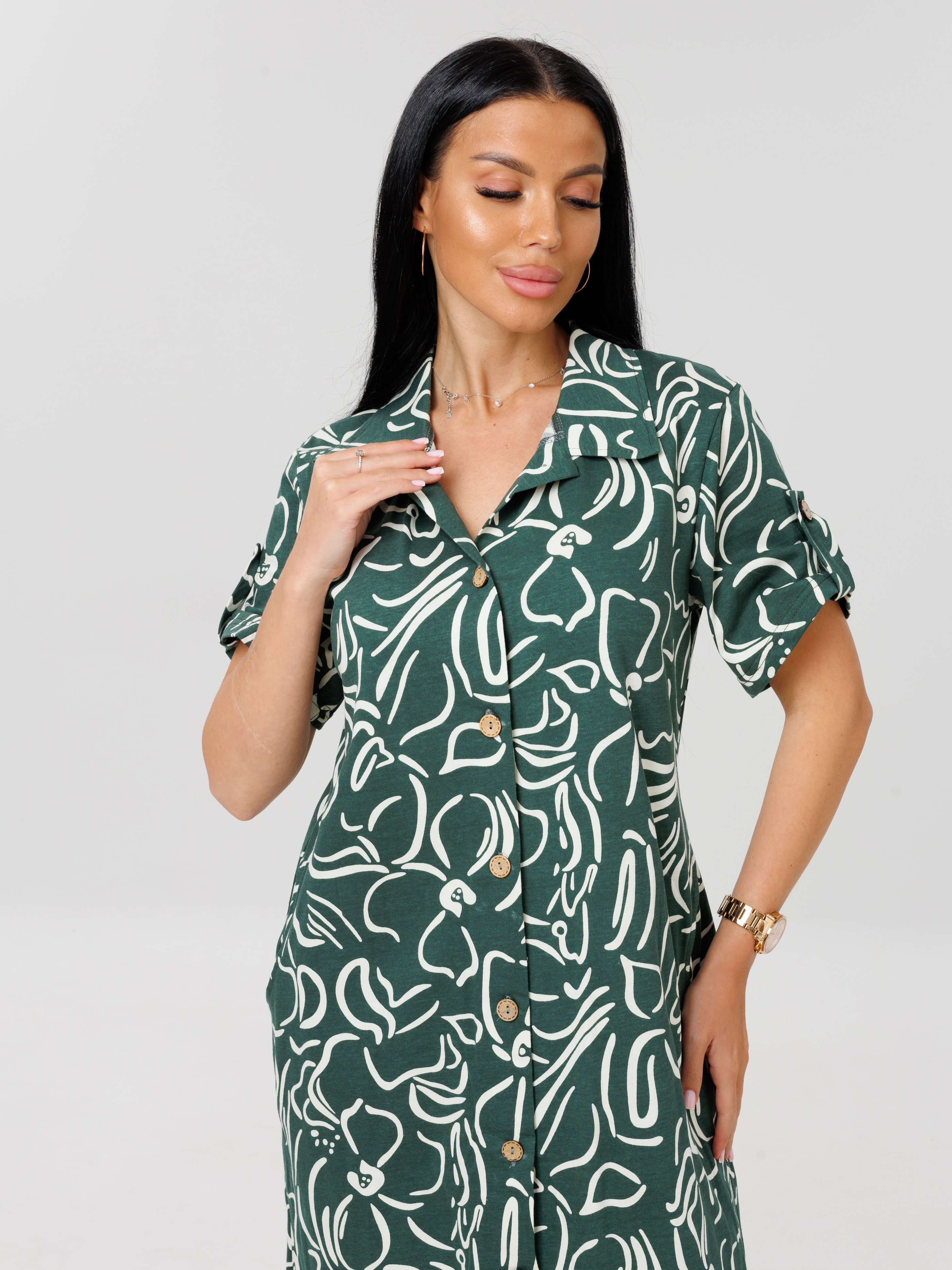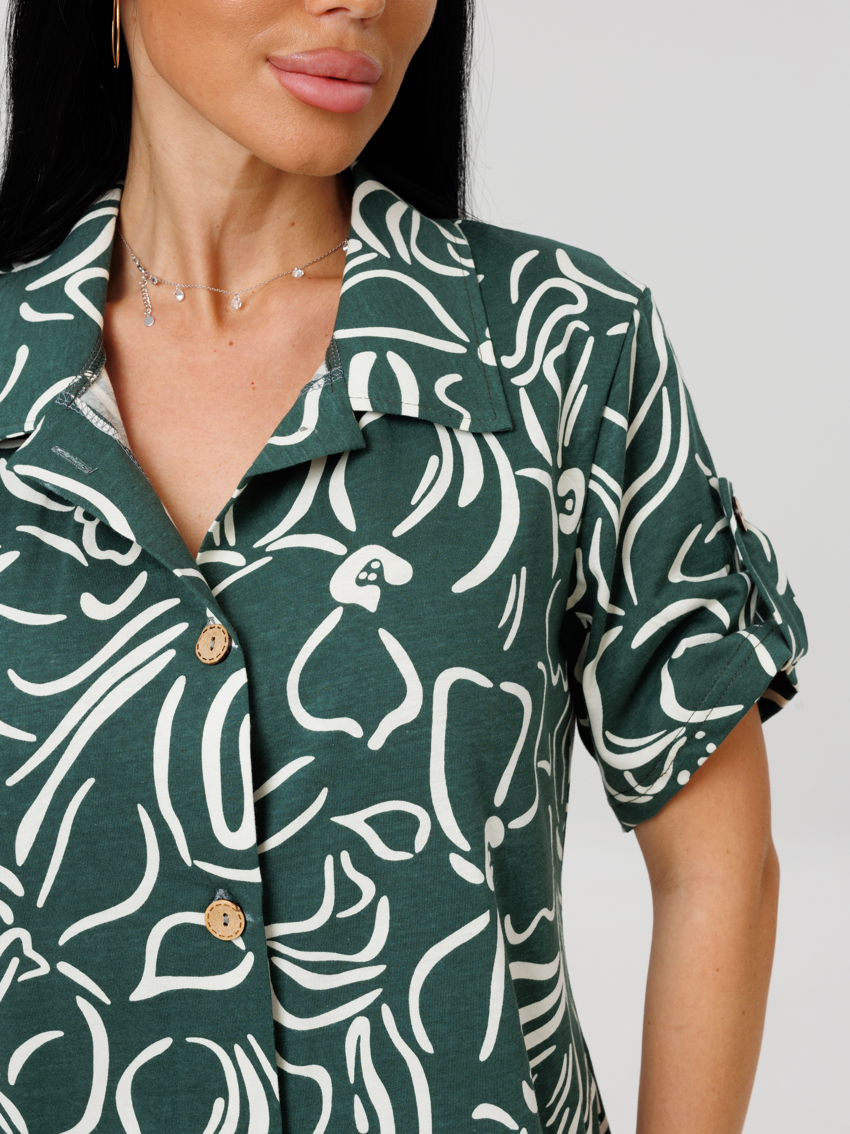 Женский халат Х-105(К) отшивается из трикотажного хлопкового полотна, кулирки. Женский домашний халат имеет застежку на пуговицы, короткие рукава и разрезы по бокам.