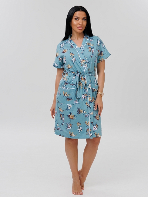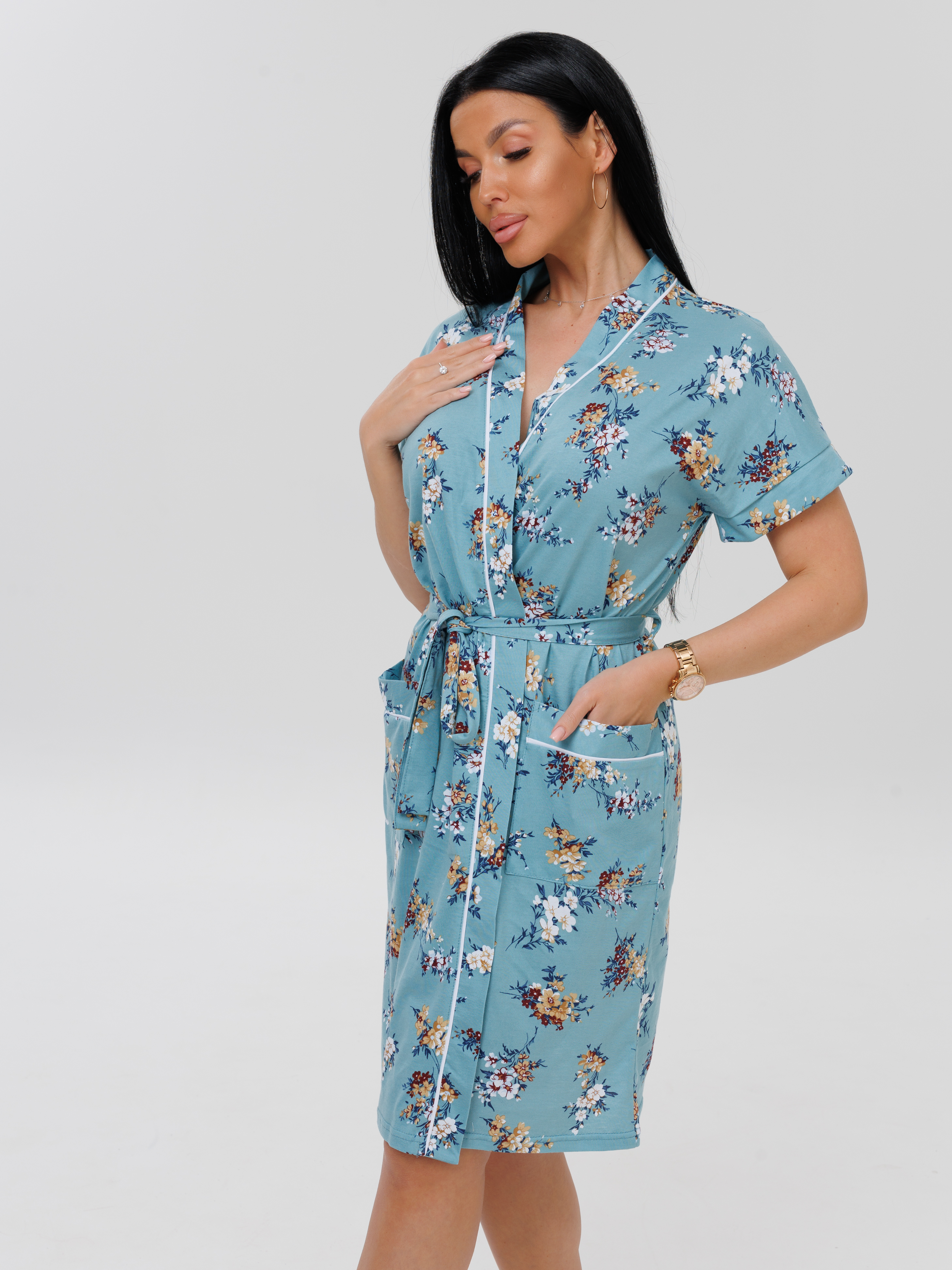 Женский халат Х-11(К) / Бирюзовый (цветы)
