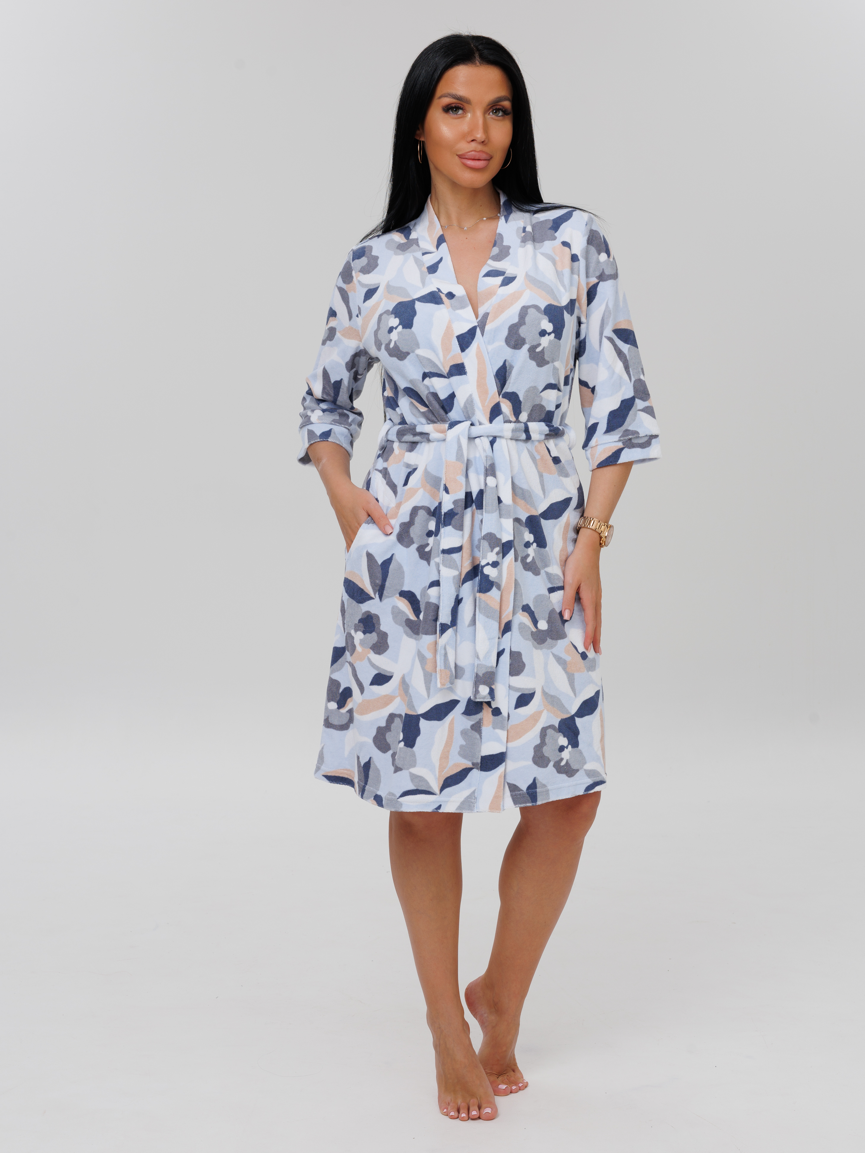 Женский халат Х-112(М) / Серо-голубой (узоры)