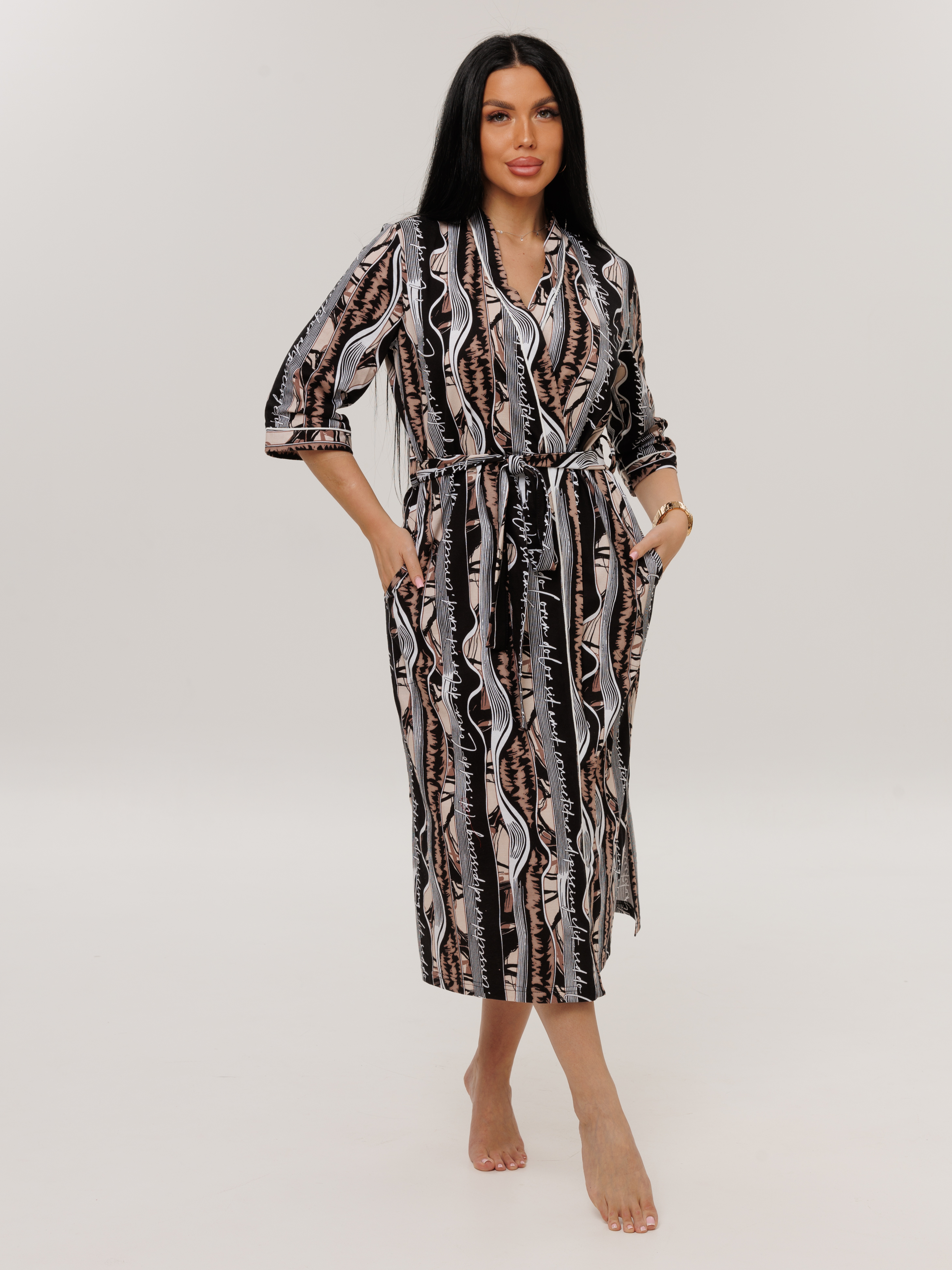 Женский халат Х-146(К) / Бежевый (волны)