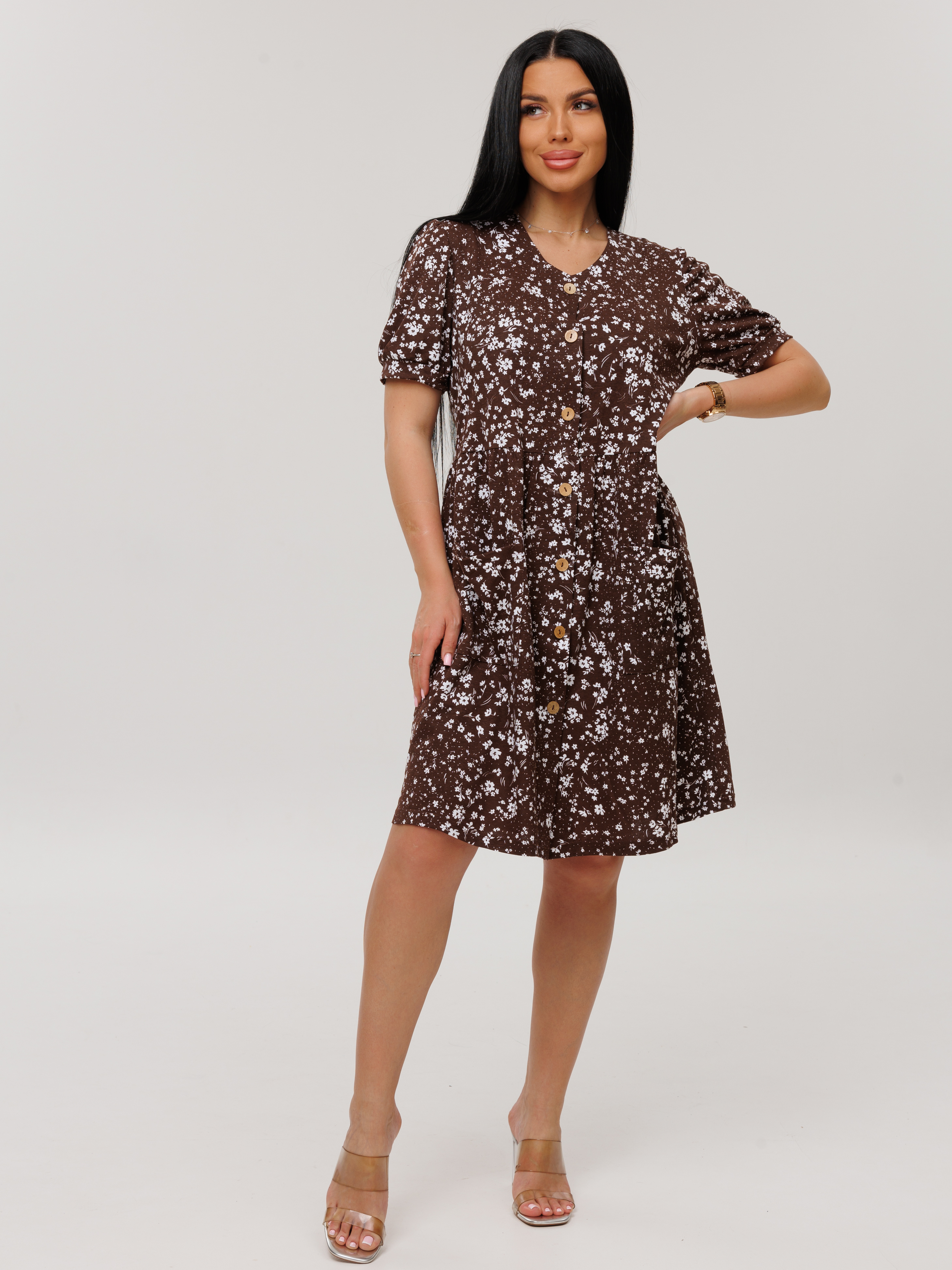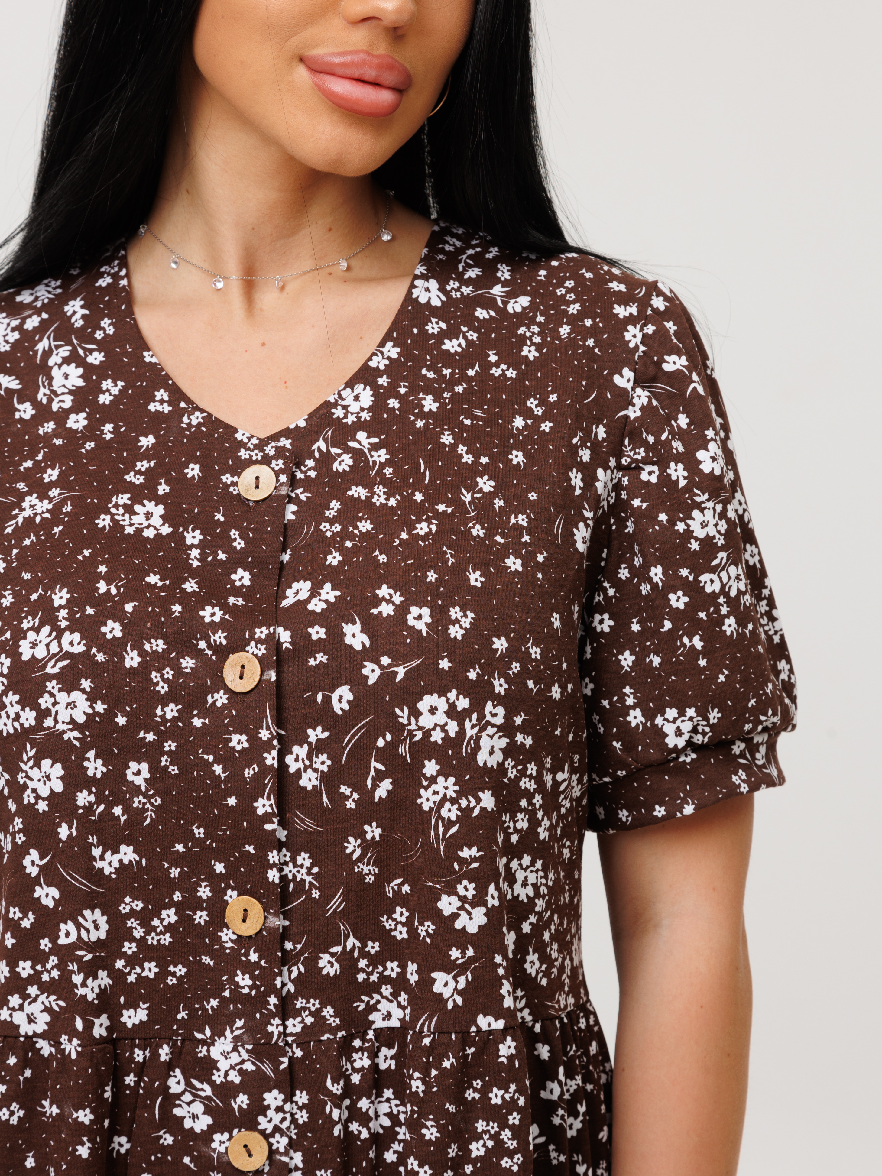 Женский халат Х-153(К) / Коричневый (цветы)