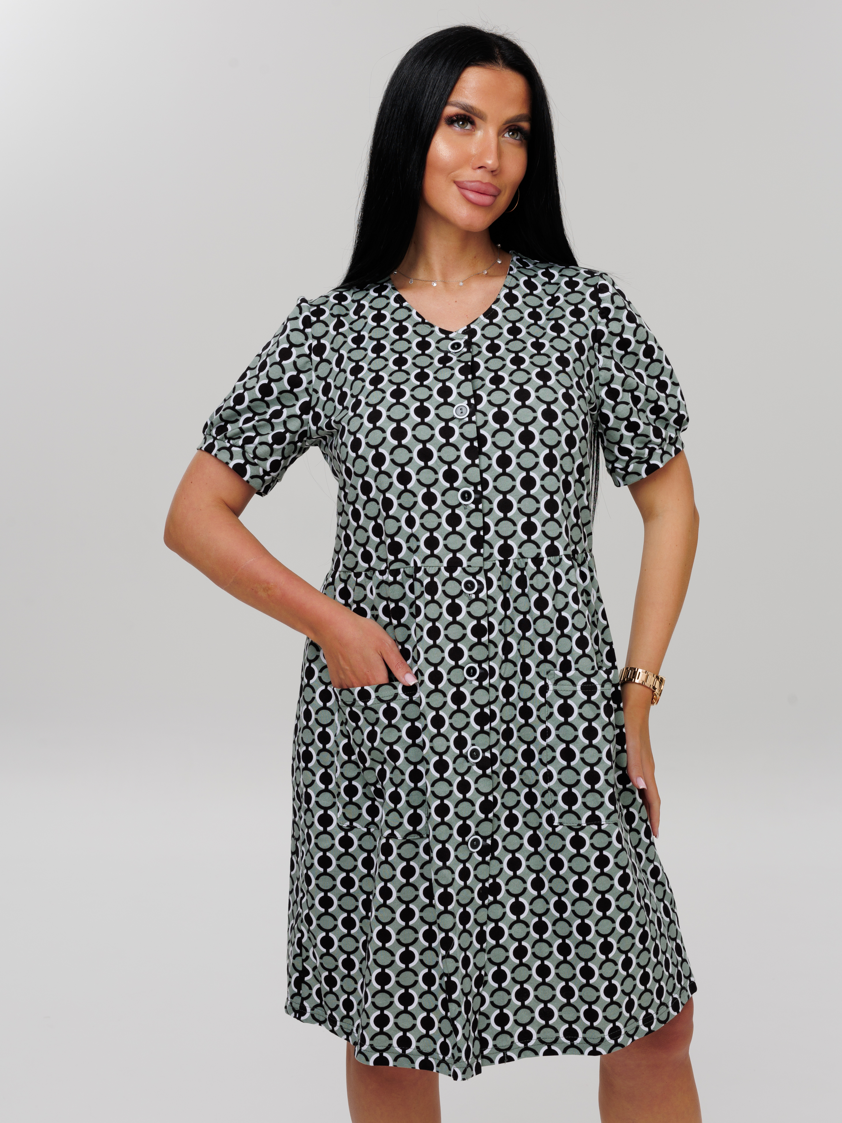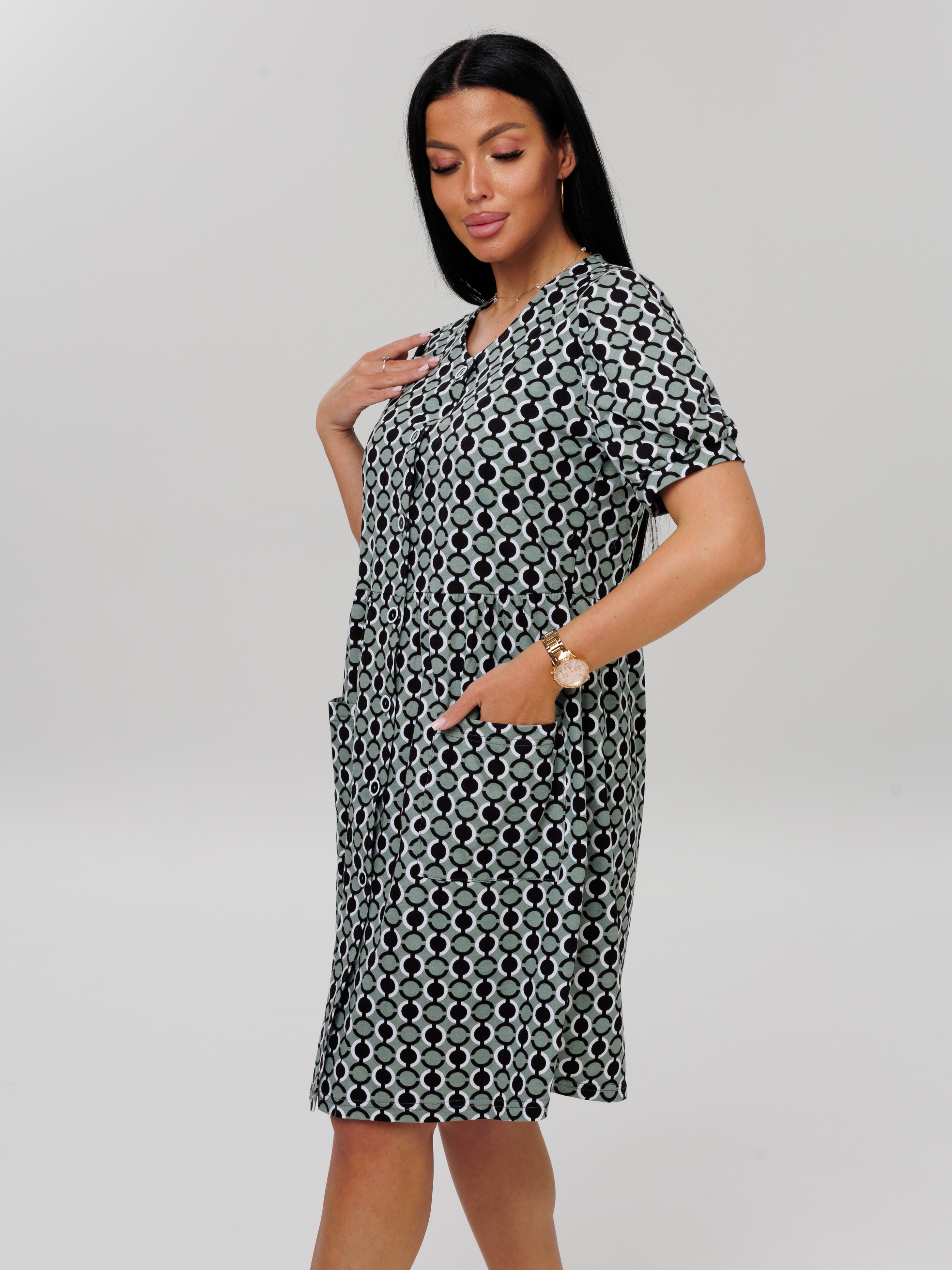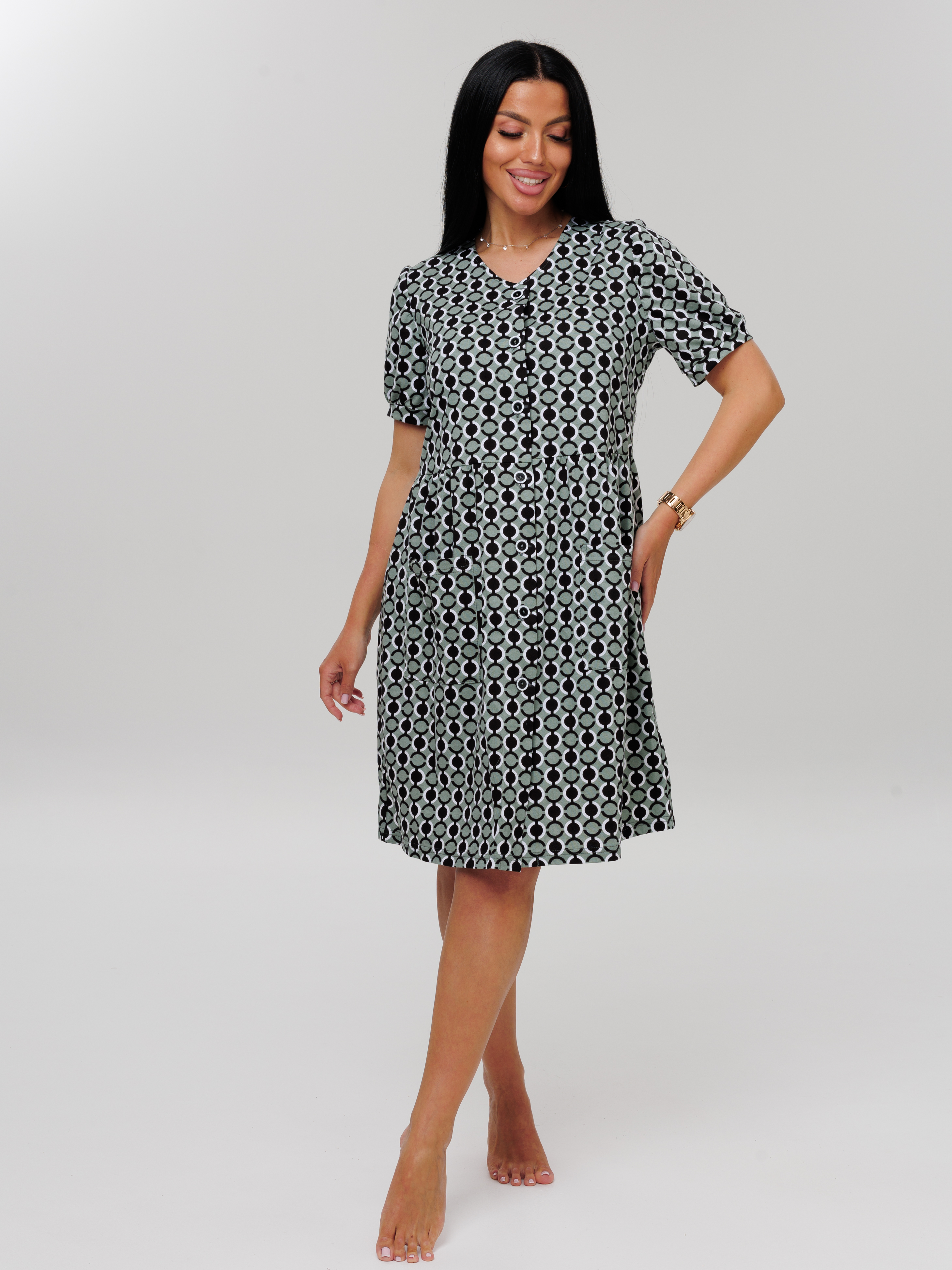 Женский халат Х-153(К) / Серо-зеленый (узоры)