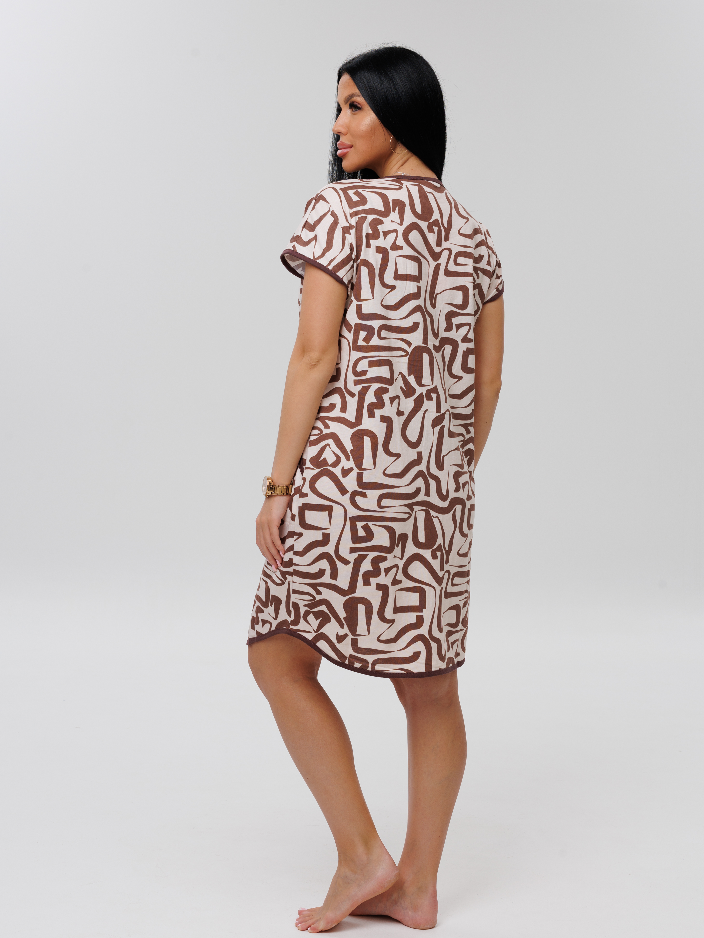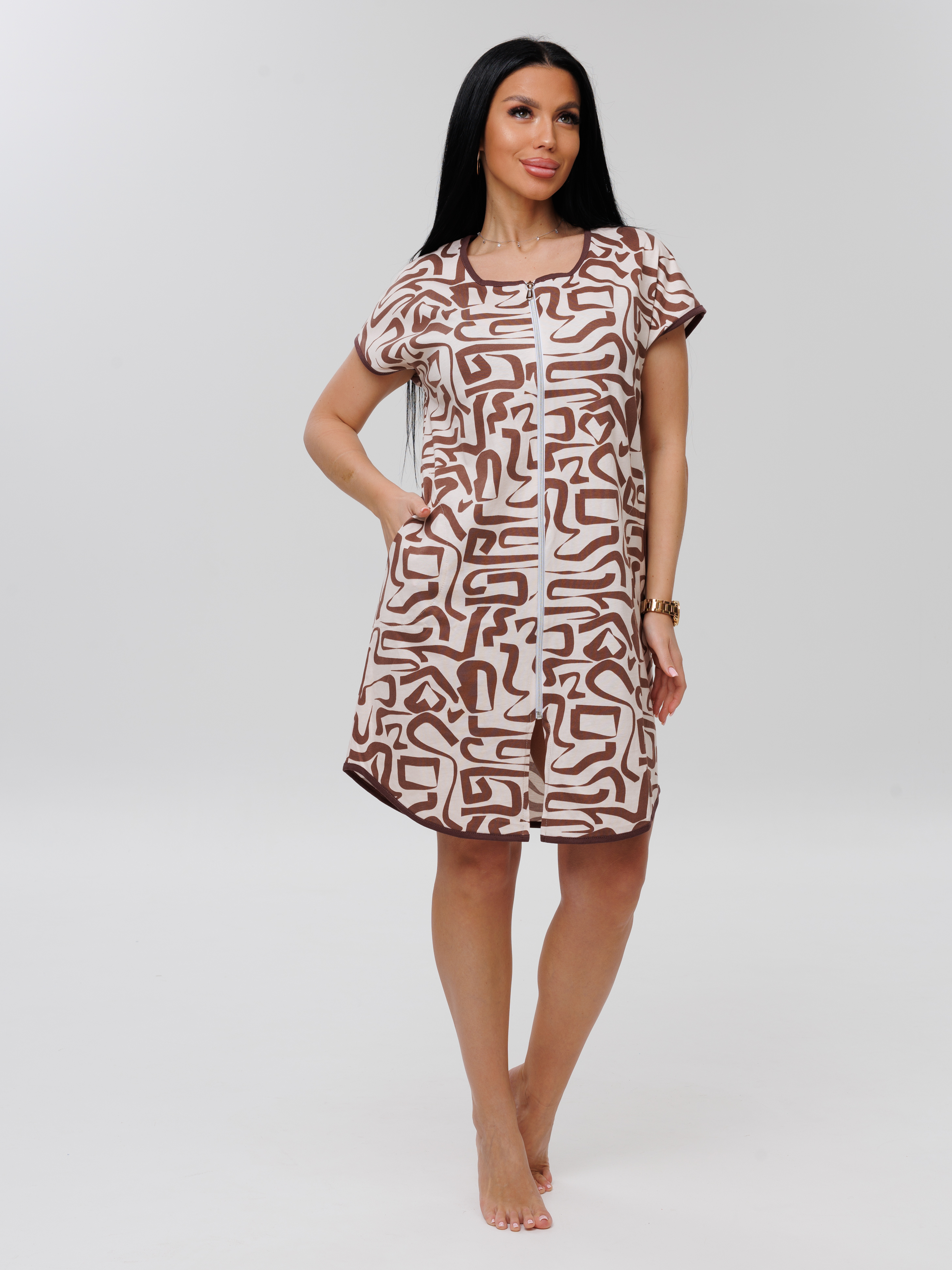 Женский халат Х-154(К) / Бежевый (коричневый узор)