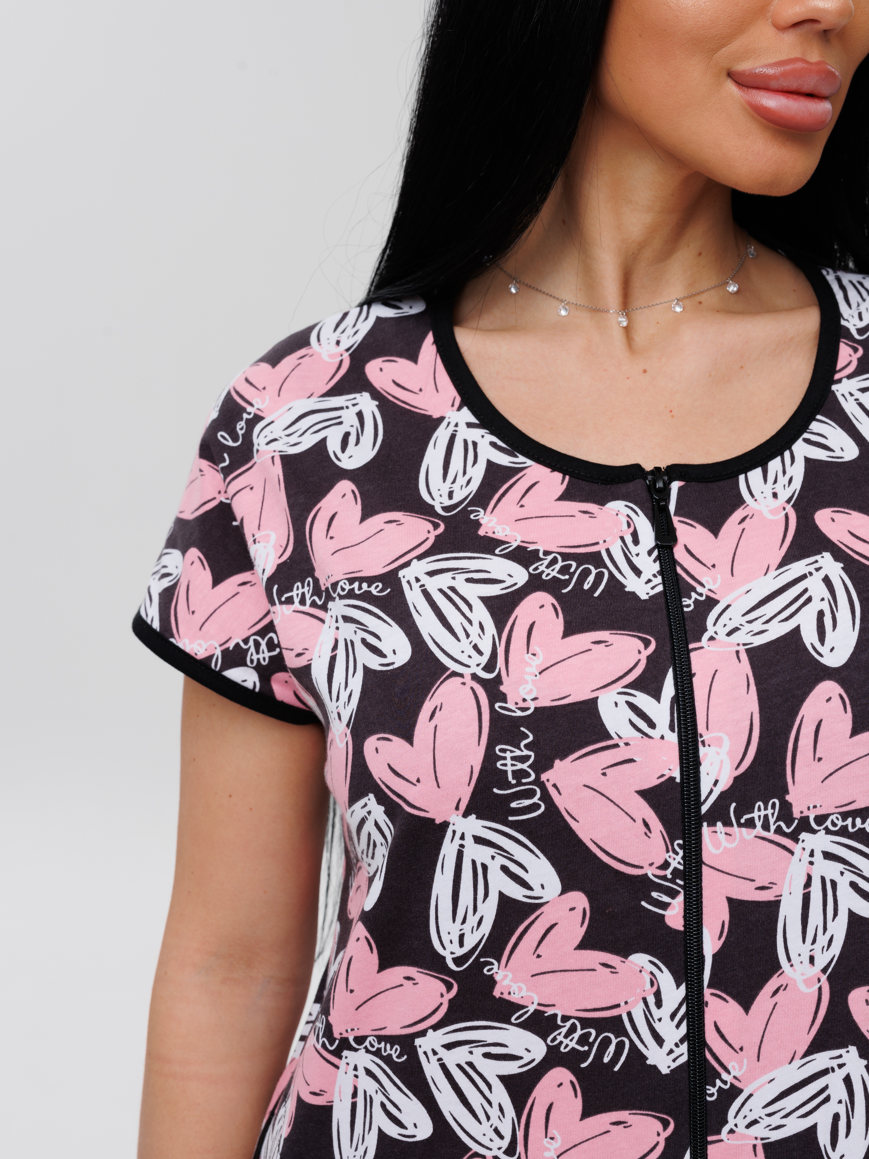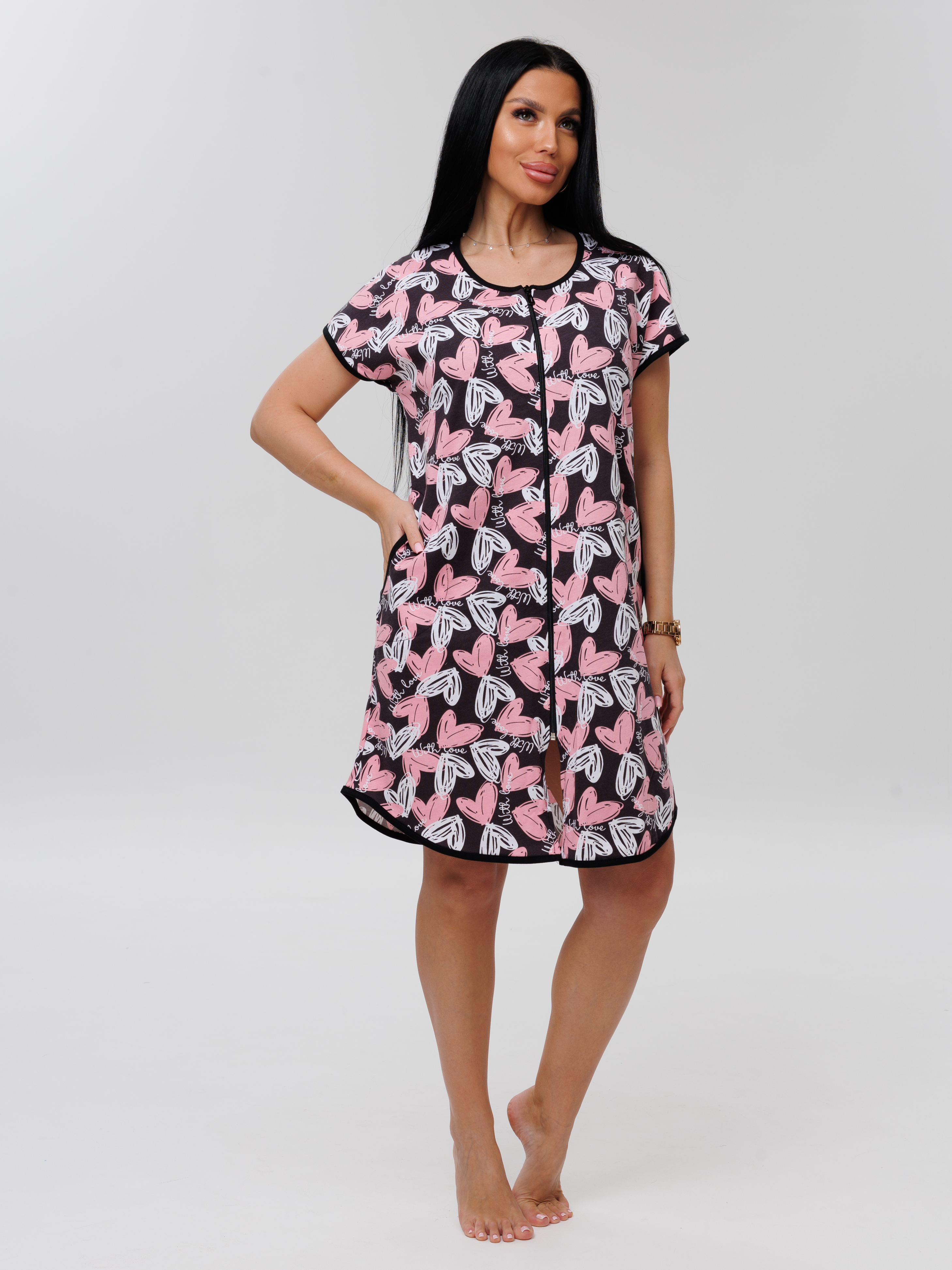 Женский халат Х-154(К) / Черный (белые сердечки)