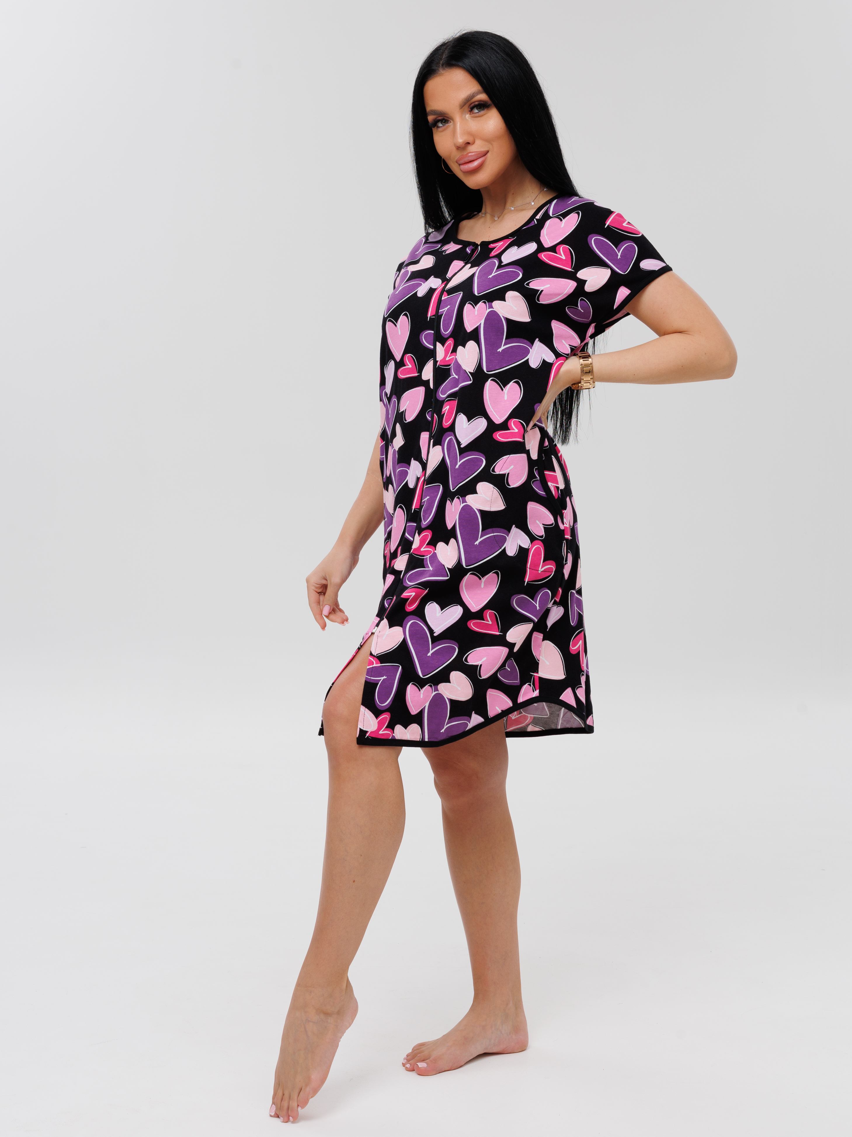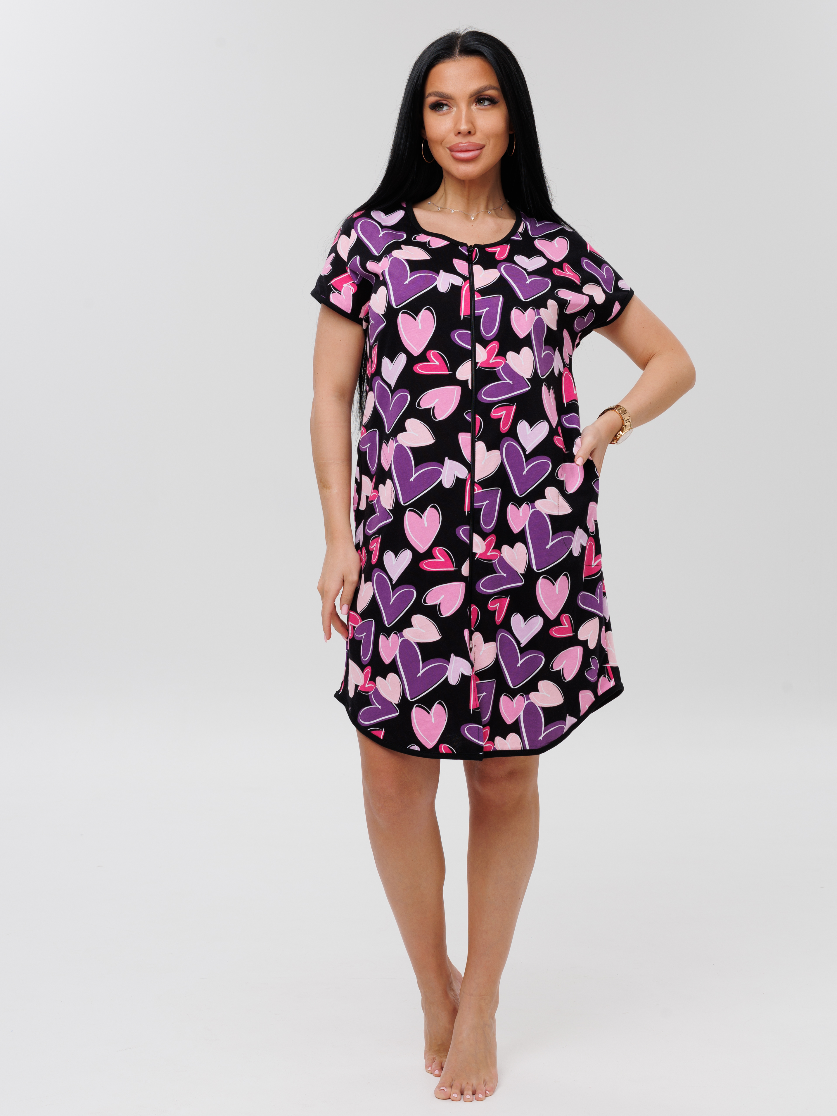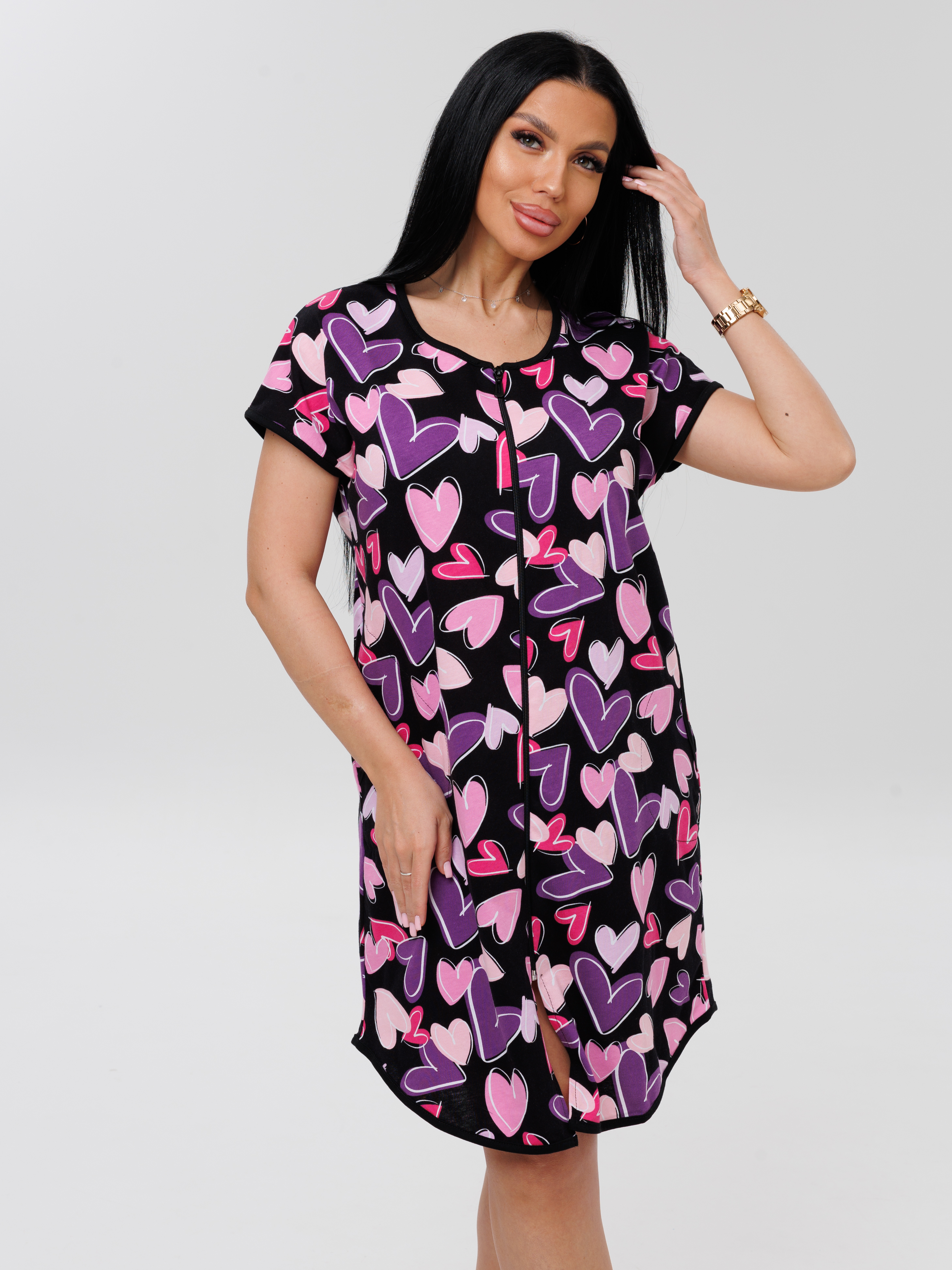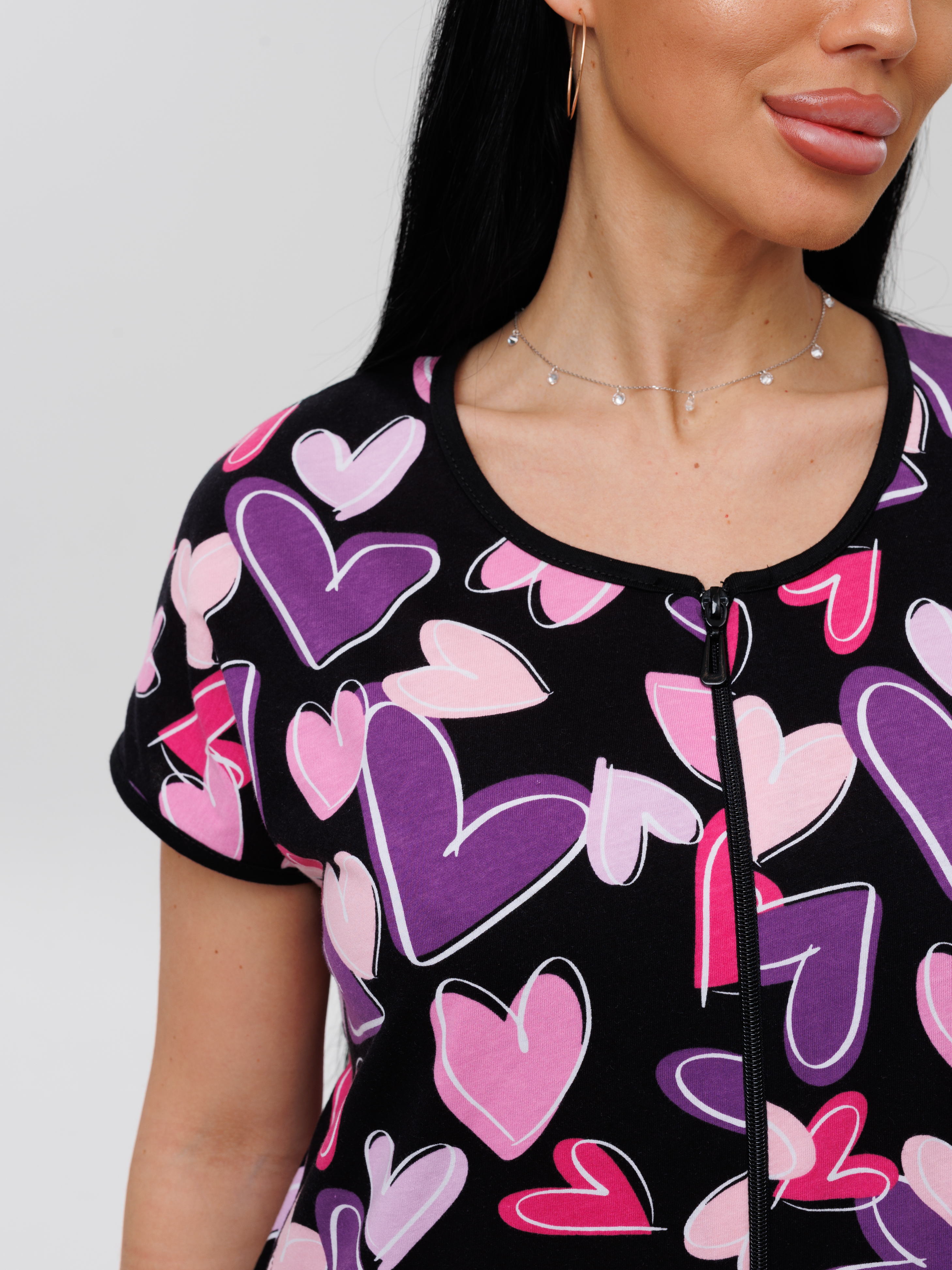 Женский халат Х-154(К) / Черный (фиолетовые сердечки)