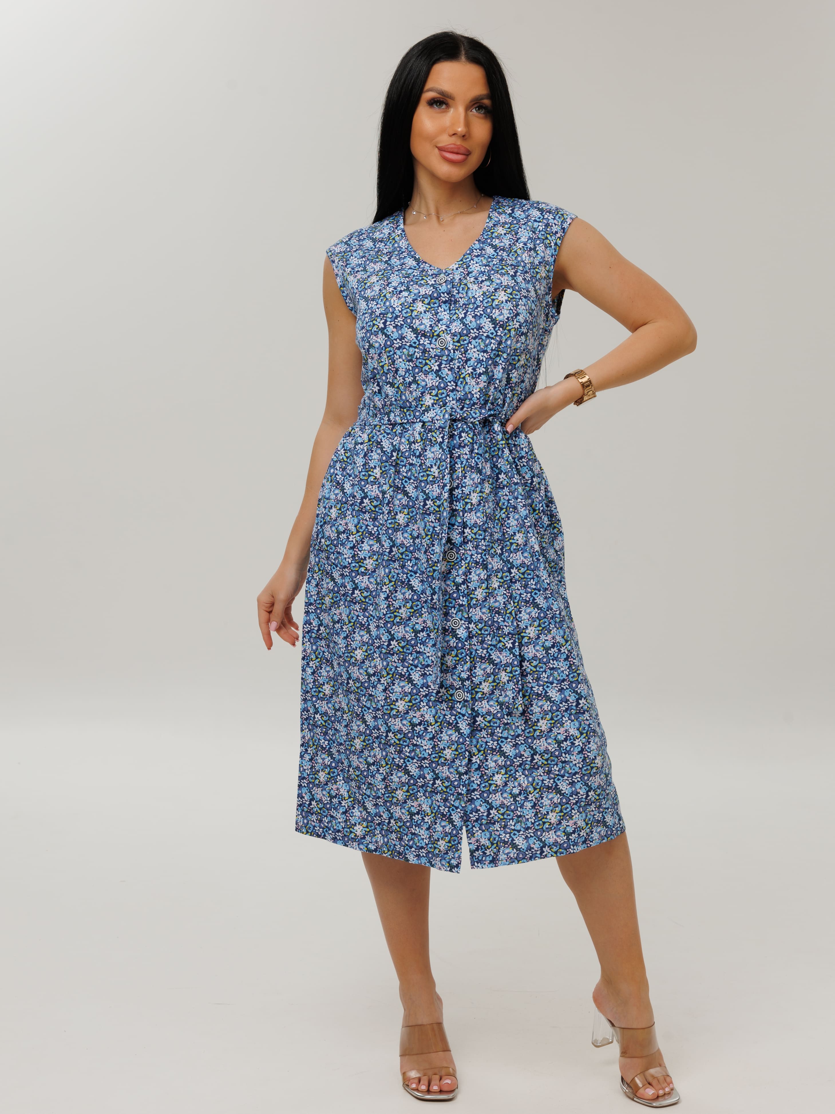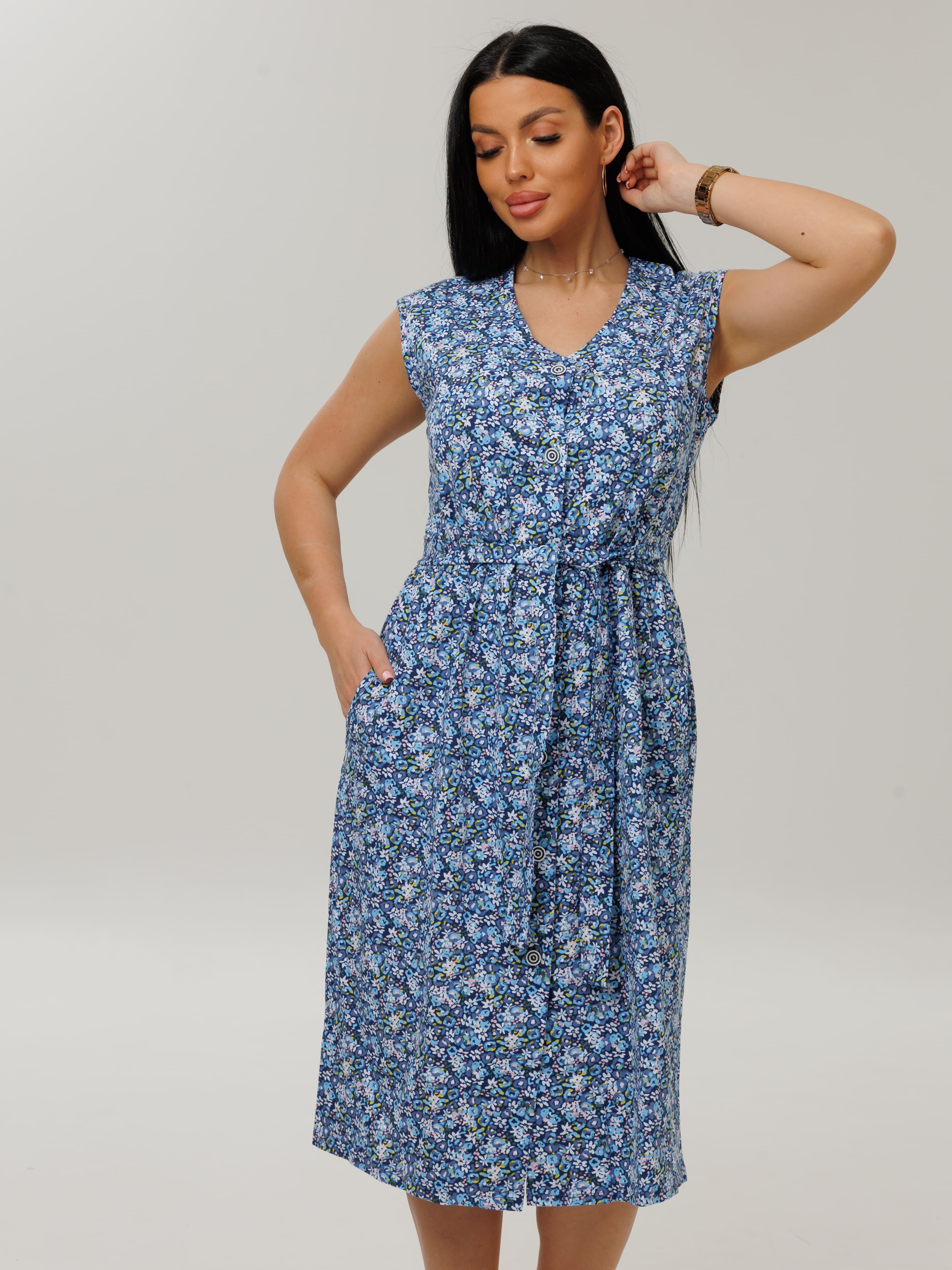 Женский халат Х-159(К) / Синий (мелкие цветы)