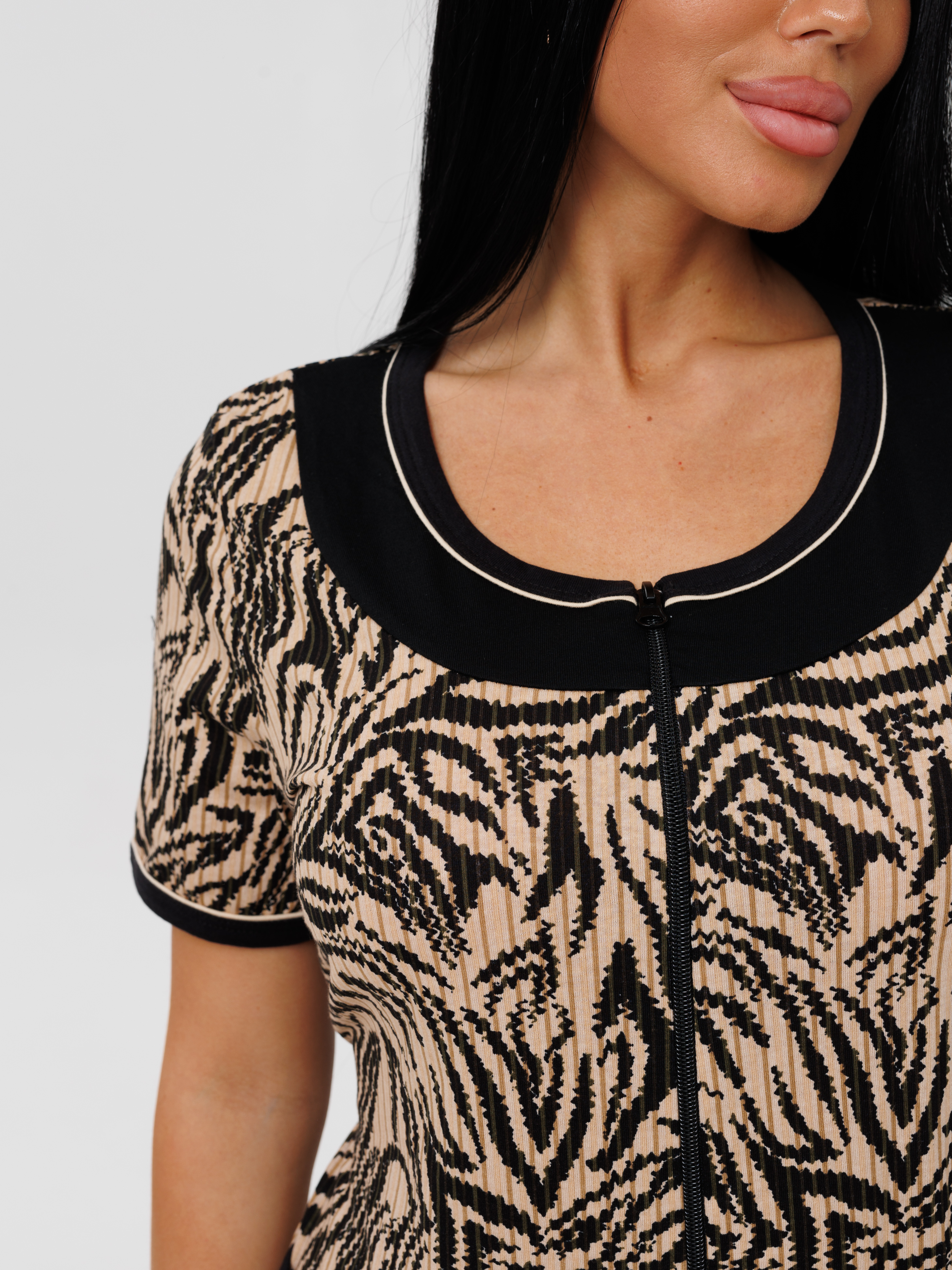Женский халат Х-165(К) на молнии, с короткими рукавами. Женский домашний халат из кулирки имеет широкий размерный ряд и яркие расцветки.