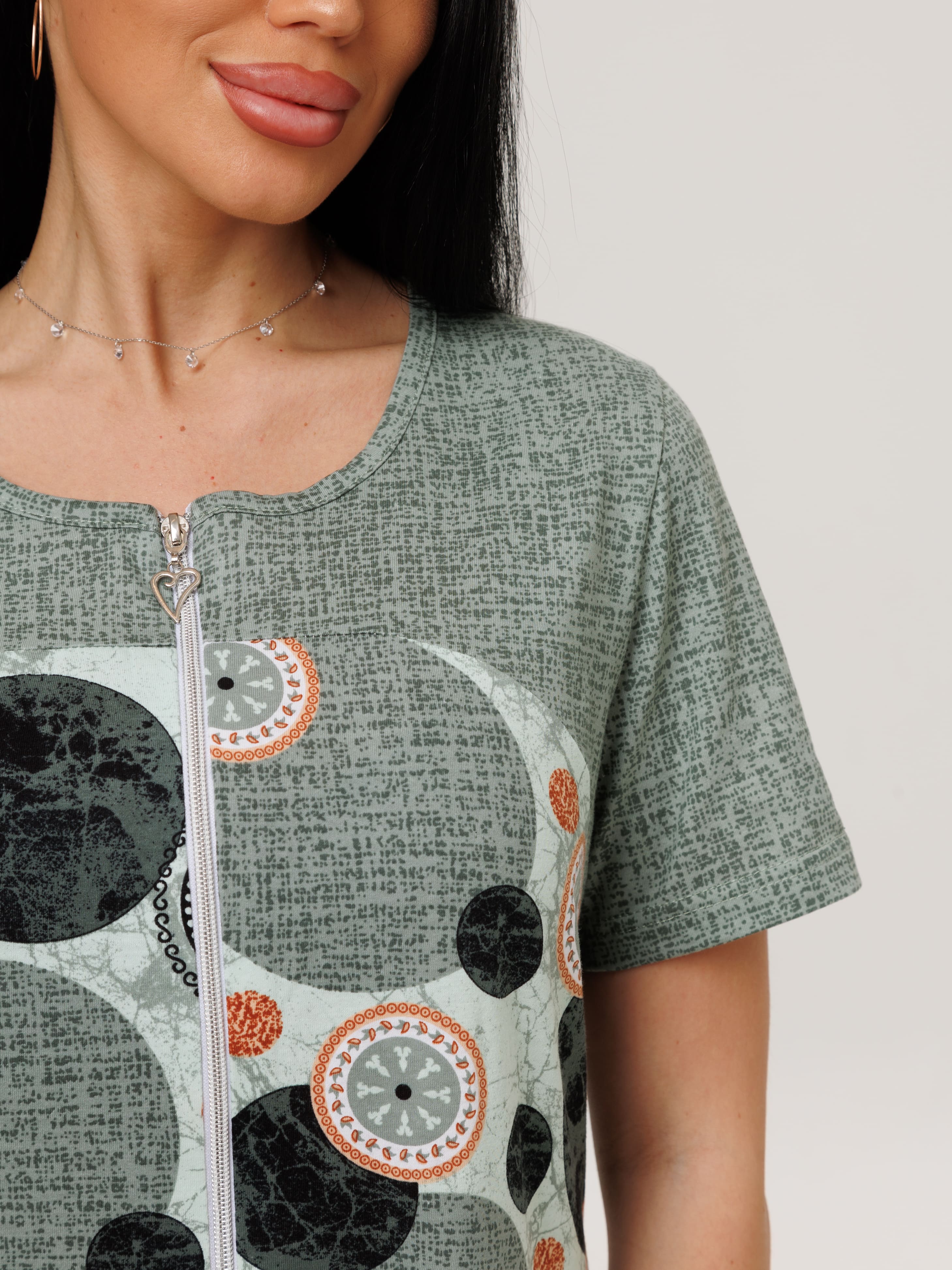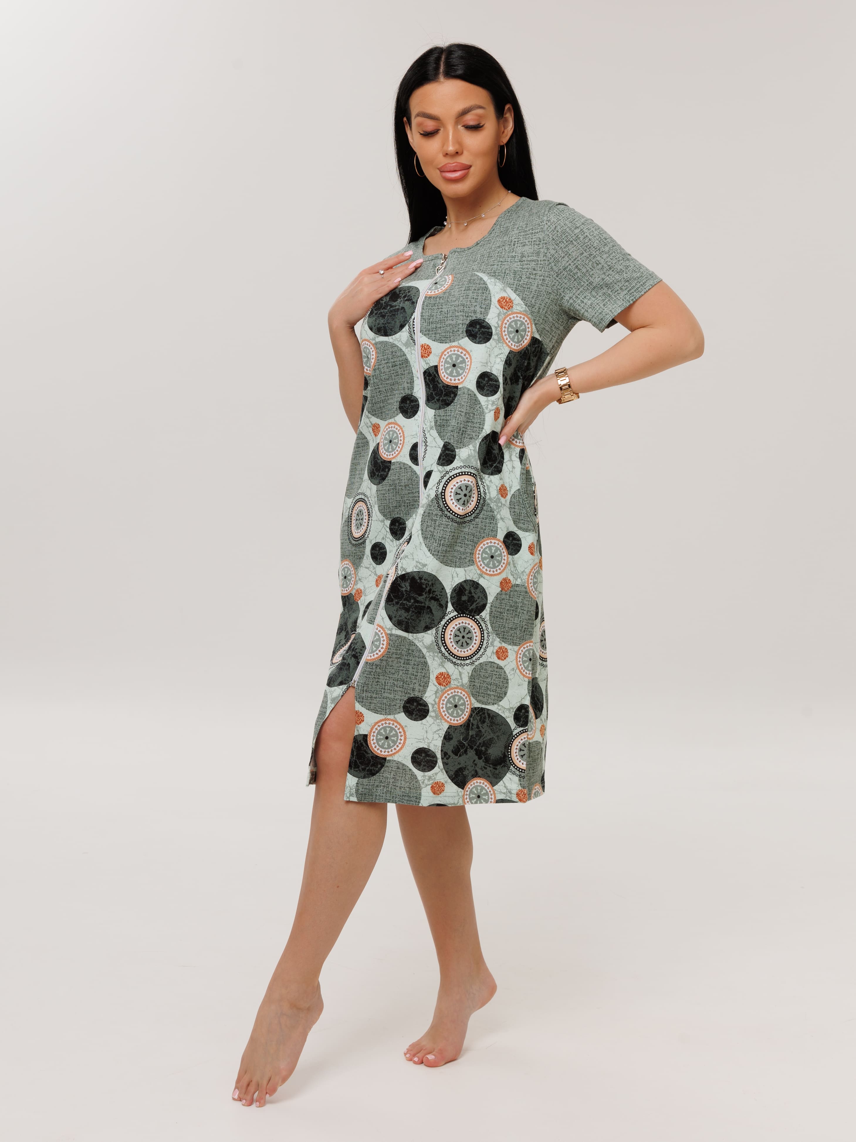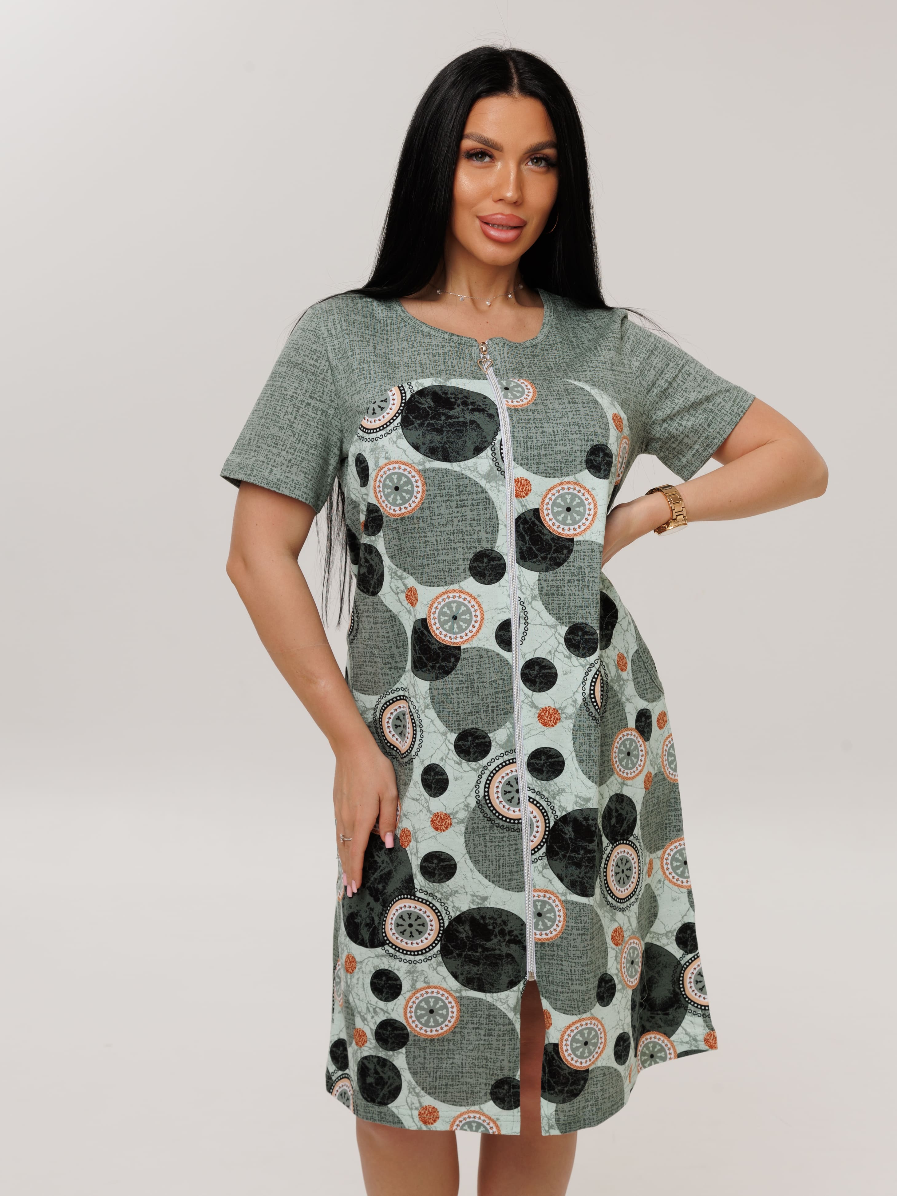 Женский халат Х-166(К) / Серо-зеленый (круги)