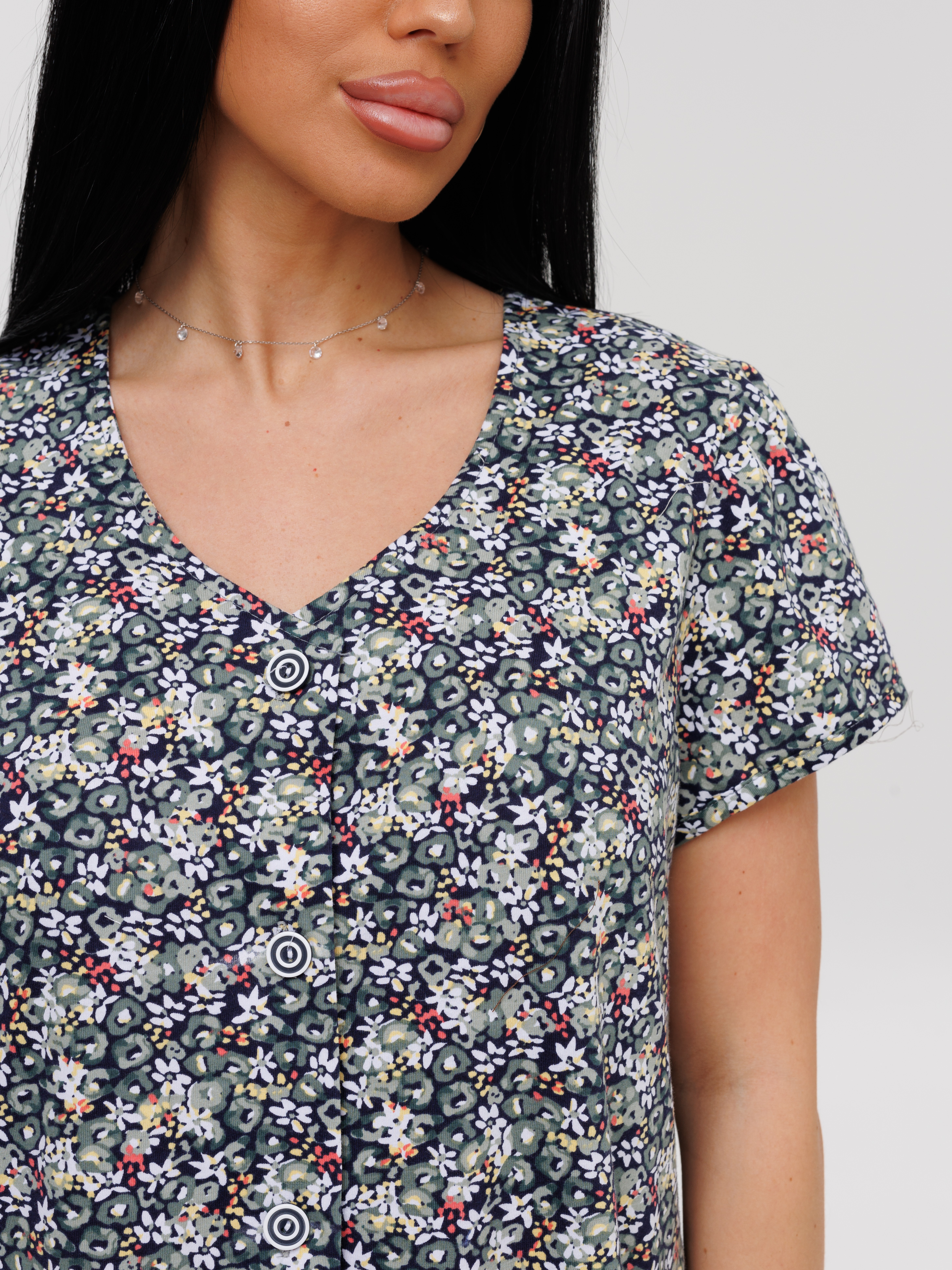 Женский халат Х-167(К) / Серо-зеленый (цветы)