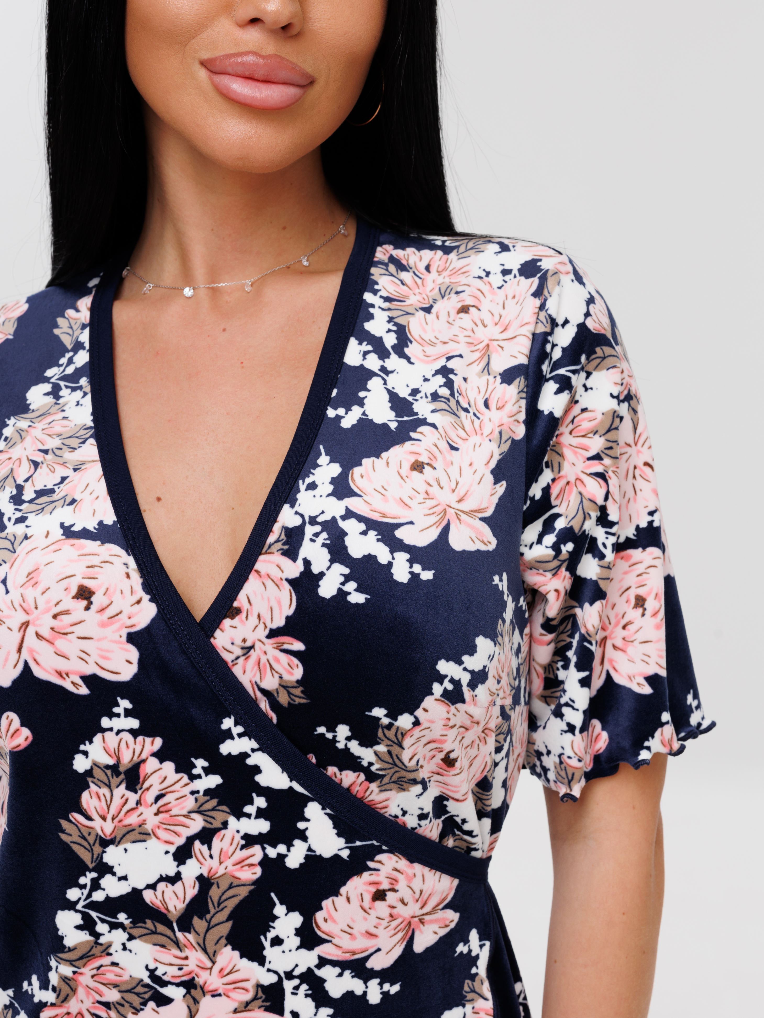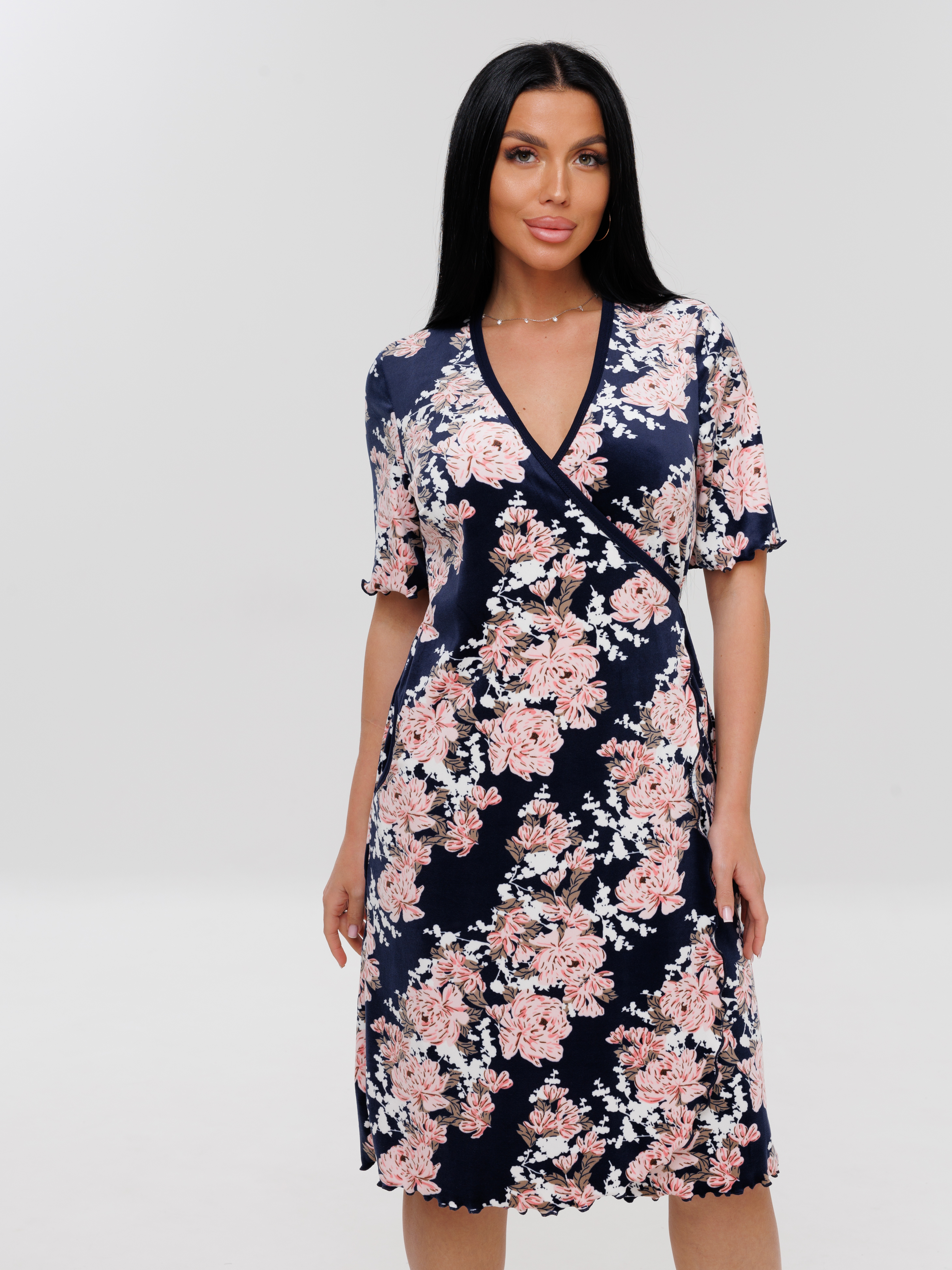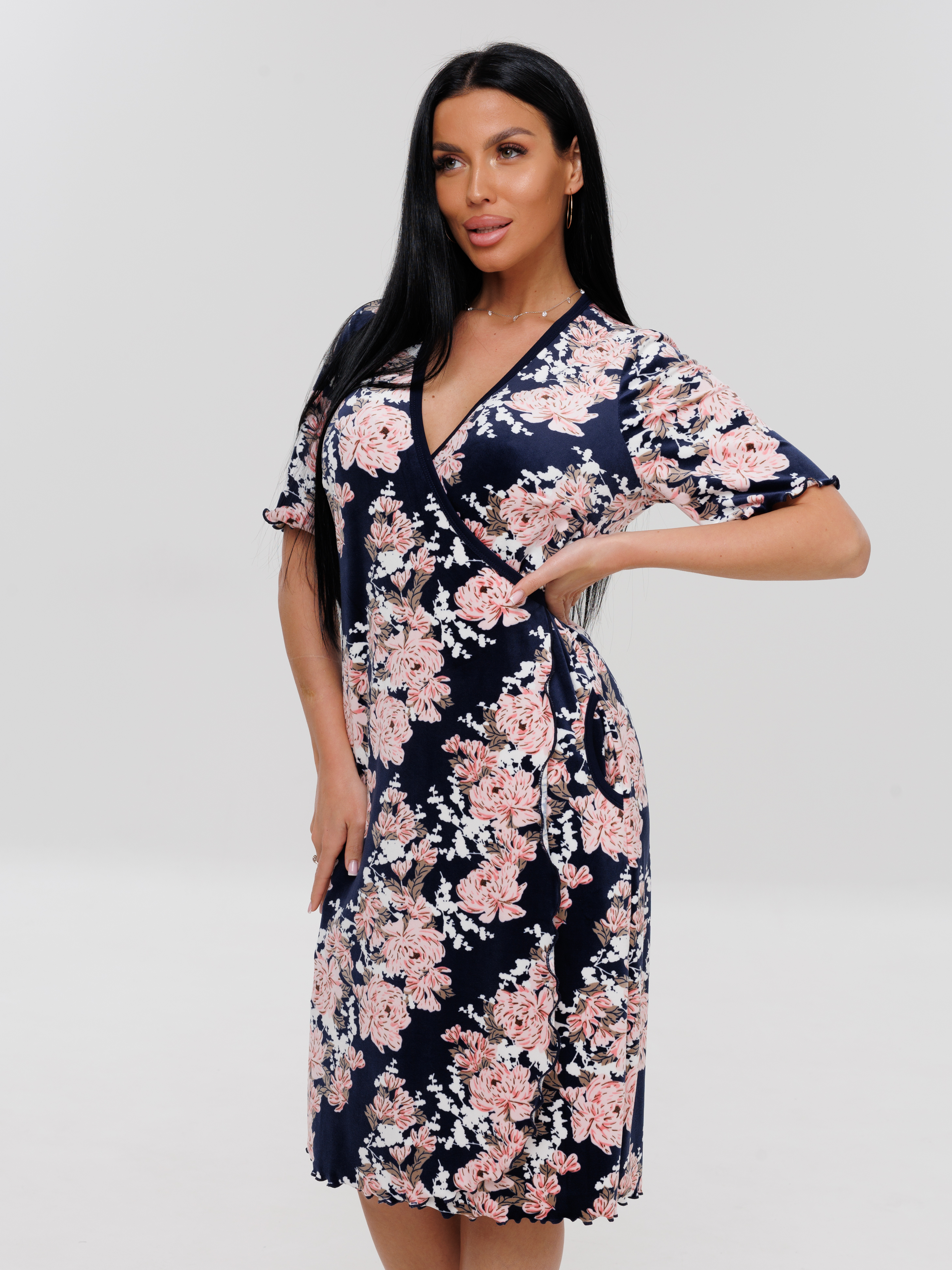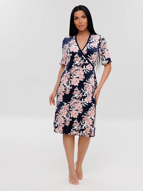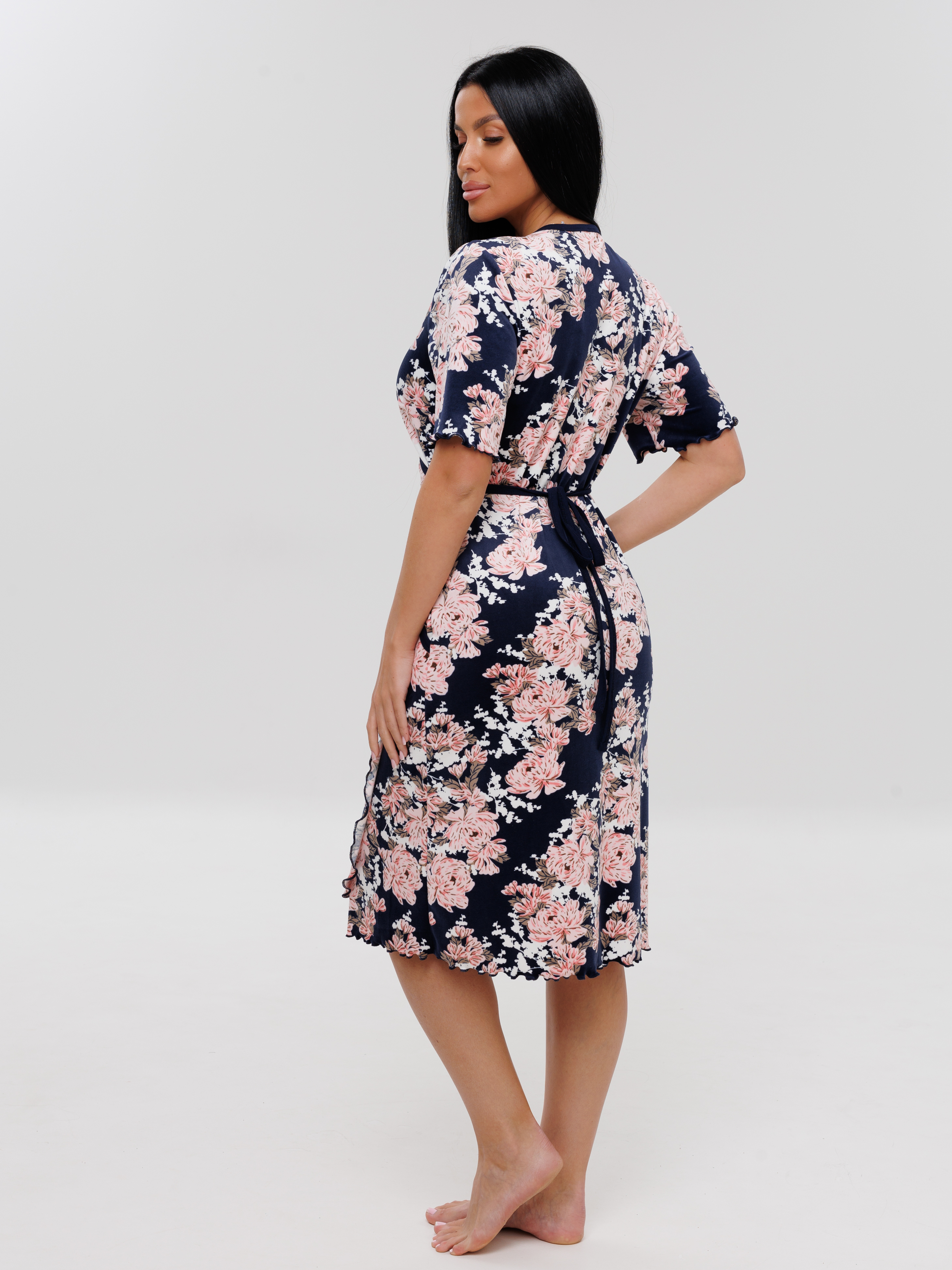 Женский халат Х-185(В) / Темно-синий (цветы)