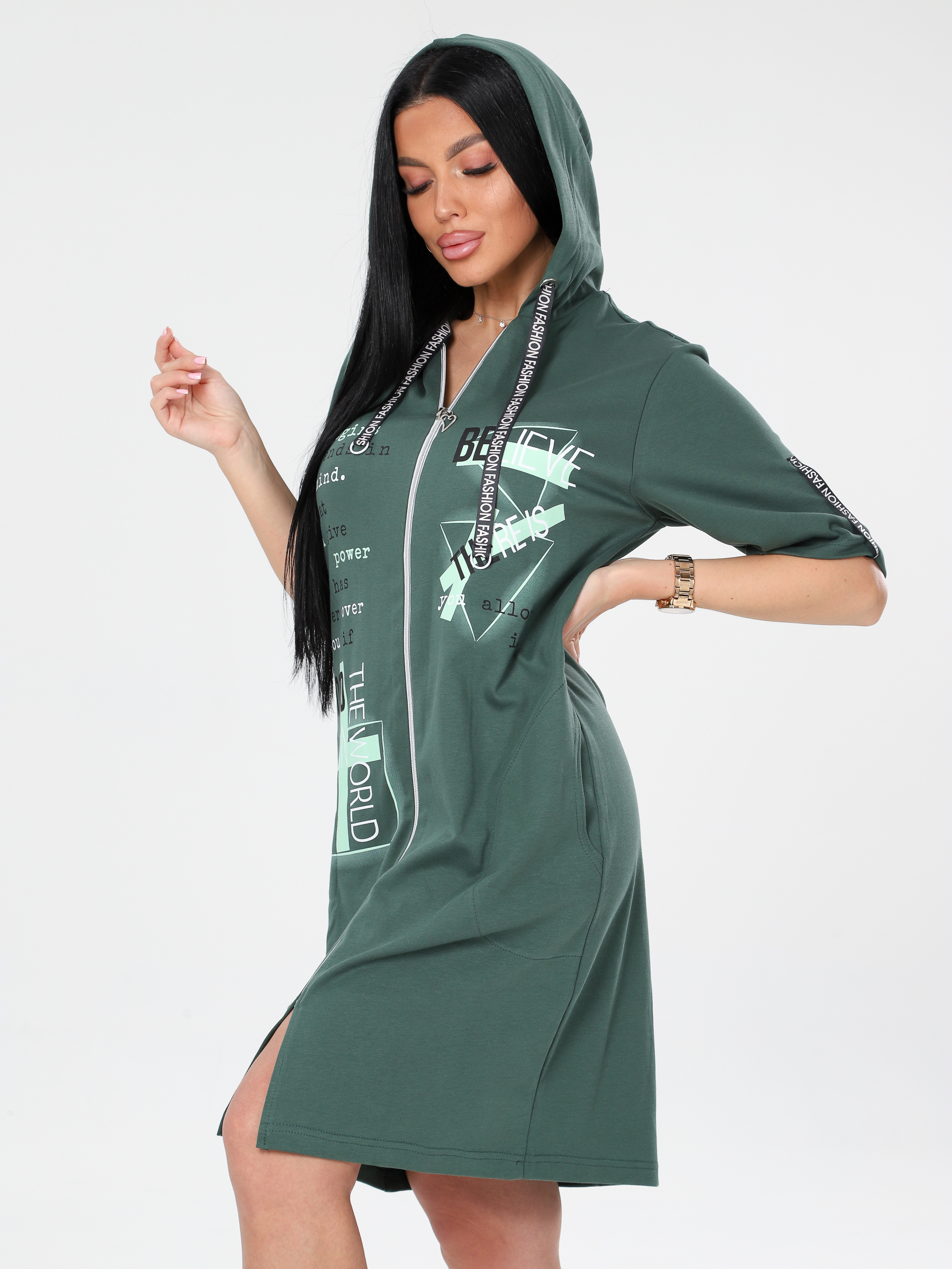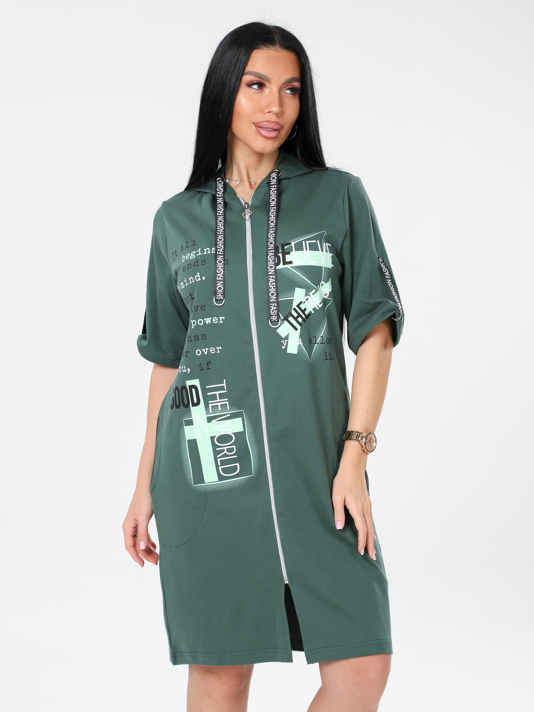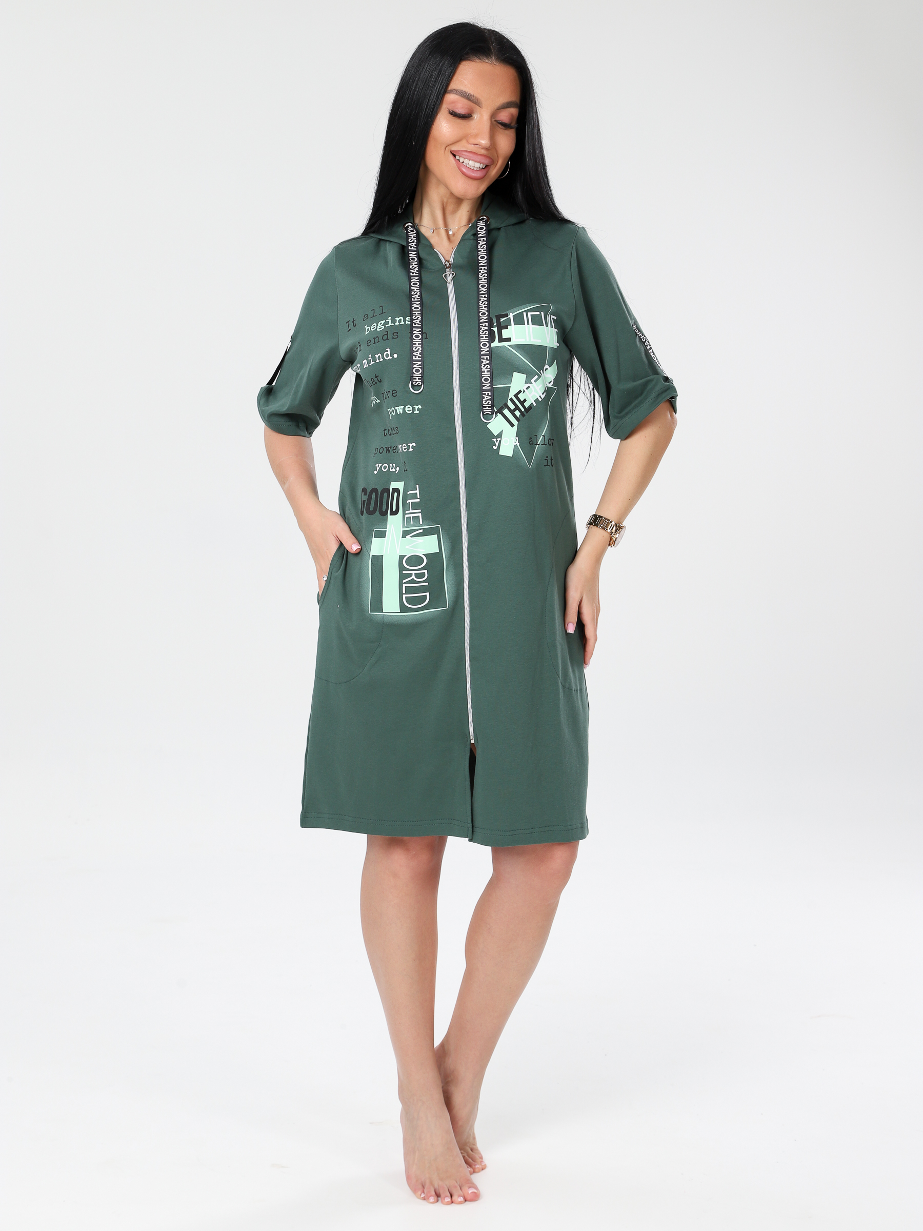 Женский халат Х-34(И) / Зеленый (надписи)