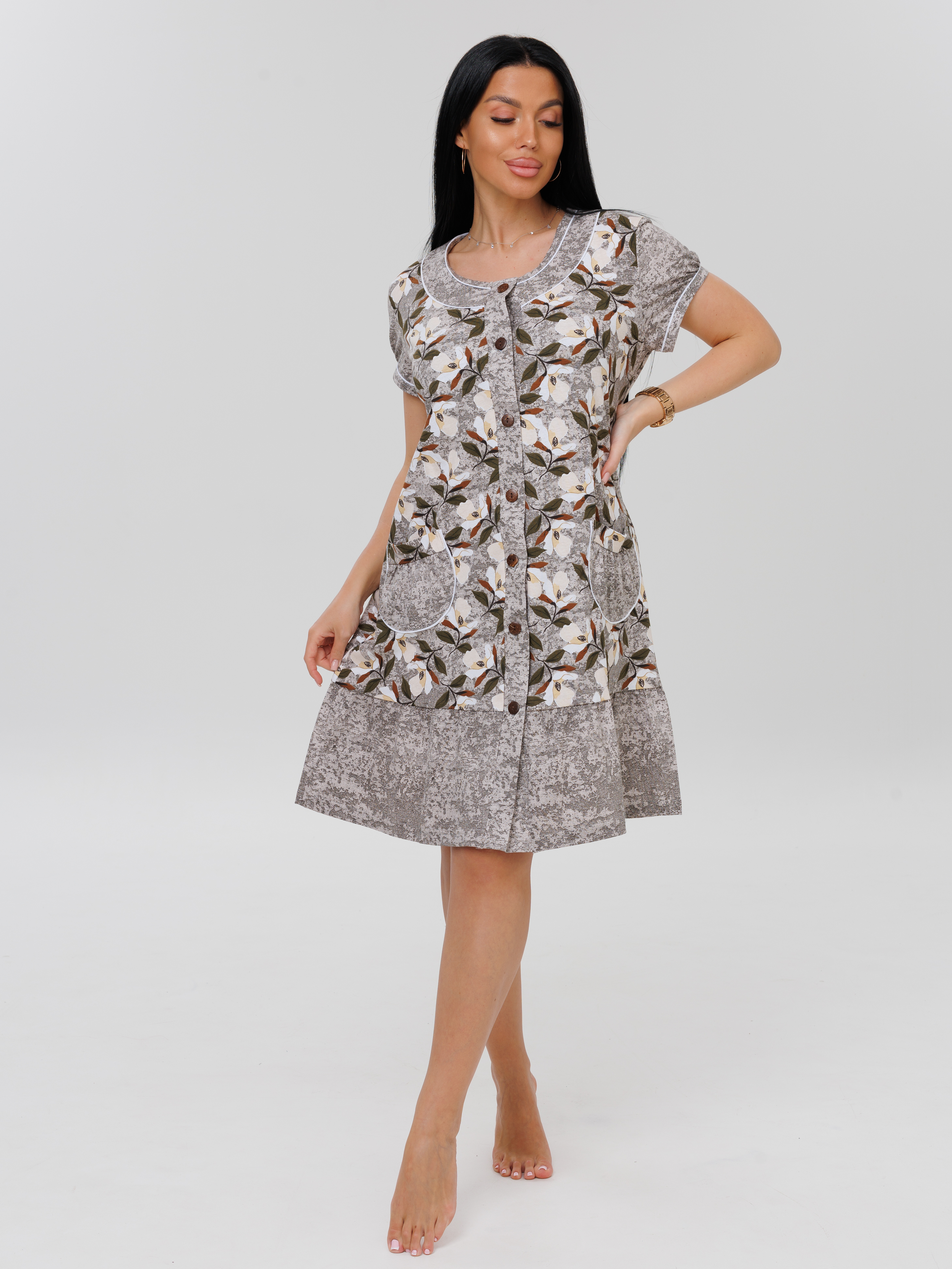 Женский халат Х-48(К) / Серый (желтые цветы)