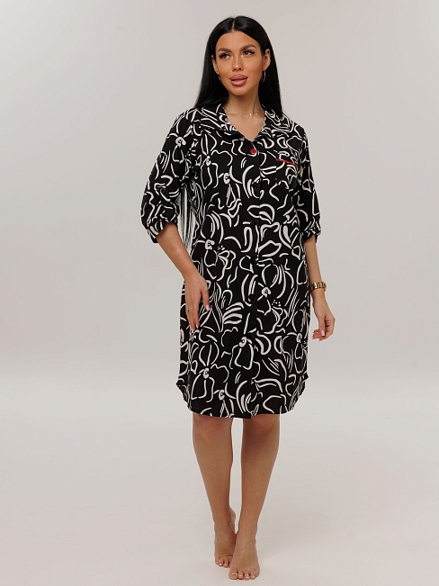 Женский халат Х-76(К) / Черный (цветы)