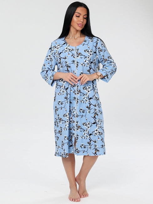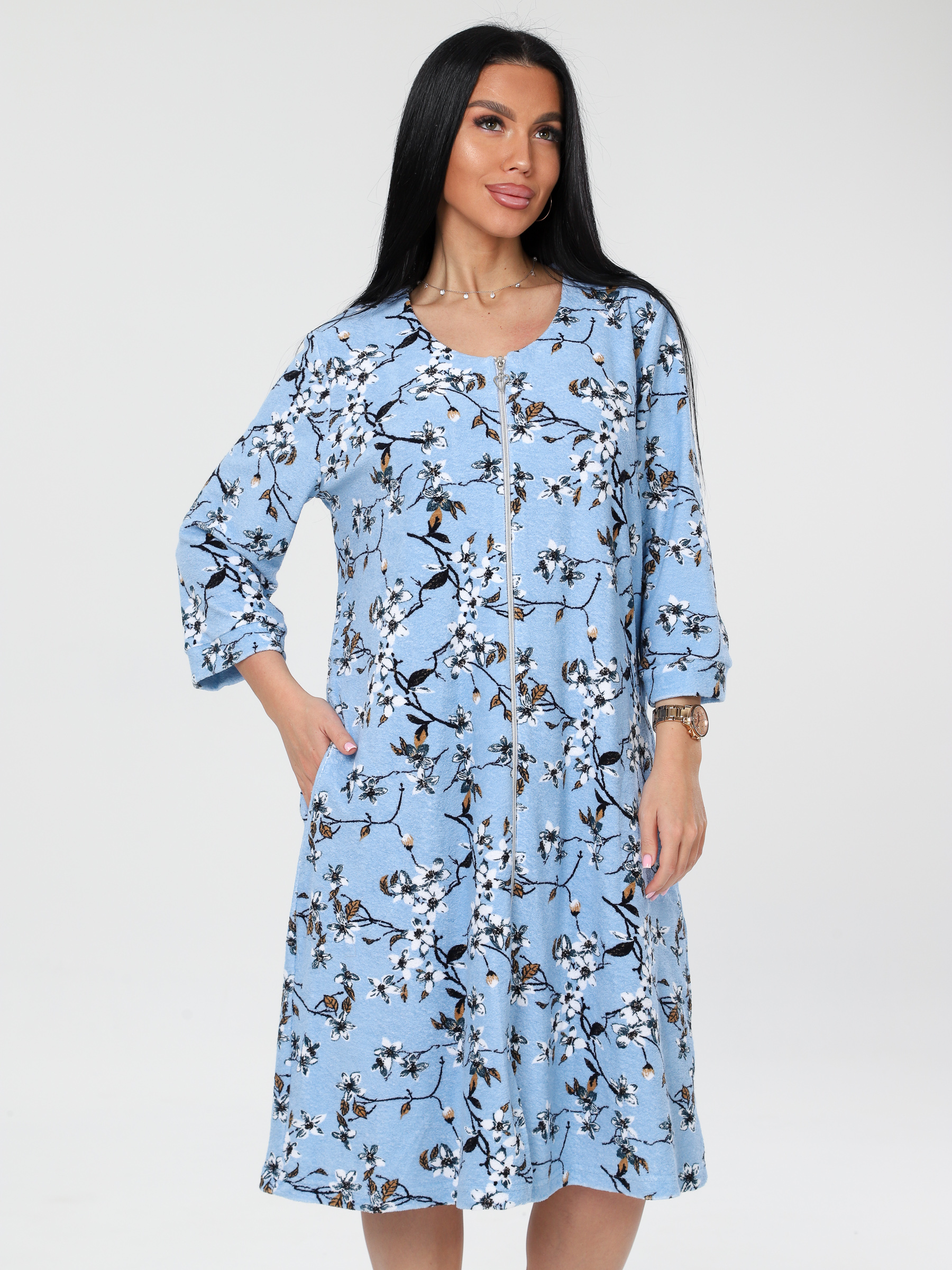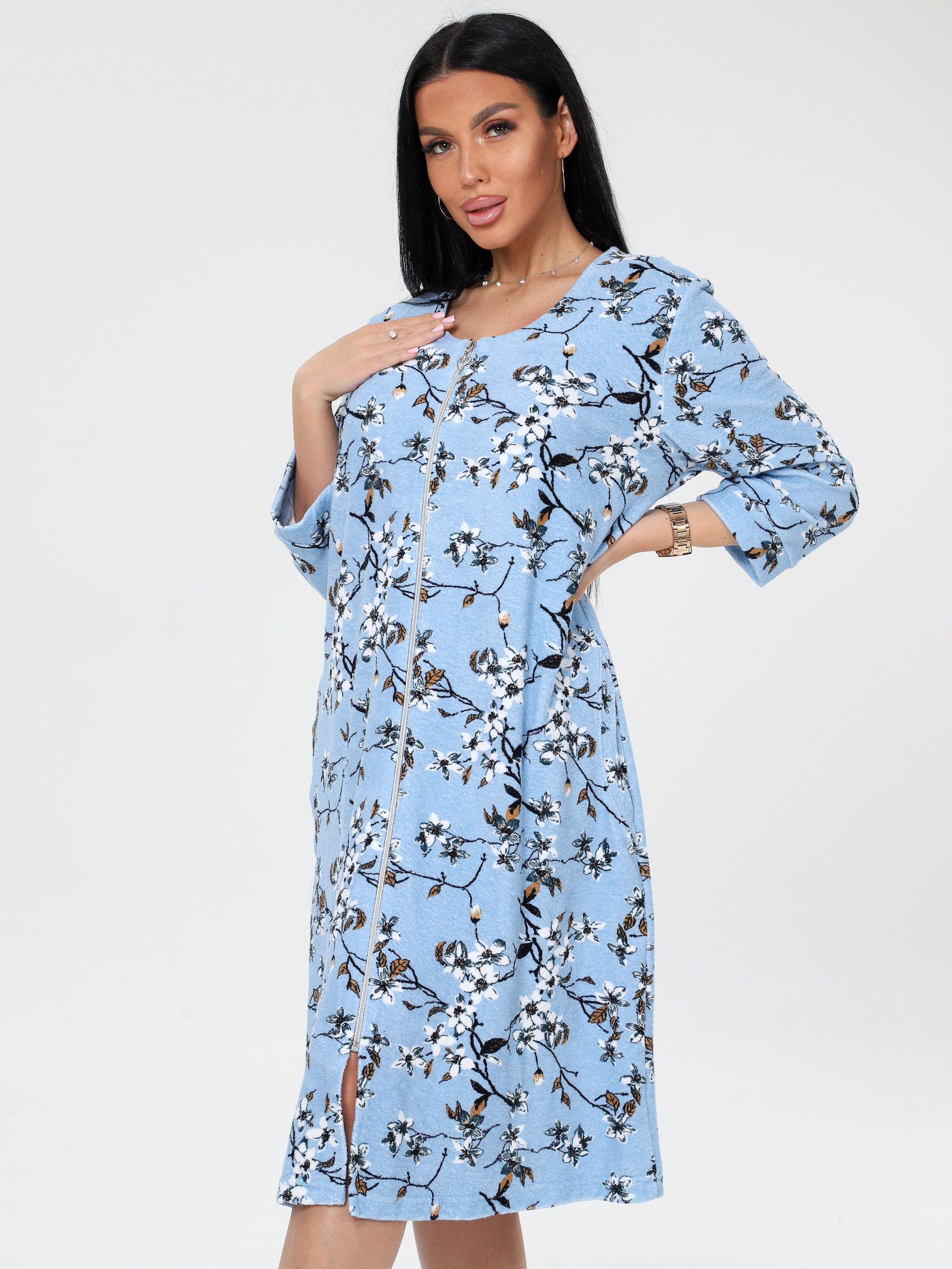 Женский халат Х-80(М) из махры на молнии. Женский махровый халат имеет удобную застежку на молнии, рукав 3/4 с манжетами. Хлопковая махровая ткань халата подарит тепло и уют прохладными днями.