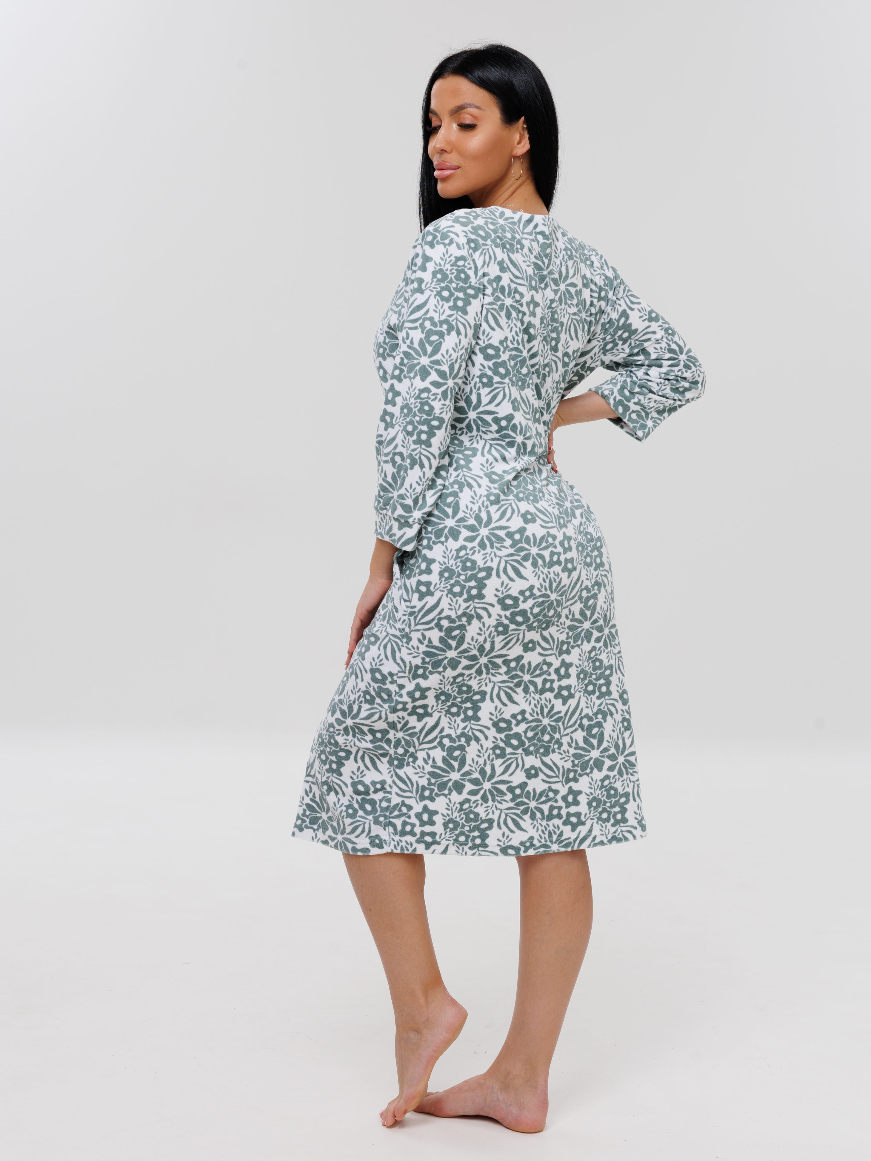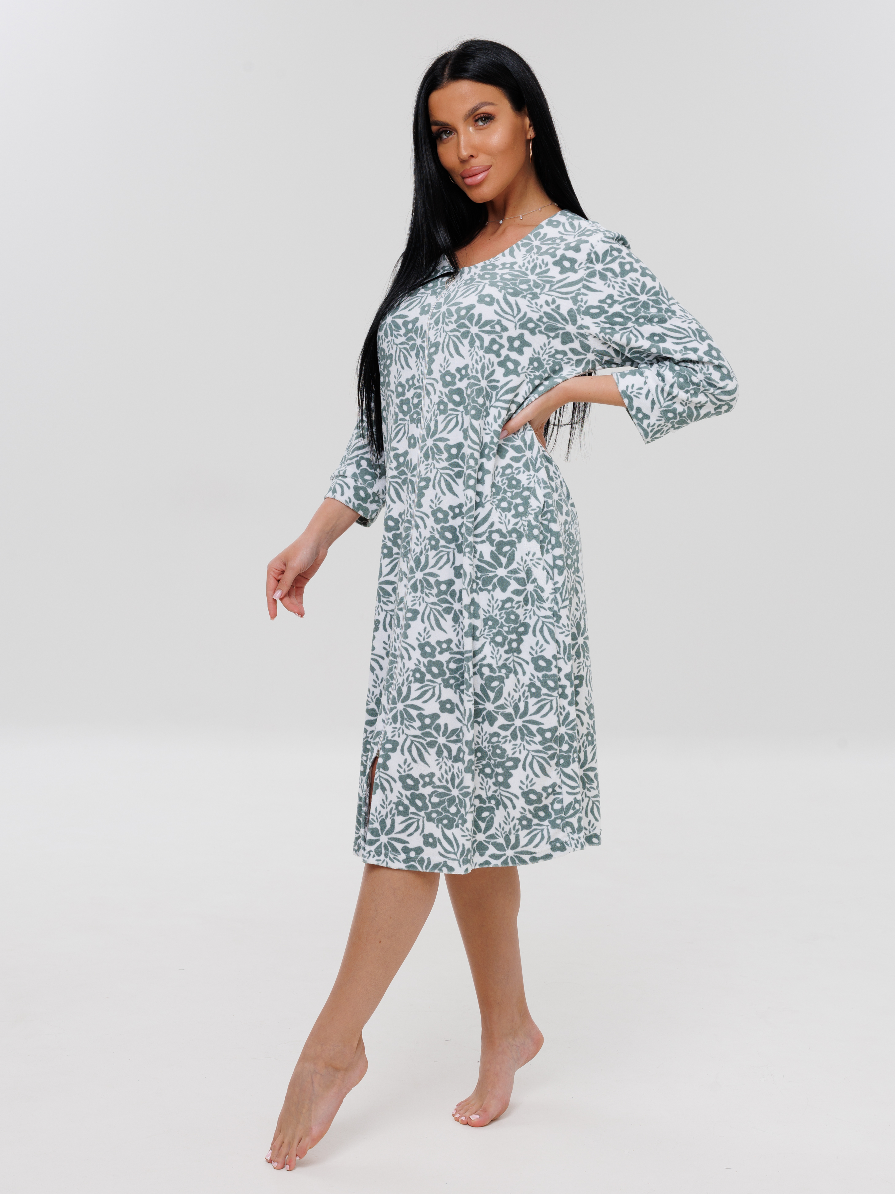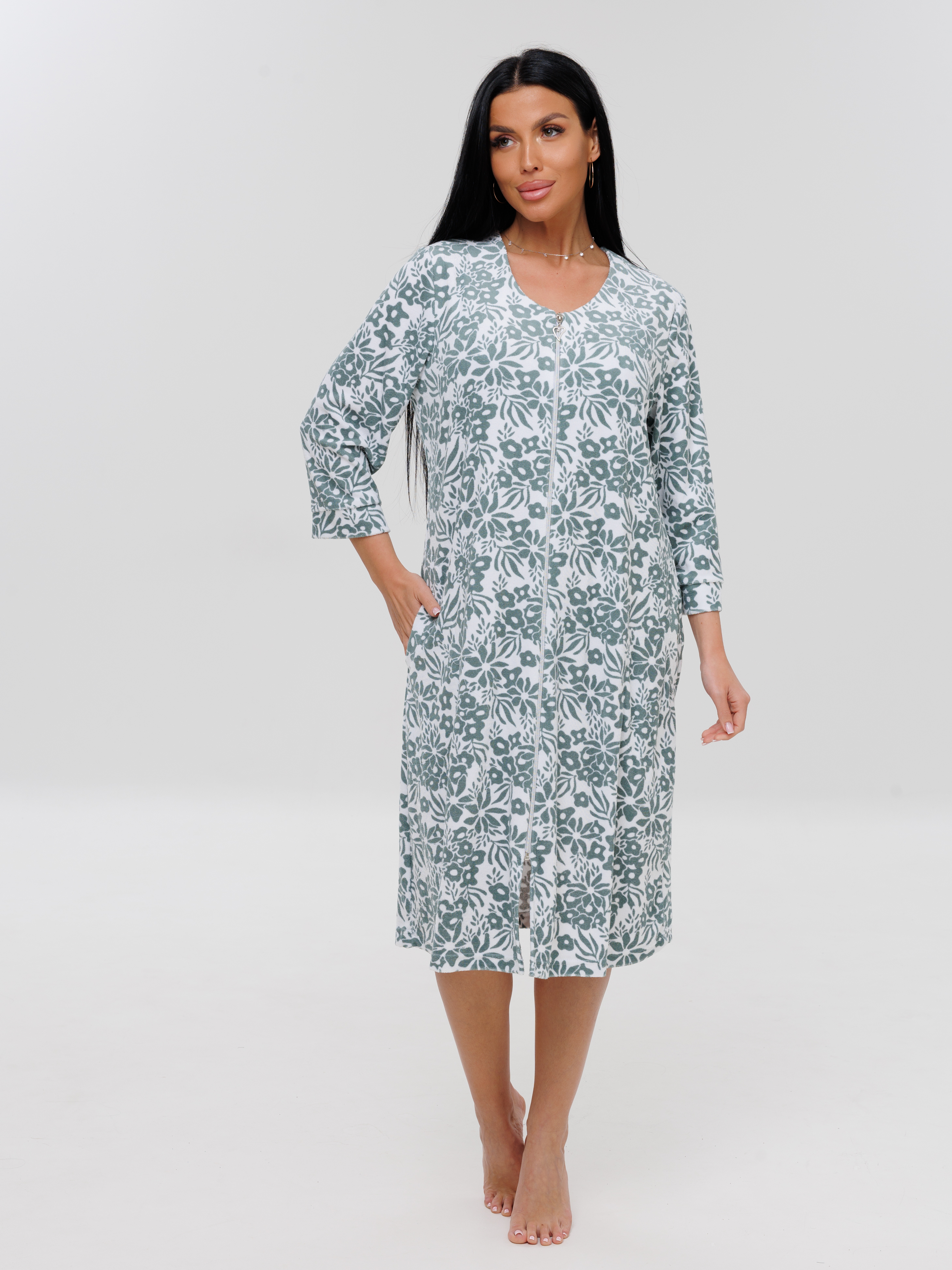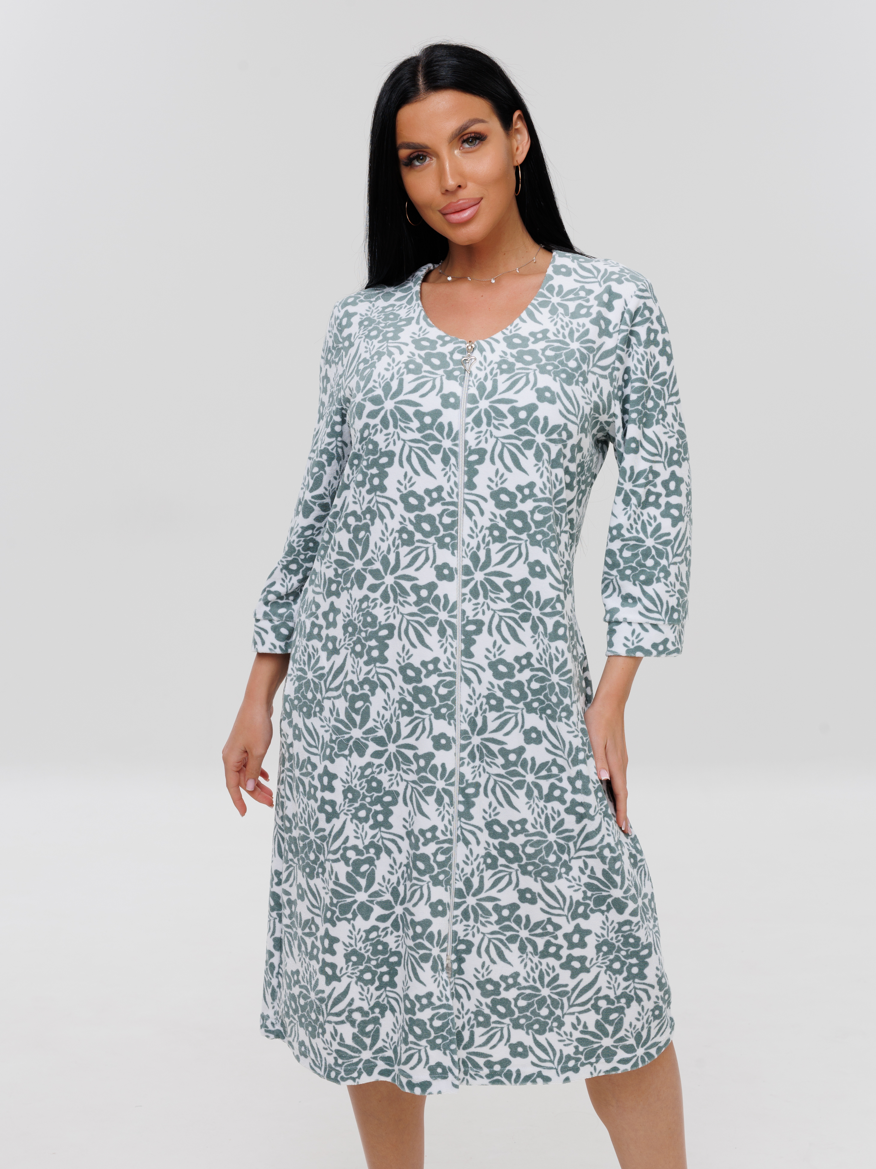 Женский халат Х-80(М) / Серо-зеленый (цветы)