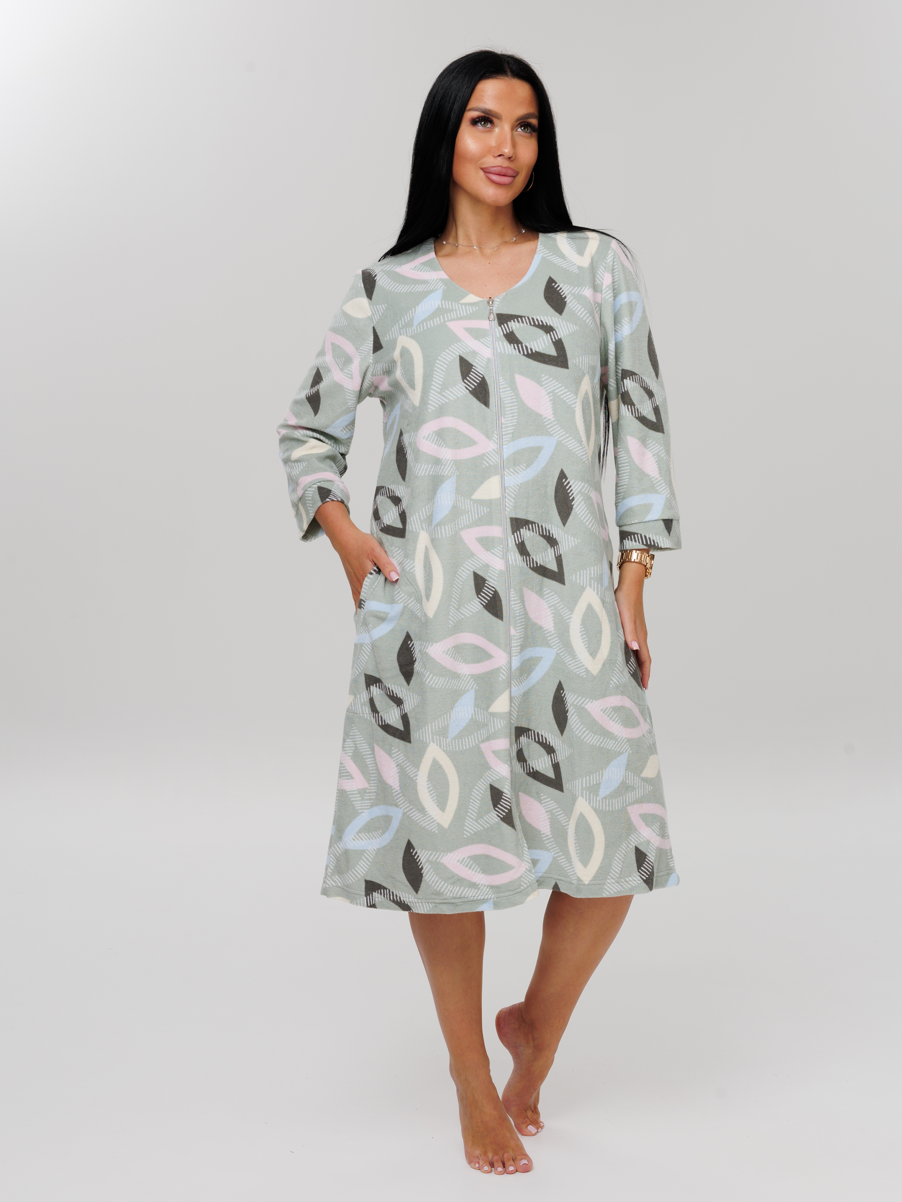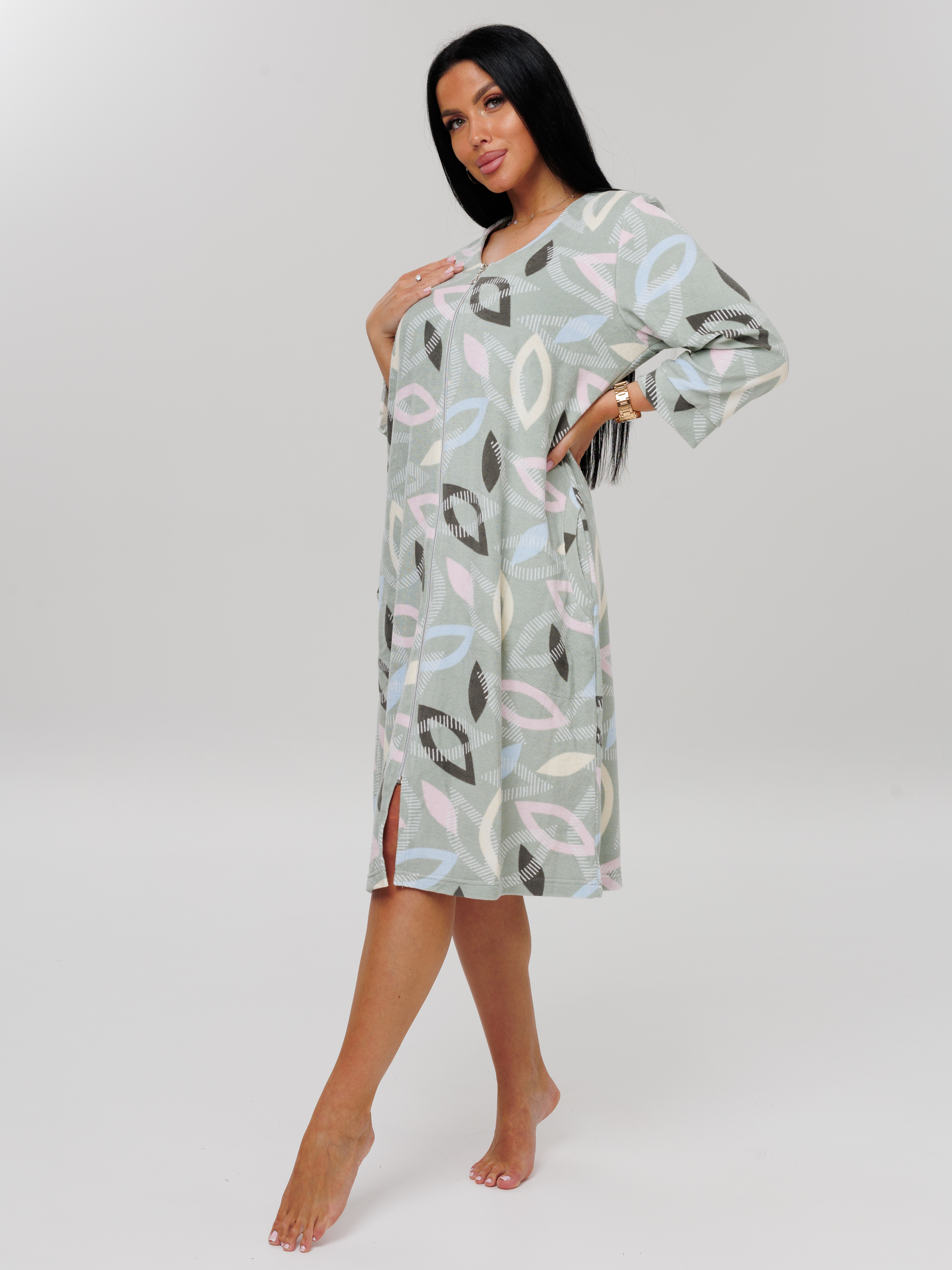 Женский халат Х-80(М) / Серо-зеленый (узоры)