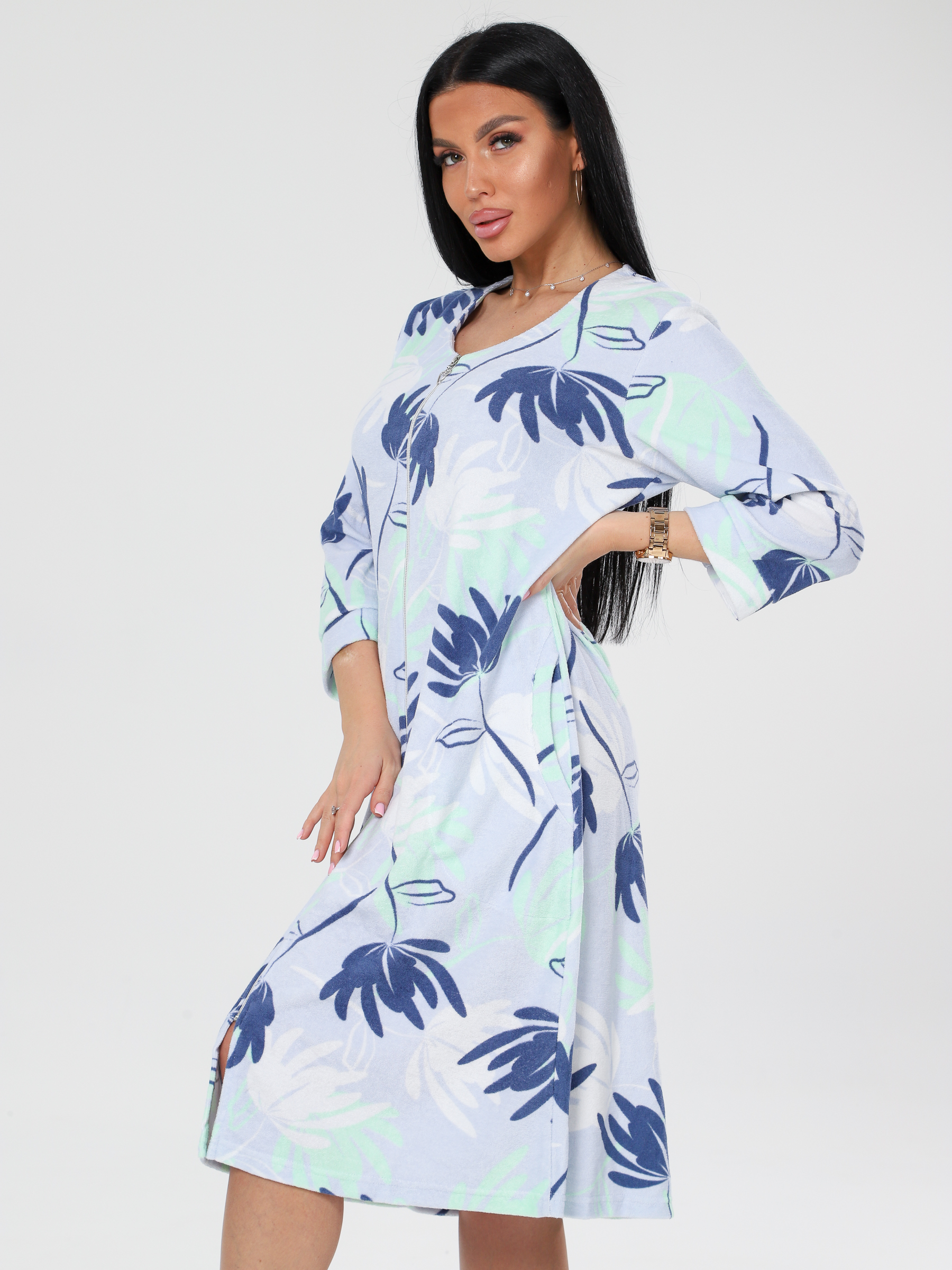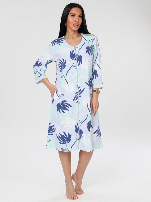 Женский халат Х-80(М) / Светло-серый (цветы)